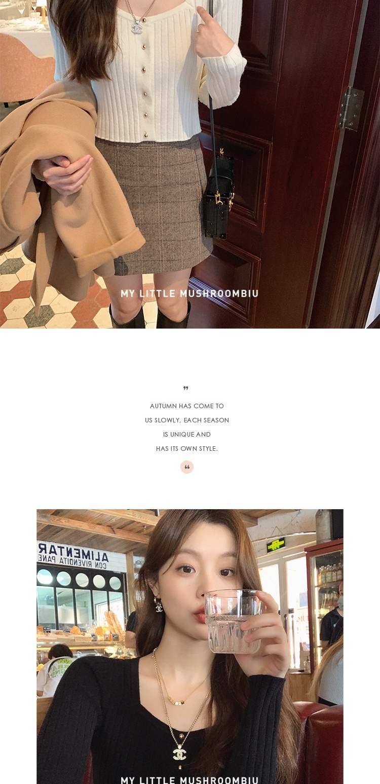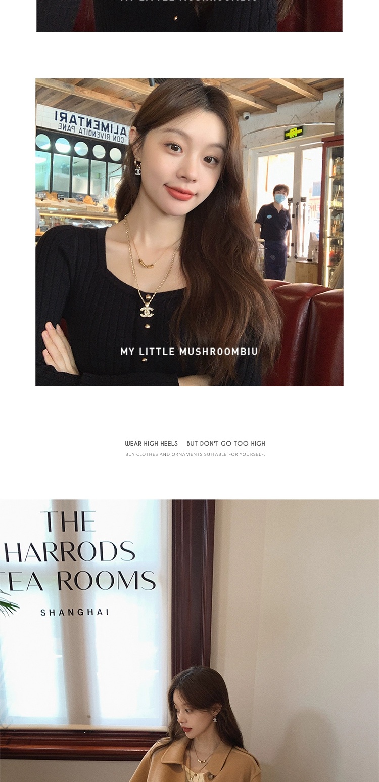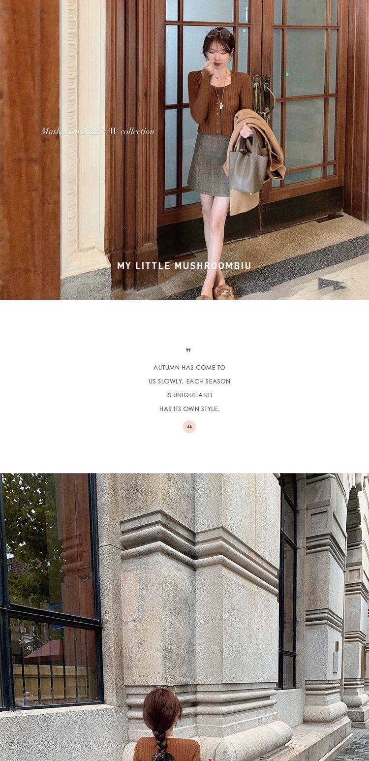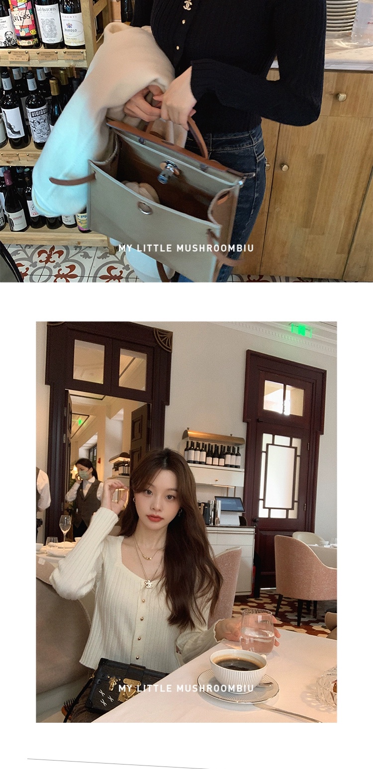 金蘑菇菇 小金豆 锁骨内搭组 / 质感细腻锁骨针织 修身方领毛衣