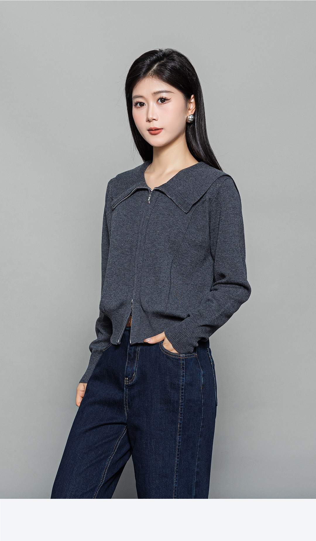 冬上新时尚显瘦大翻领拉链毛衣1254025 商品图2