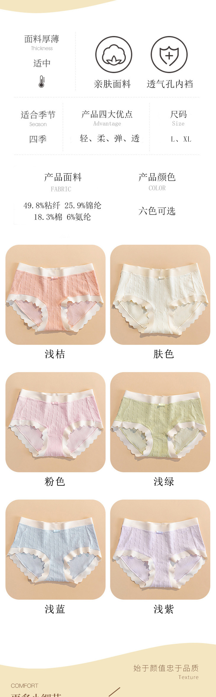吐司小麻花少女 时尚甜美 日系中腰抗菌纯棉裆 中腰包臀无痕舒适柔软糖果色系透气内裤女