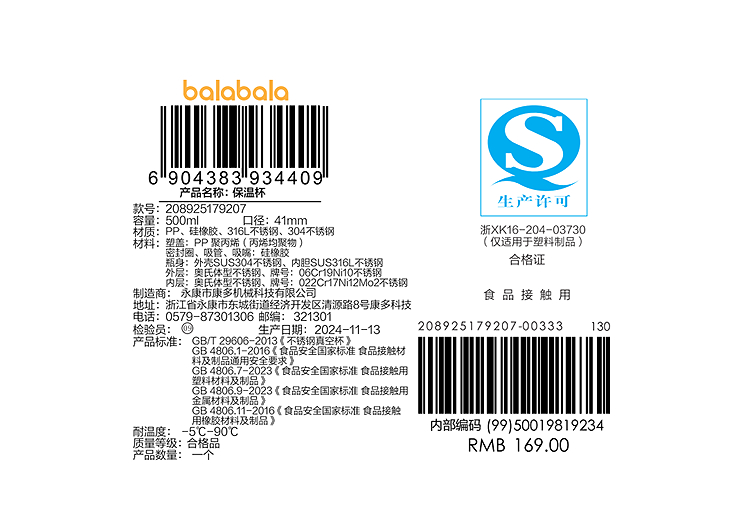 巴拉巴拉儿童保温杯男童女童吸管杯水壶卡通图案时尚可爱便携外出