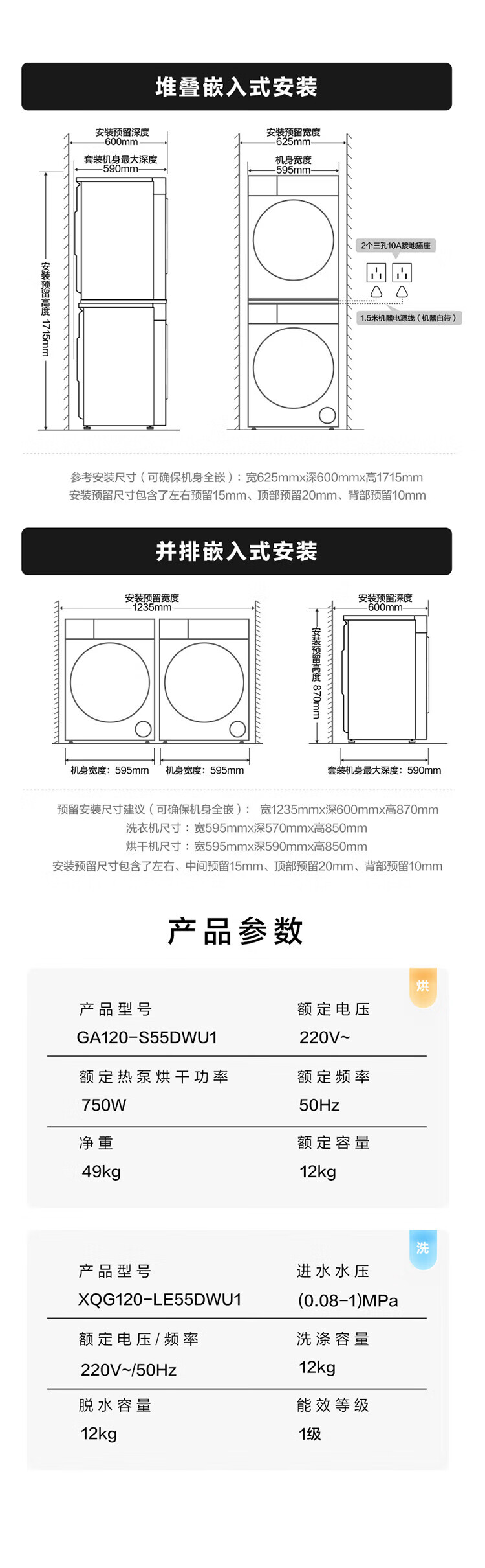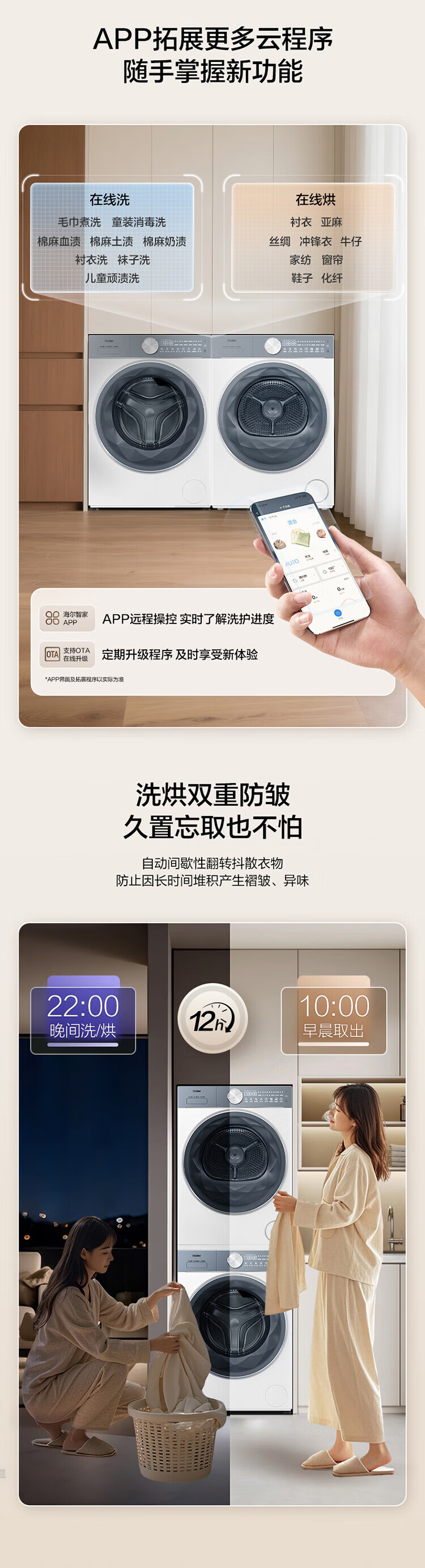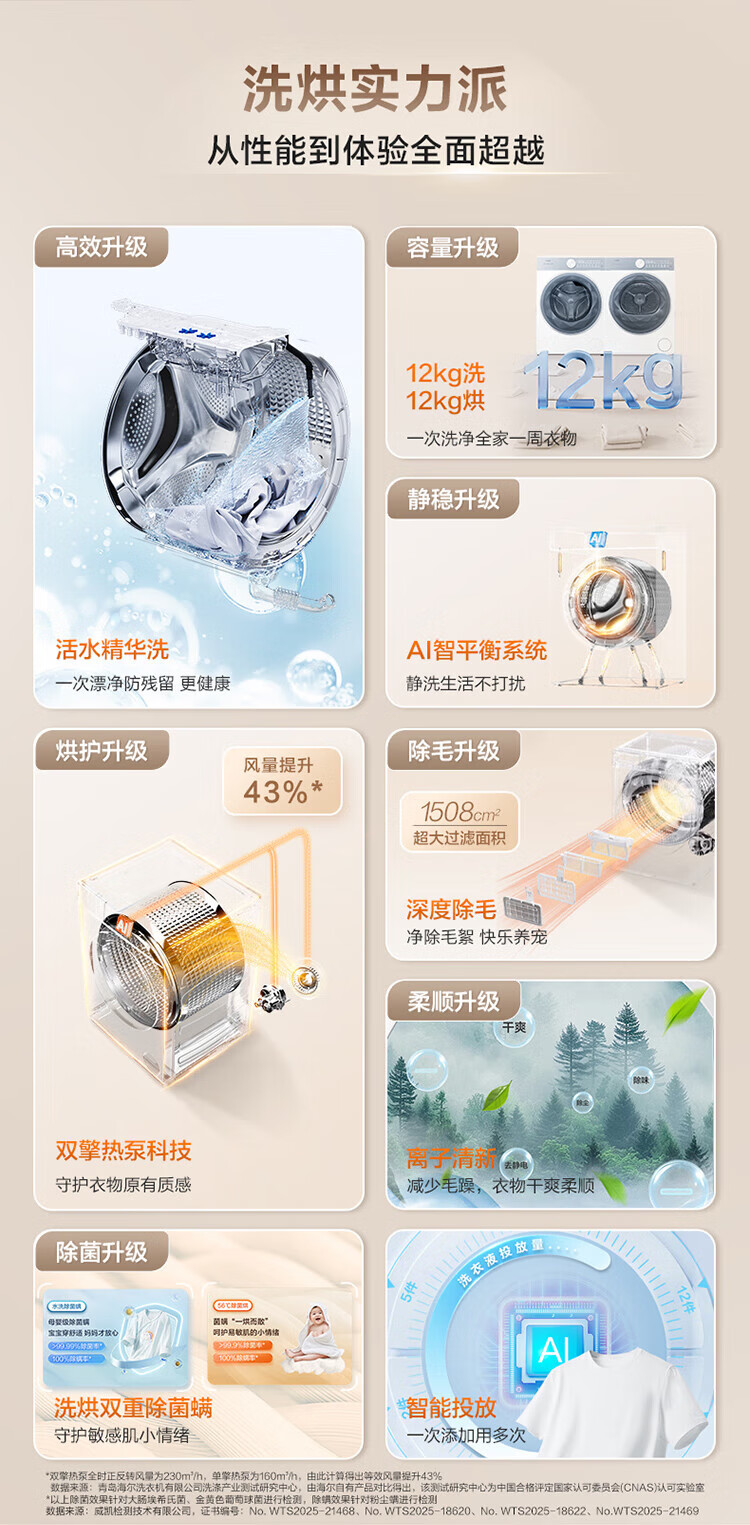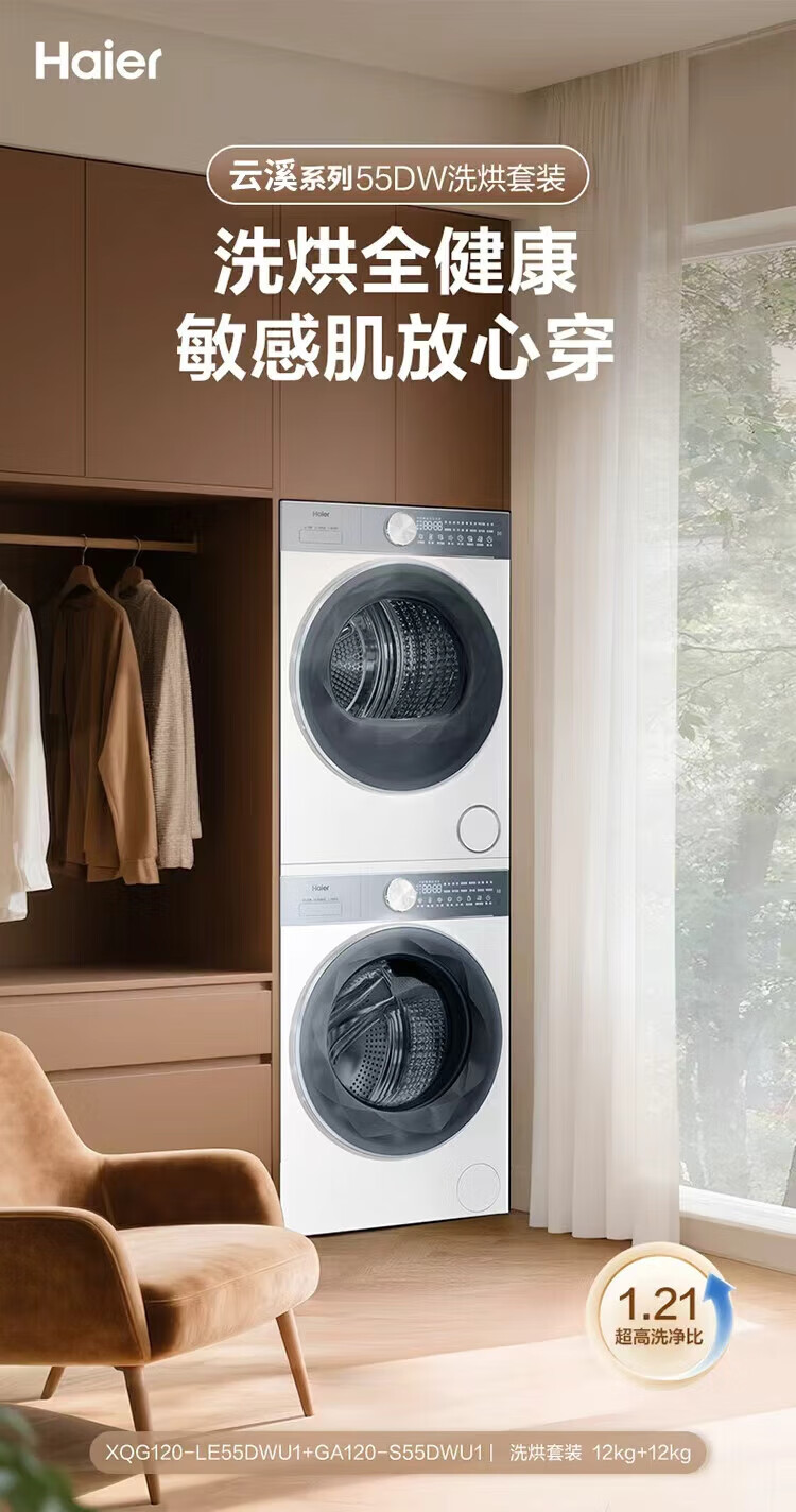 海尔(Haier)云溪55系列 大容量洗烘套装12KG滚筒洗衣机+热泵烘干机双擎XQG120-LE55DWU1+12kg55DW
