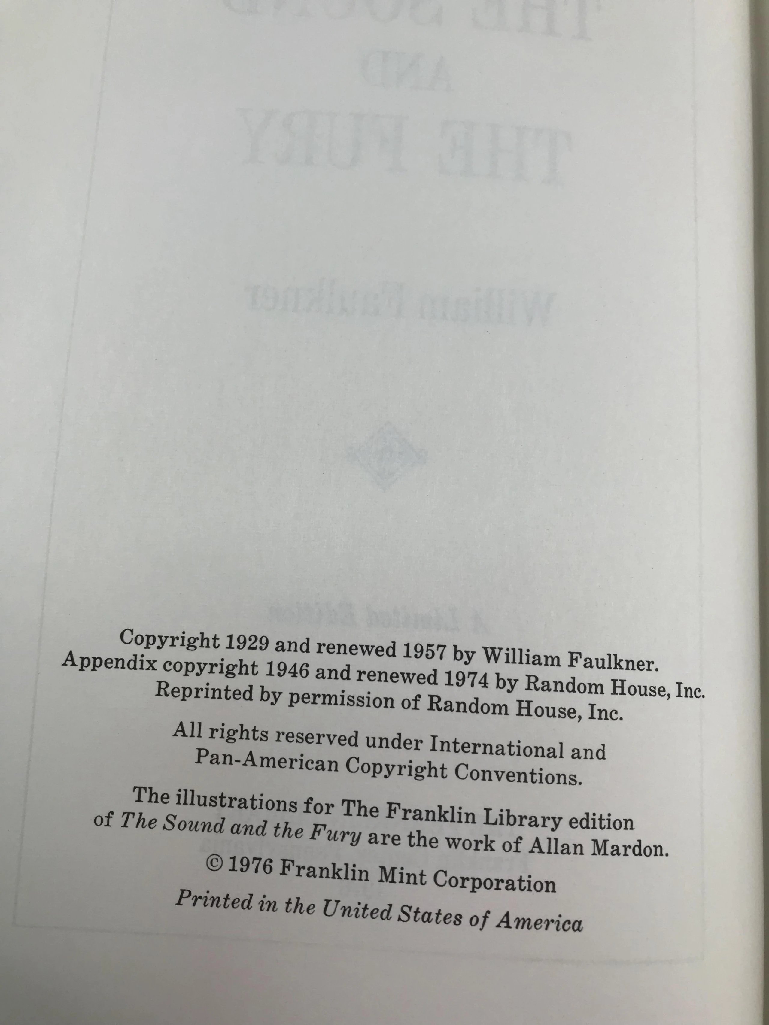 限量版!含藏书票 威廉・福克纳《喧哗与骚动》 配插图 富兰克林图书馆豪华皮装本