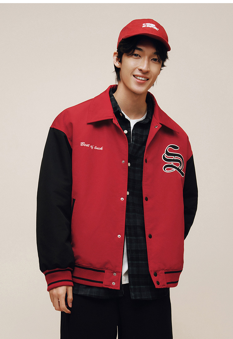 森马夹克男三防防风外套2025春季新款撞色绣花棒球服情侣时尚国潮