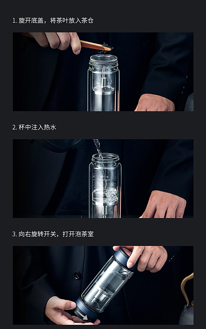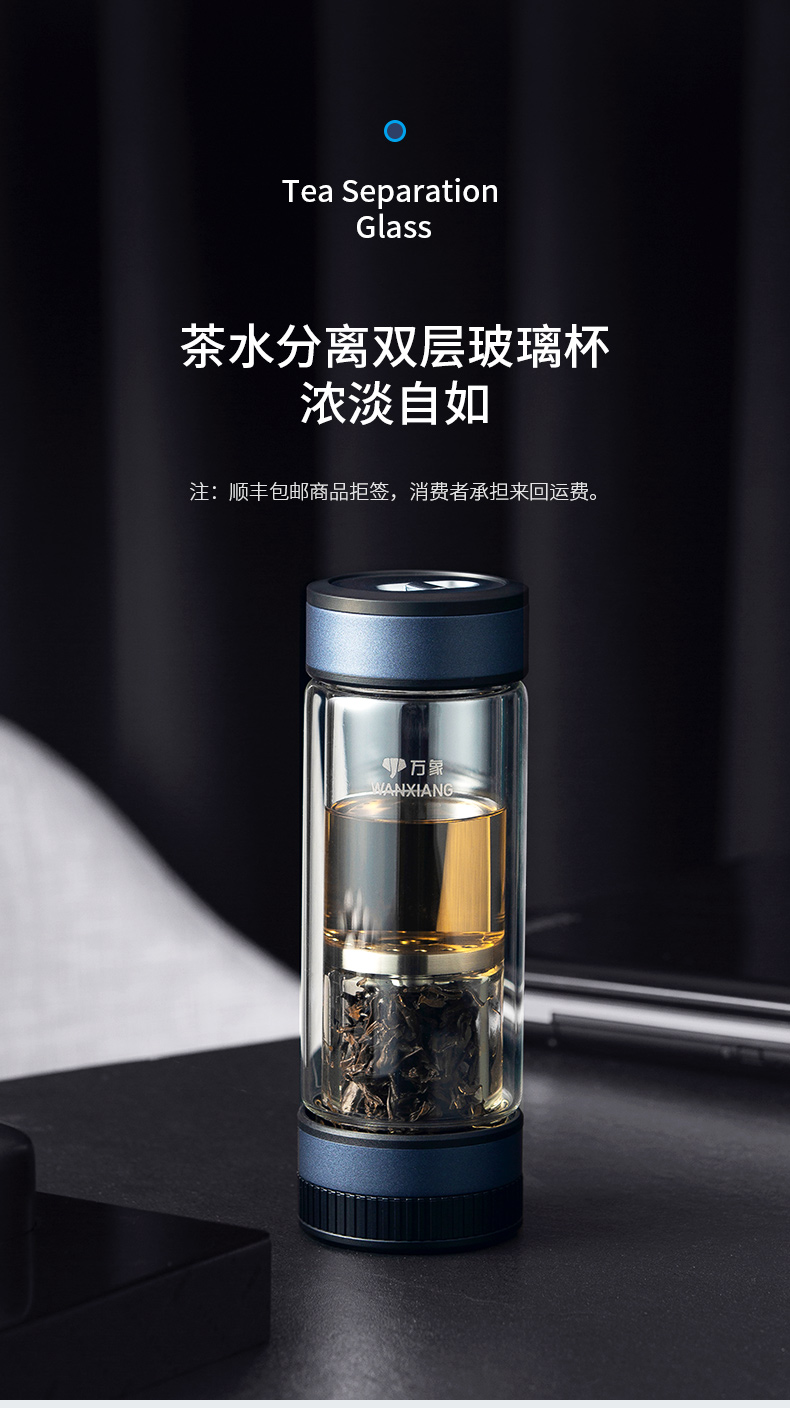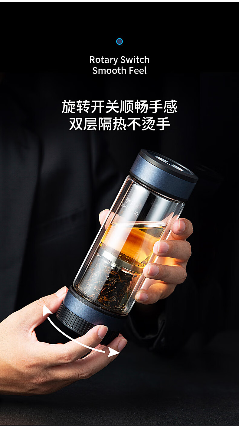 万象玻璃杯 男士茶水分离杯 高档茶杯双层商务水杯隔热高颜值杯子V258L310ML