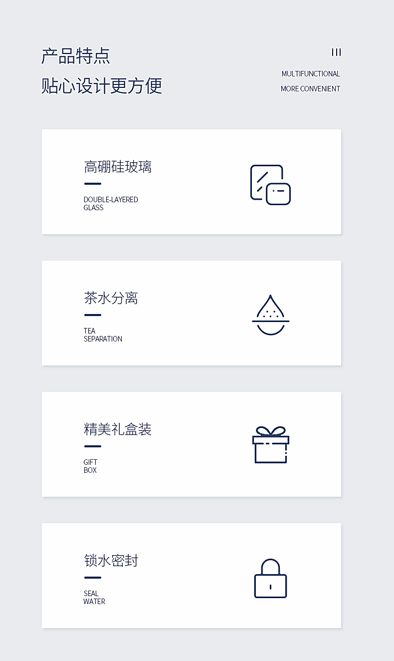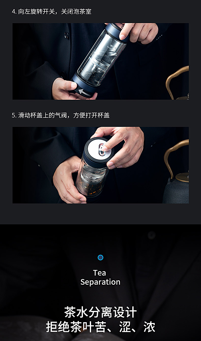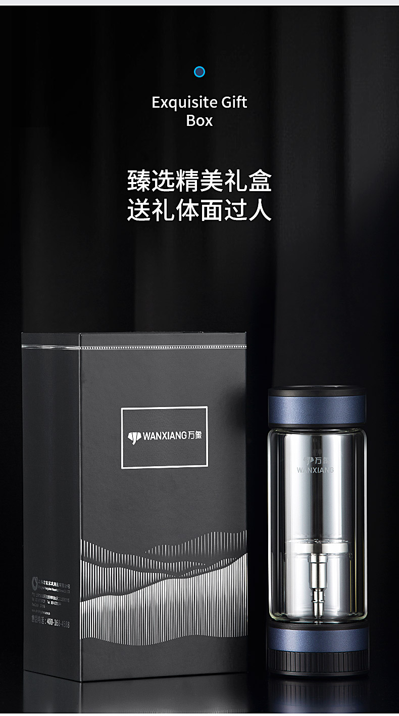 万象玻璃杯 男士茶水分离杯 高档茶杯双层商务水杯隔热高颜值杯子V258L310ML