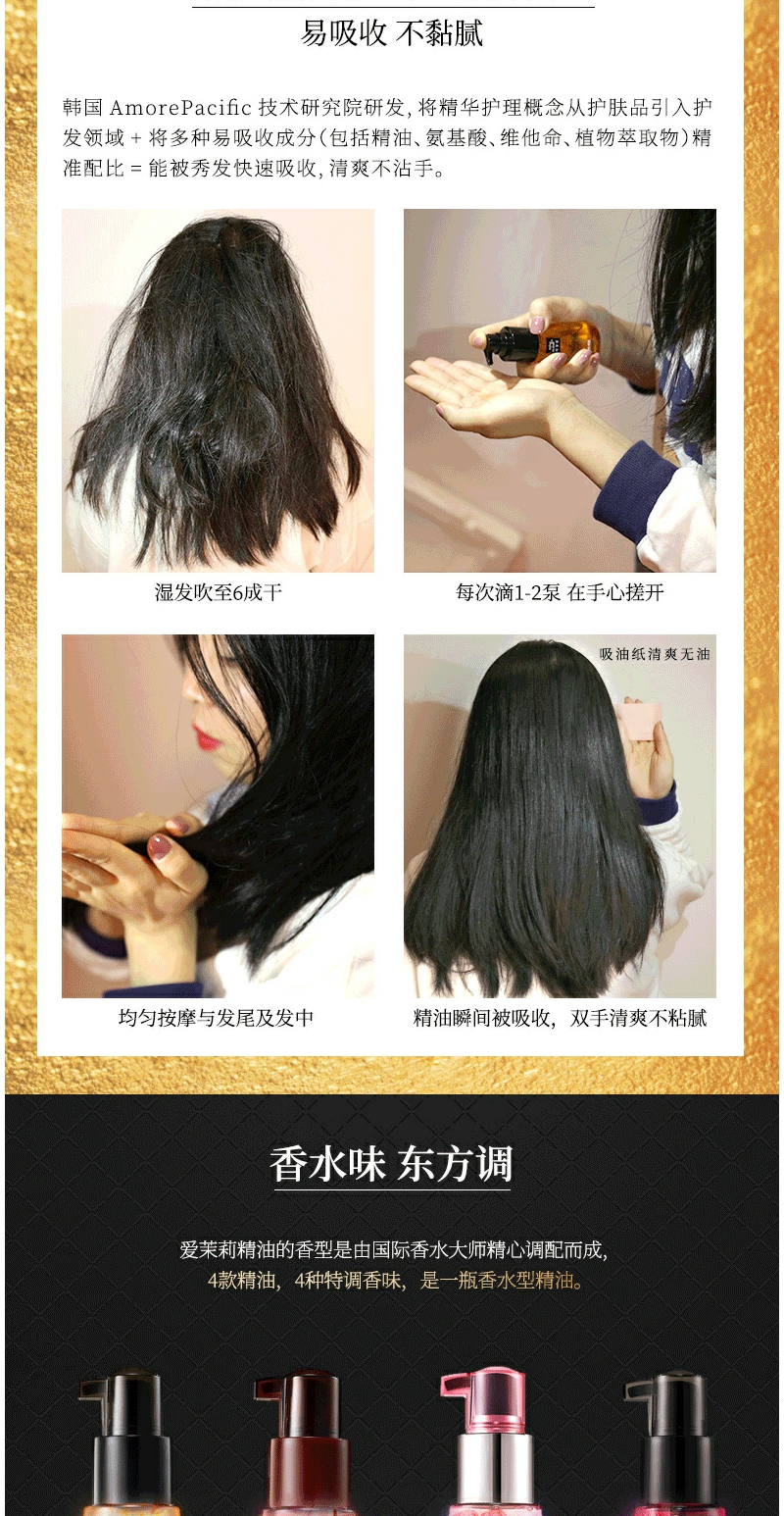 【YZ】韩国爱茉莉魅尚萱护发精油 修复烫染开叉毛躁免洗小金瓶 80ml
