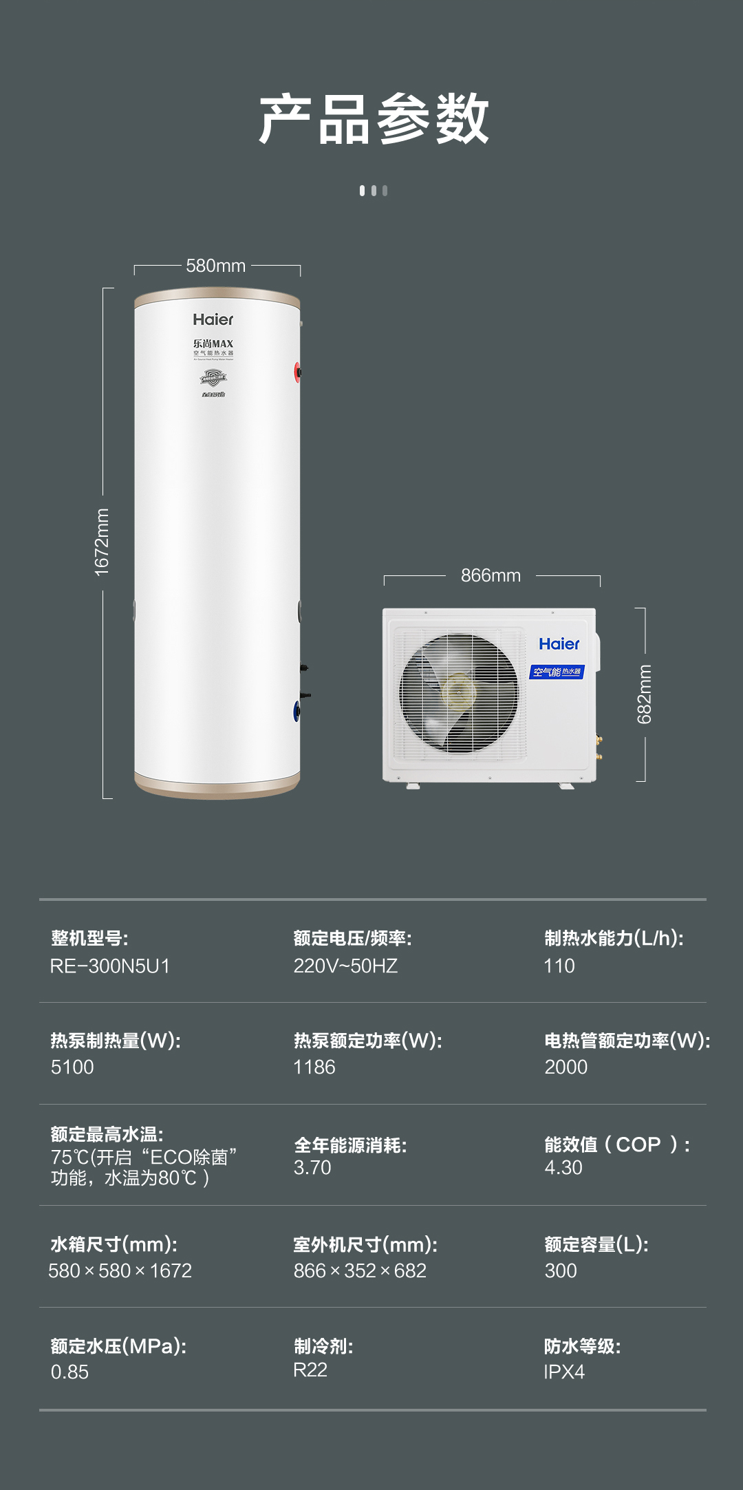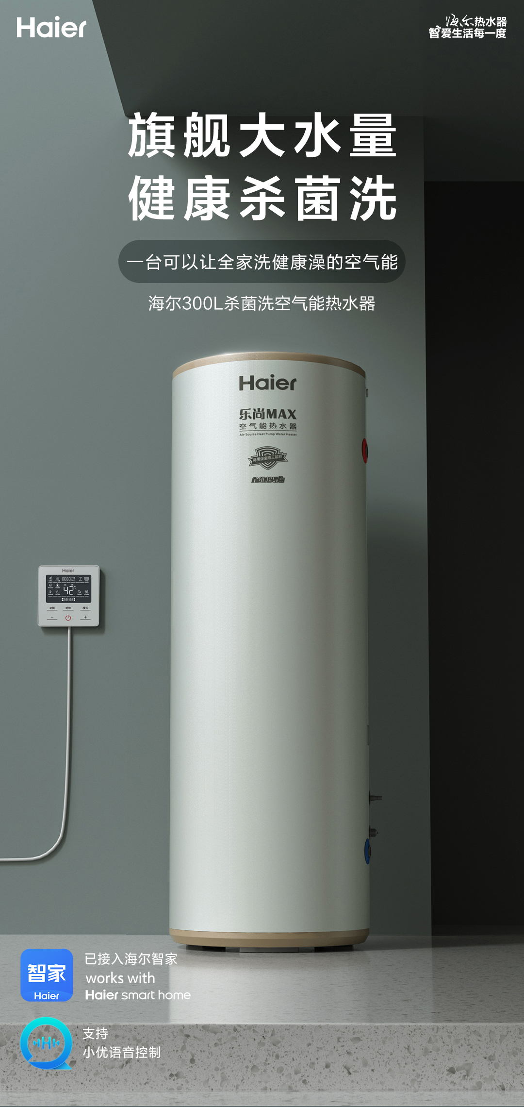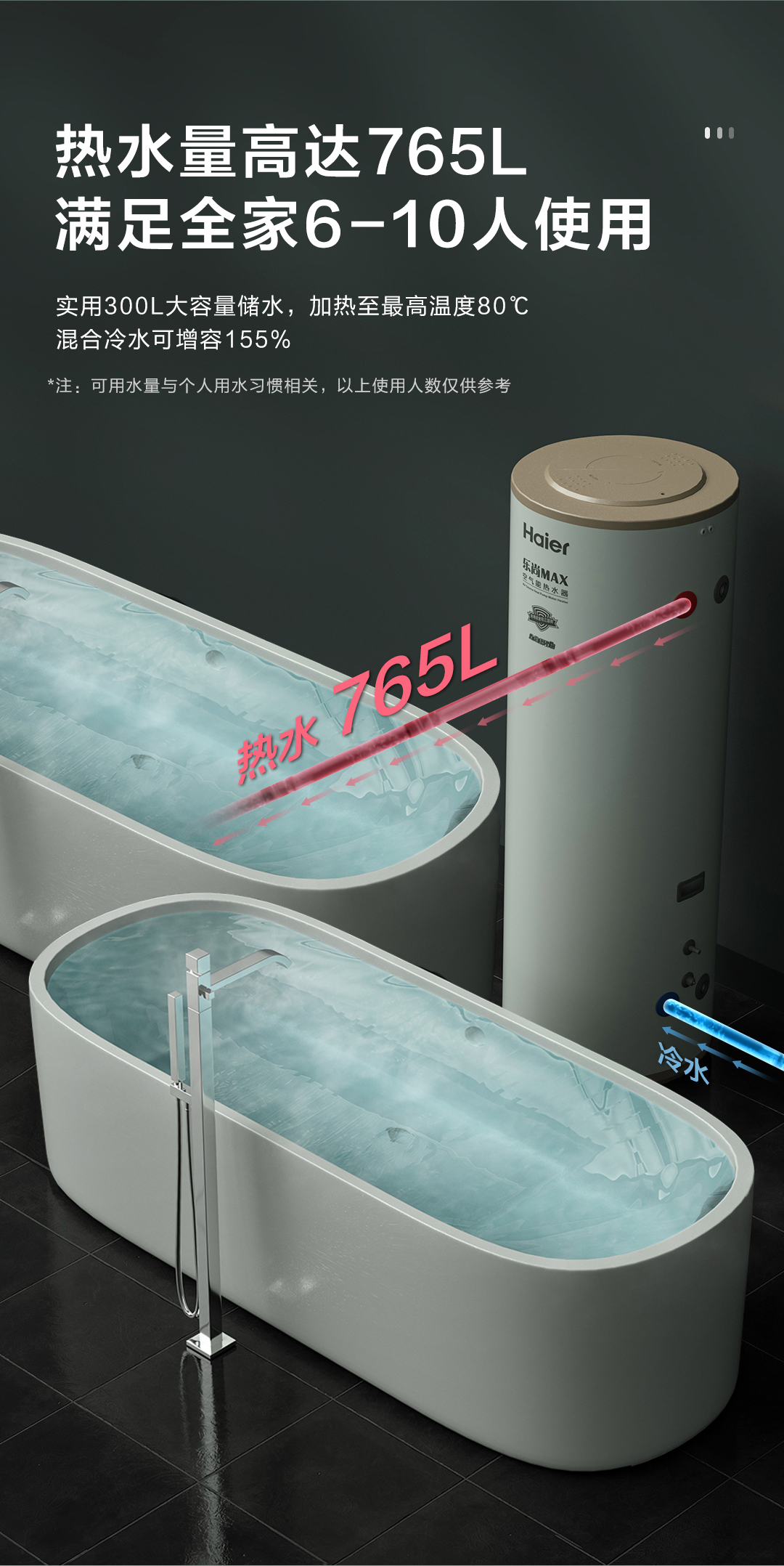 海尔(Haier)空气能热水器300升家用包安装 一级能效银离子滤菌80°杀菌净水RE-300N5U1(6-10人)