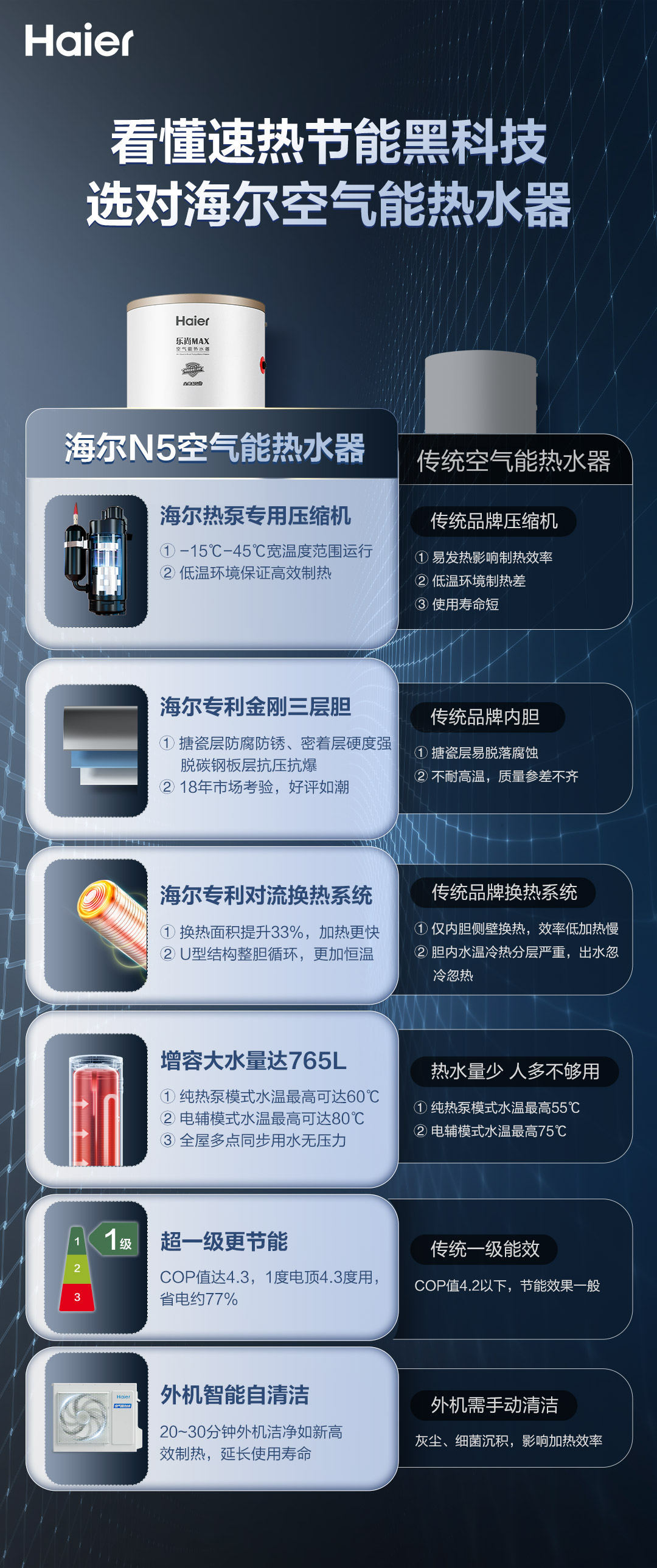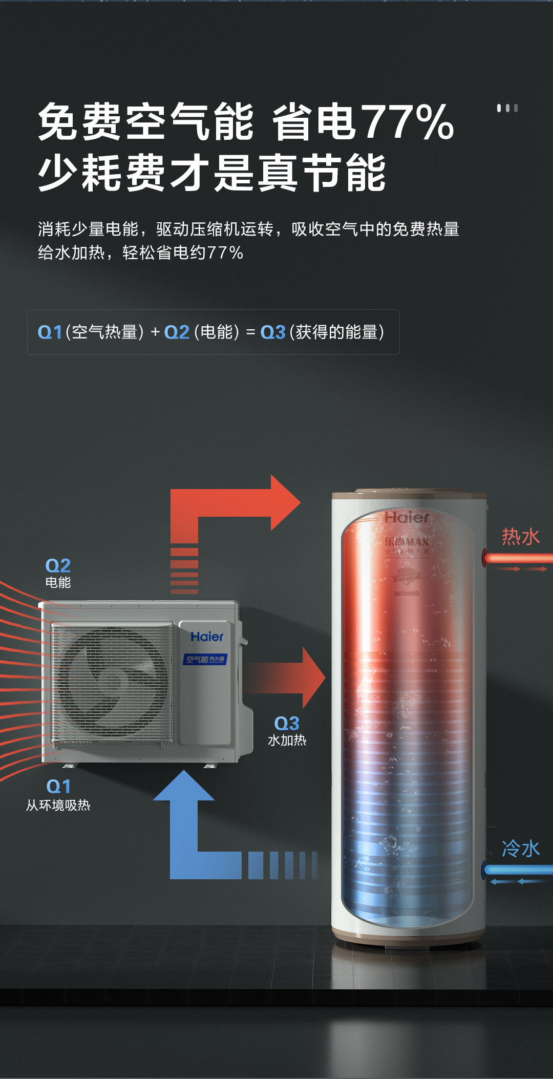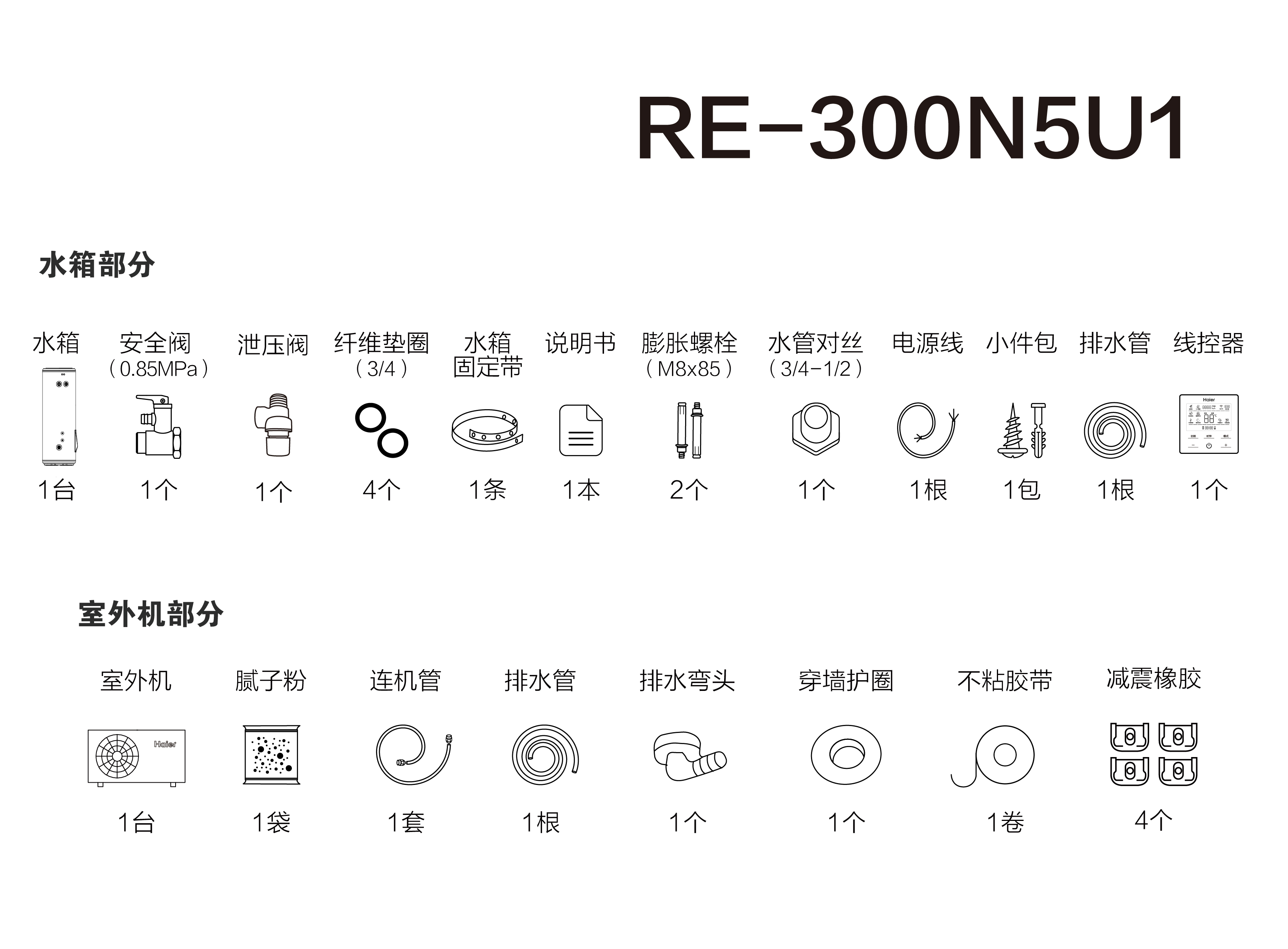 海尔(Haier)空气能热水器300升家用包安装 一级能效银离子滤菌80°杀菌净水RE-300N5U1(6-10人)