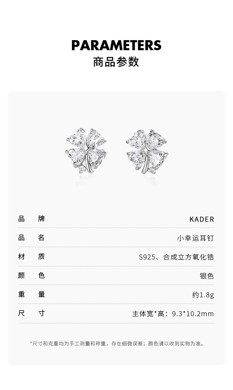 KADER卡蒂罗 小幸运四叶草耳钉 S925银轻奢时尚小众设计耳饰 耳钉 女款 好运相伴可爱配饰精致闪耀闺蜜同款礼物