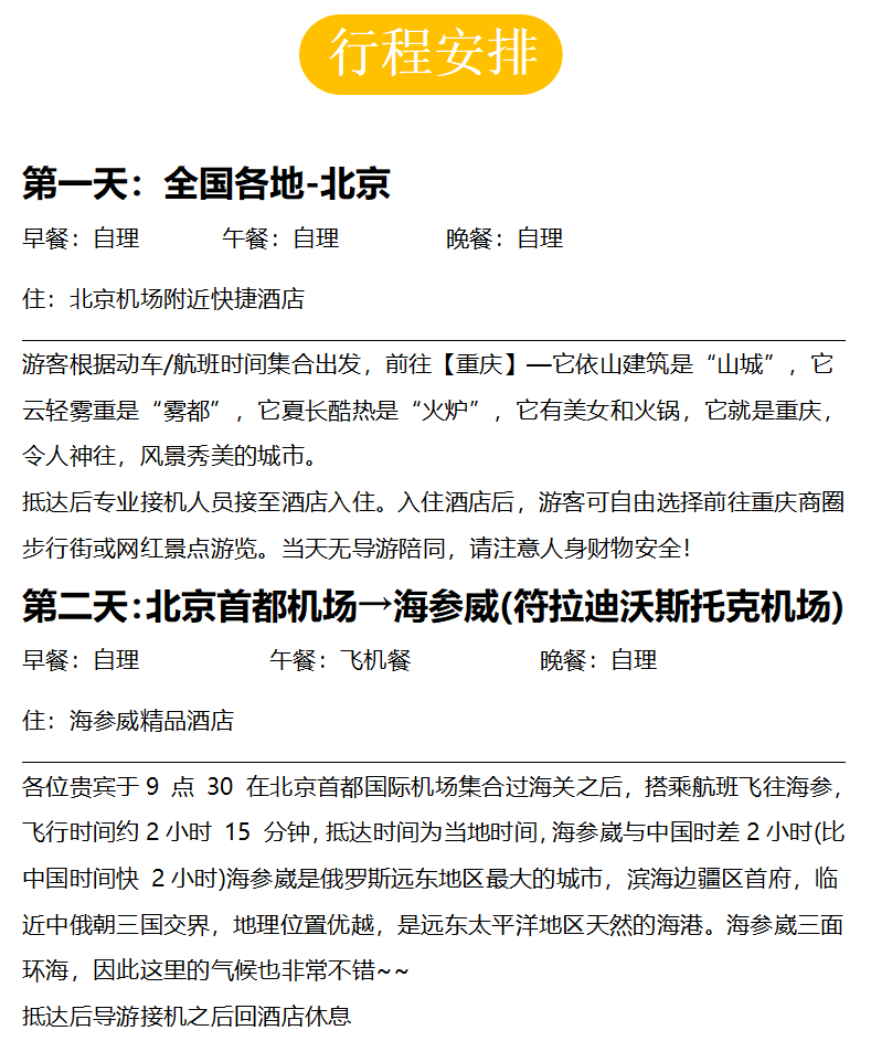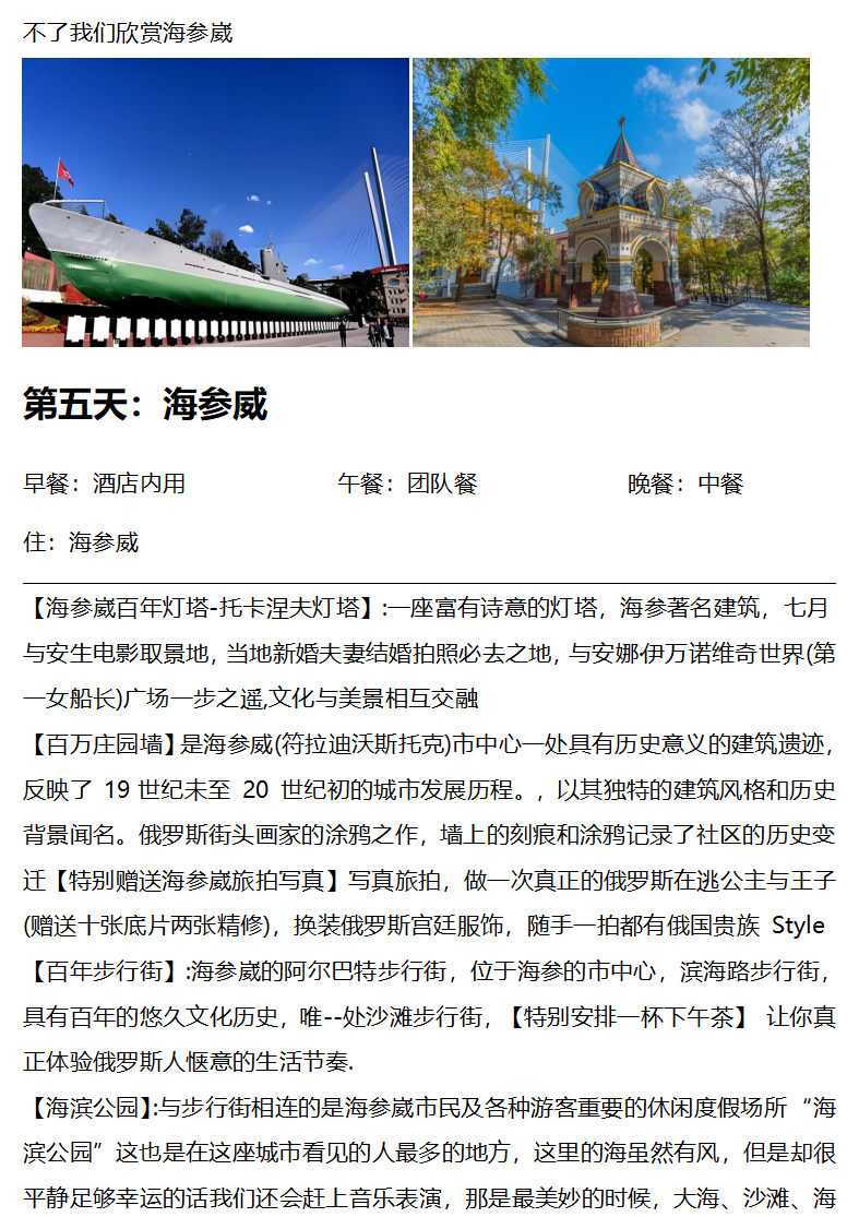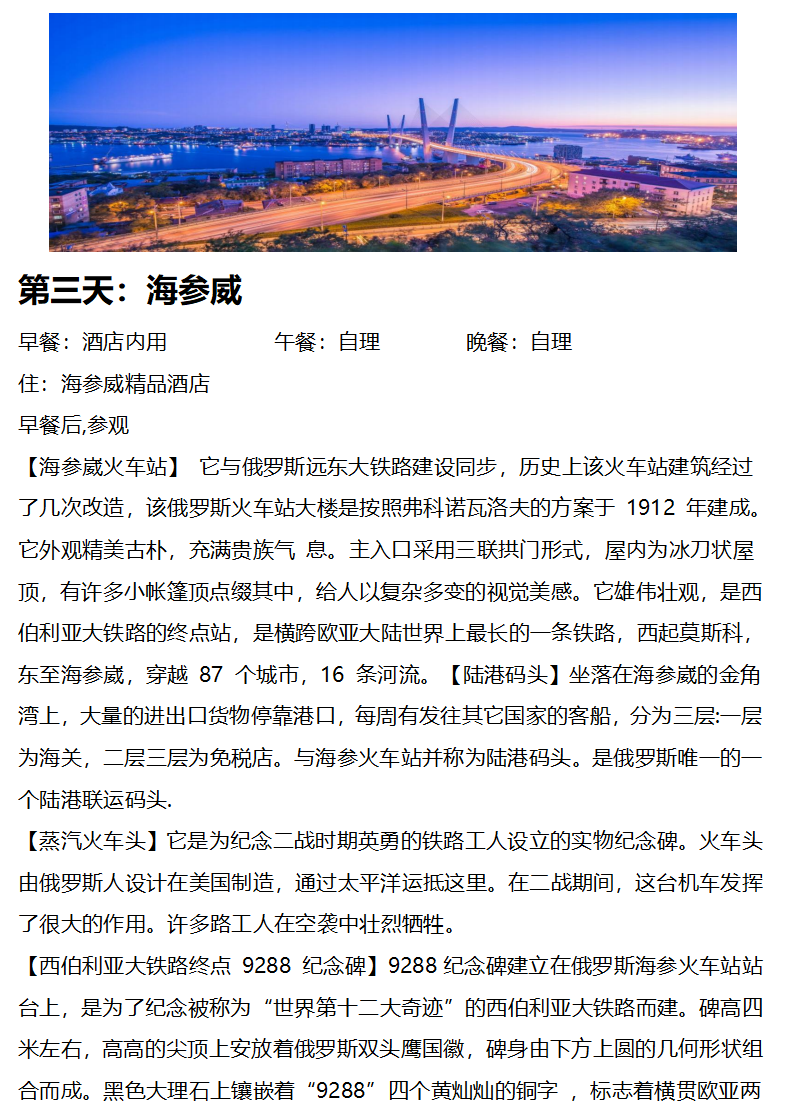 【海参威】俄罗斯远东海参威7天经典休闲游