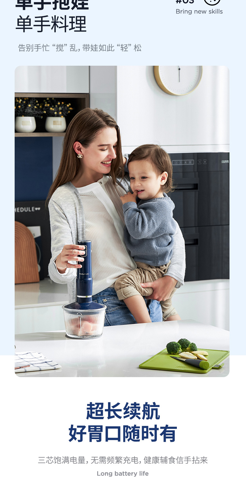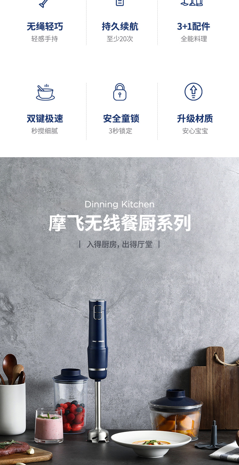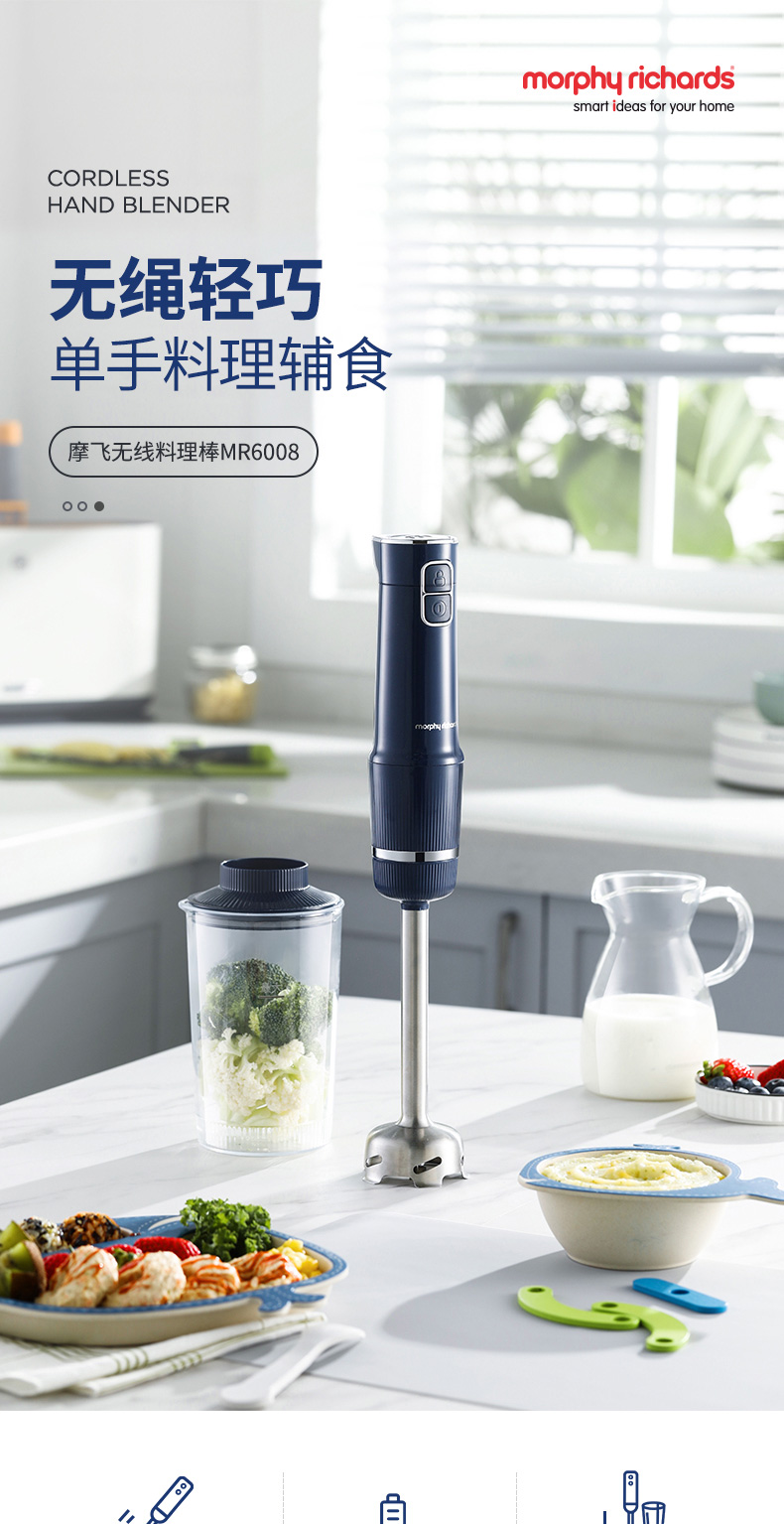 摩飞无线料理棒多功能宝宝辅食机婴儿手持小型家用搅拌料理机MR6008