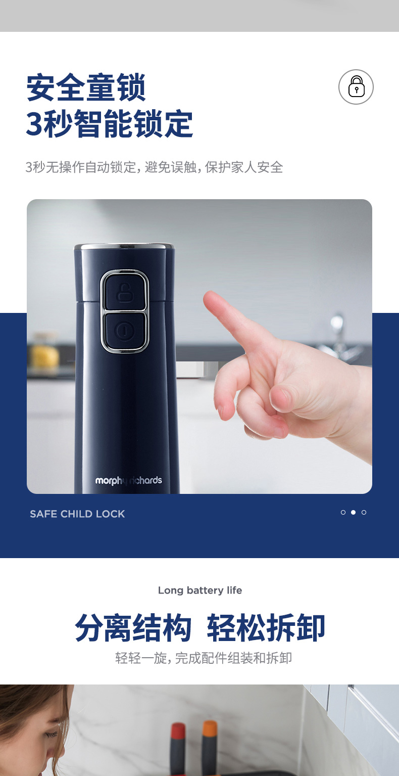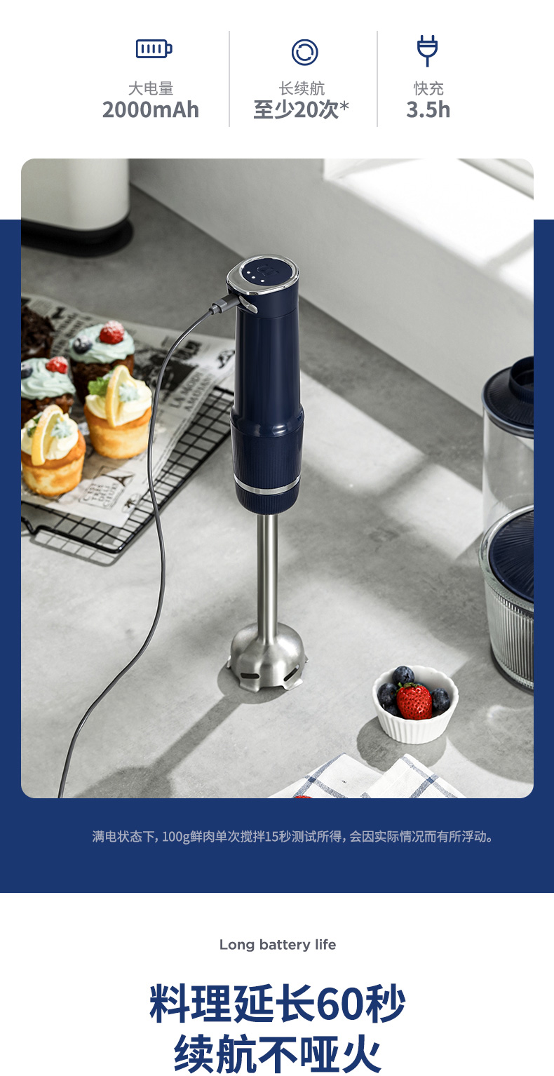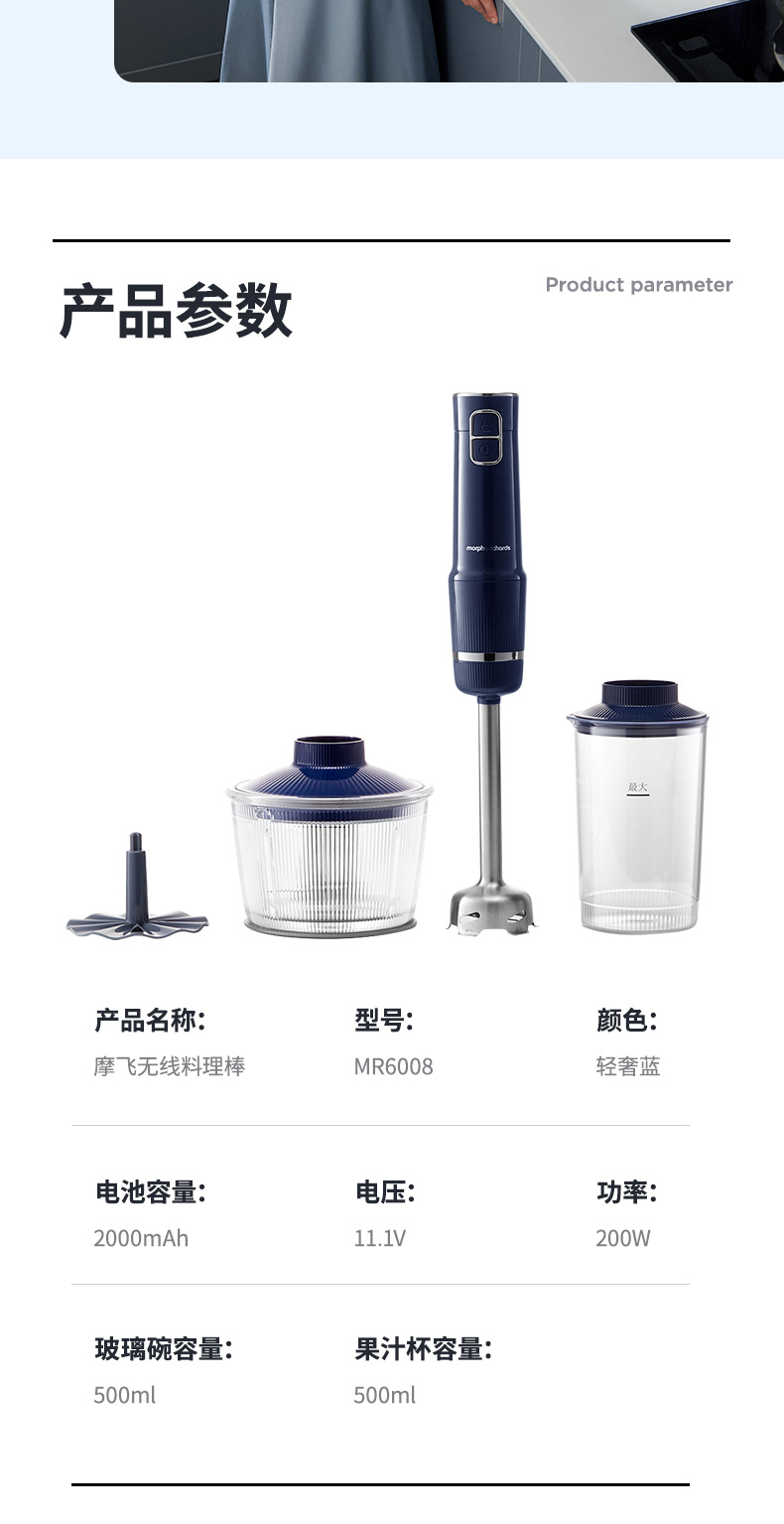 摩飞无线料理棒多功能宝宝辅食机婴儿手持小型家用搅拌料理机MR6008