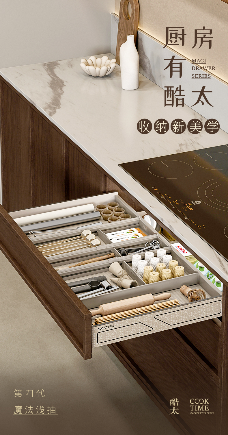 - 酷太坚持8年自主研发,已获得专利证书130项,拥有一套领先市场的厨房收纳系统,为千万中国家庭解决厨房脏乱差,缔造厨房新生活。