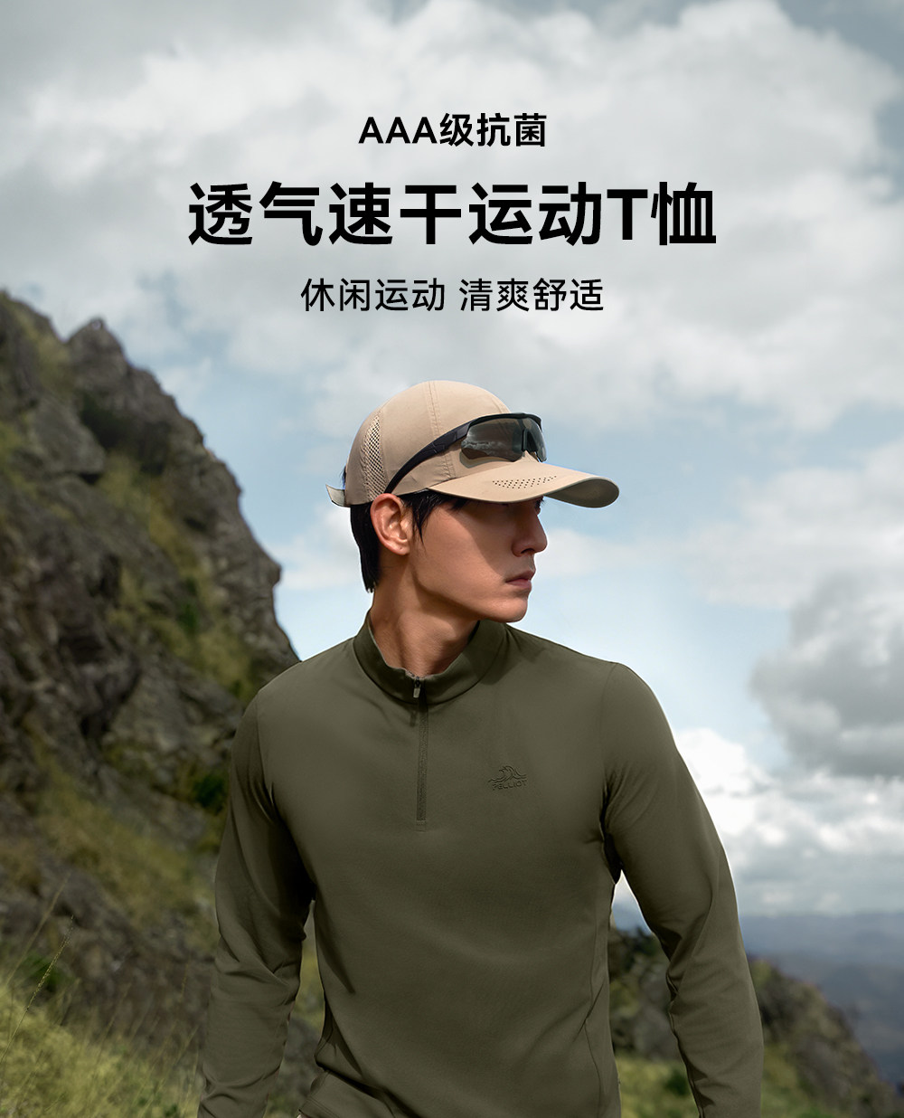伯希和户外速干T恤男26新款抗菌吸湿长袖打底衣徒步健身运动内搭