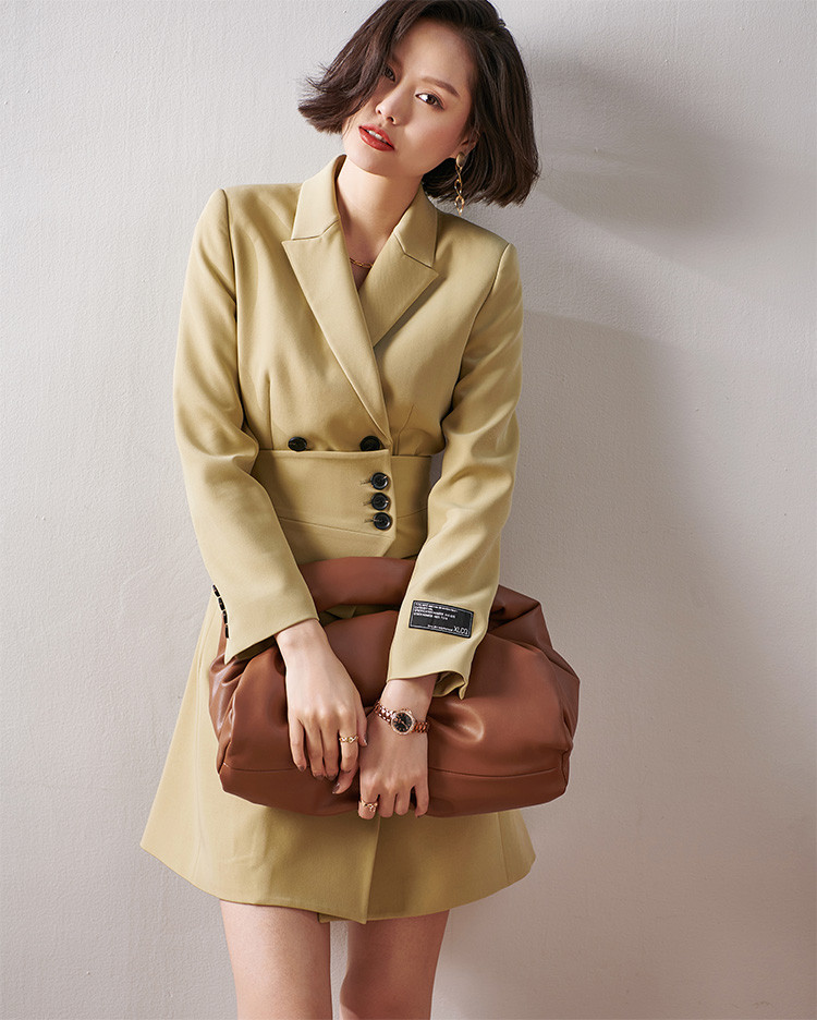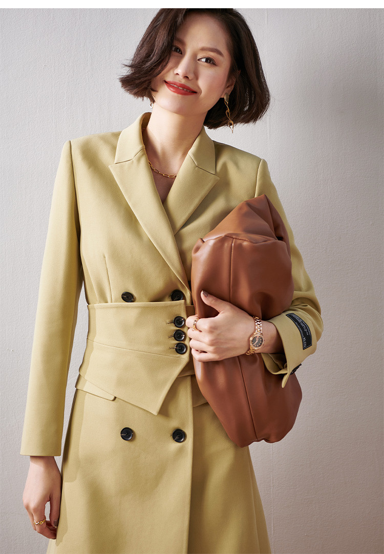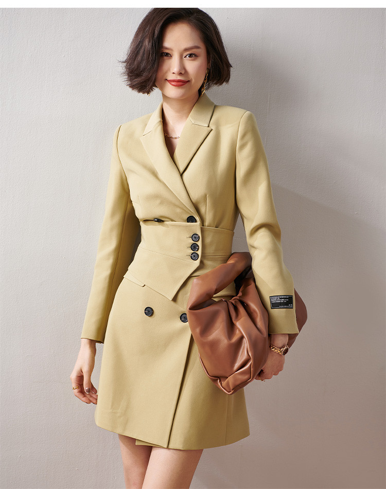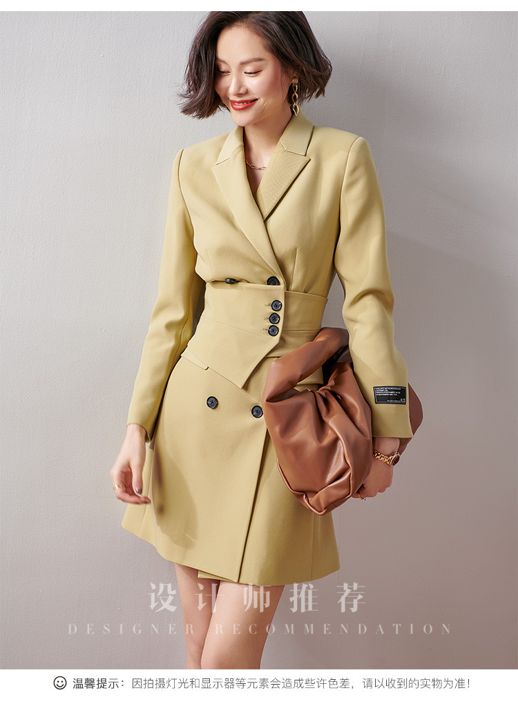 剩XL 芳外2021秋季西装式连衣裙通勤百搭修身减龄淑女裙子