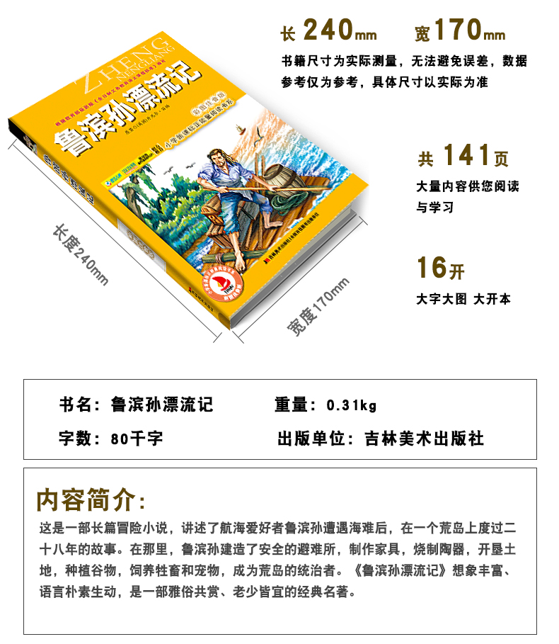 小学生语文新课程读丛书鲁滨逊(孙)漂流记彩图注音版6-7-8-9岁儿童课外书一年级读二三年级课外读物正能量阅读书籍班主任推荐
