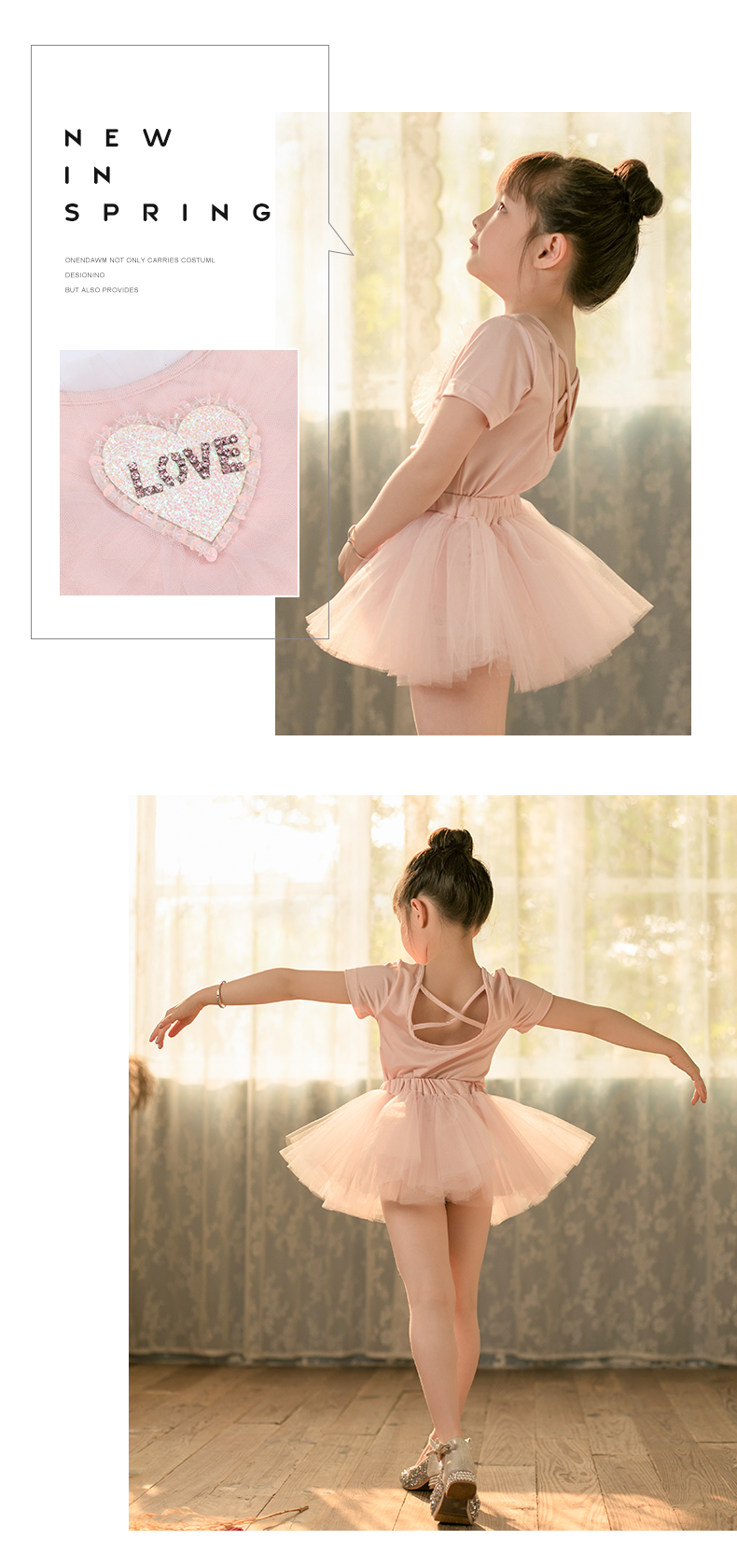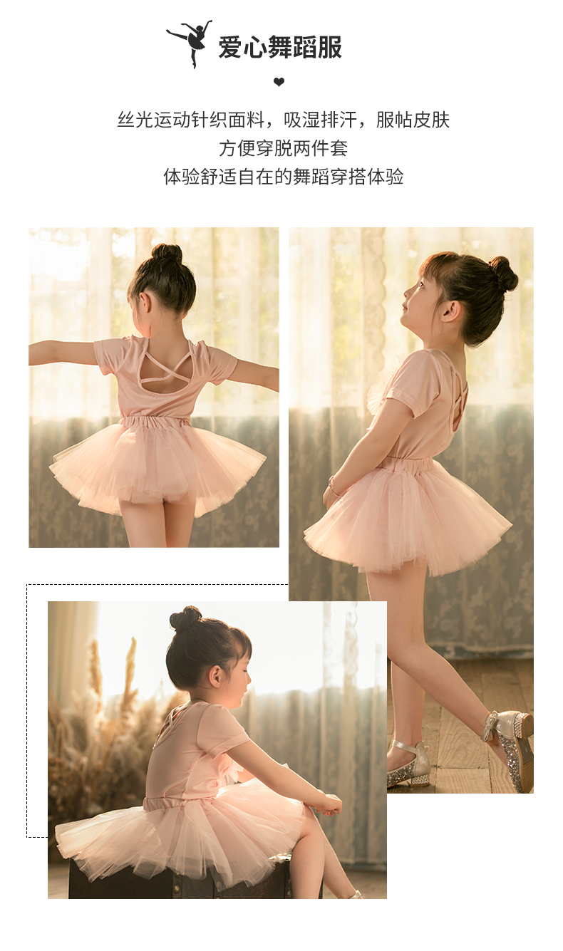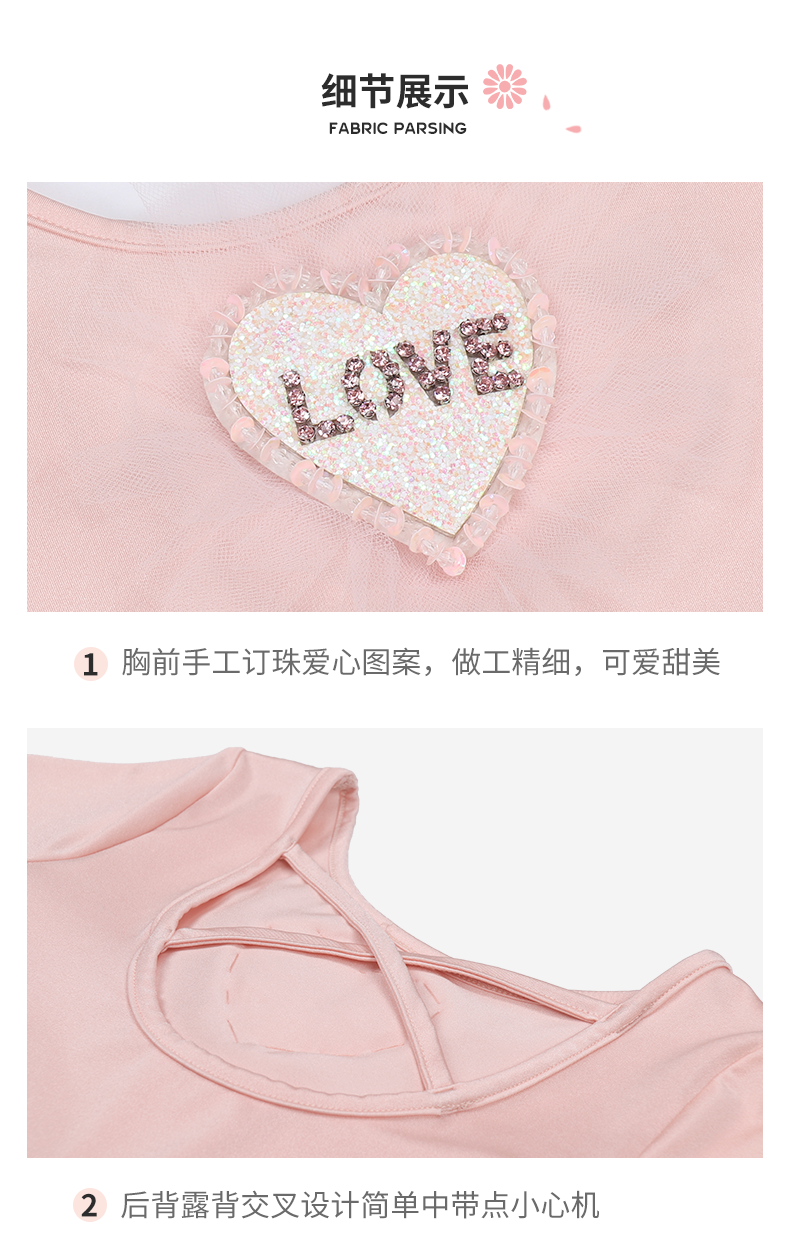 pureshare 女童舞蹈裙练功服冰雪奇缘艾莎公主裙芭蕾裙儿童演出服-粉色爱心舞蹈服