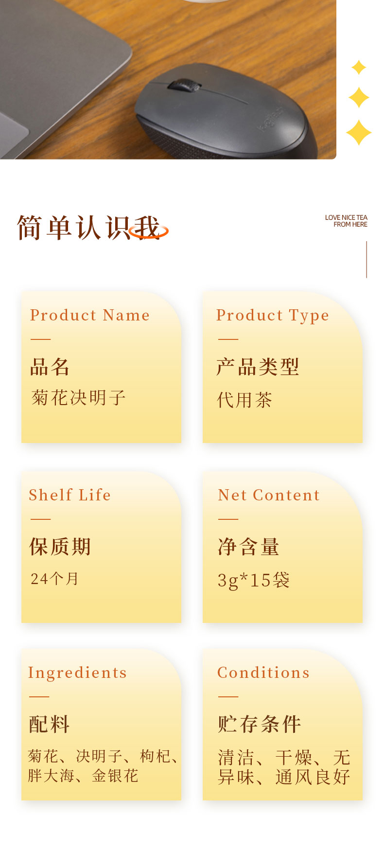 秭归 至喜茶厂 菊花决明子茶1盒装(3g*15包)/3盒