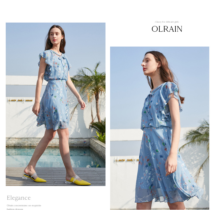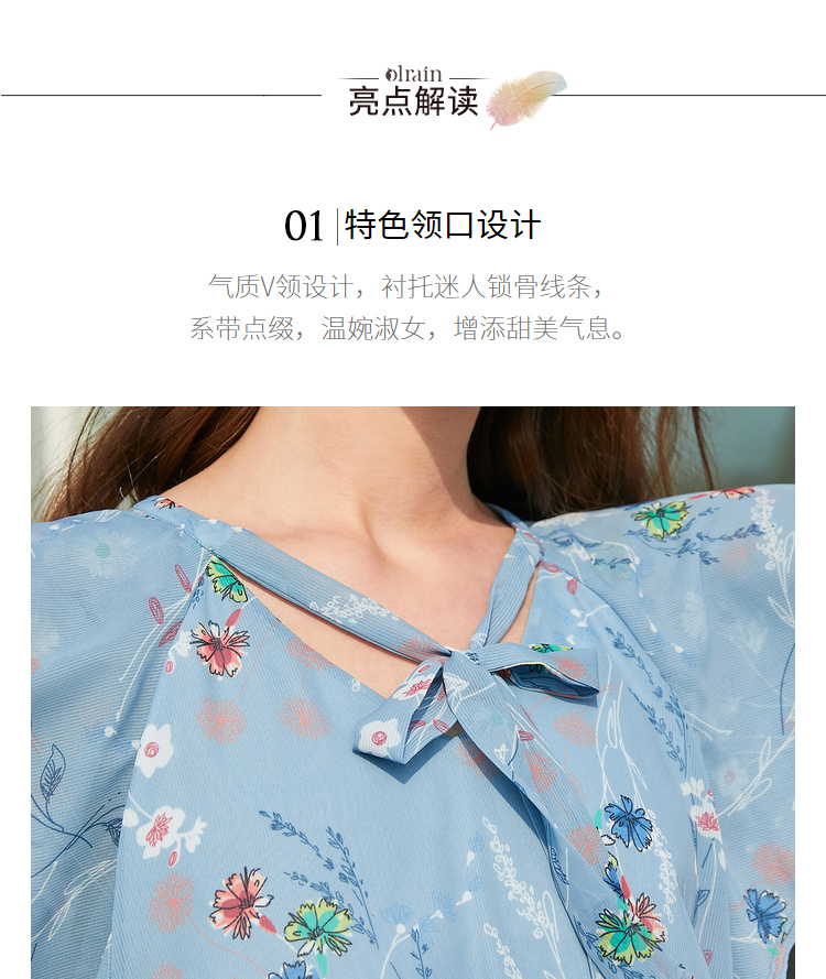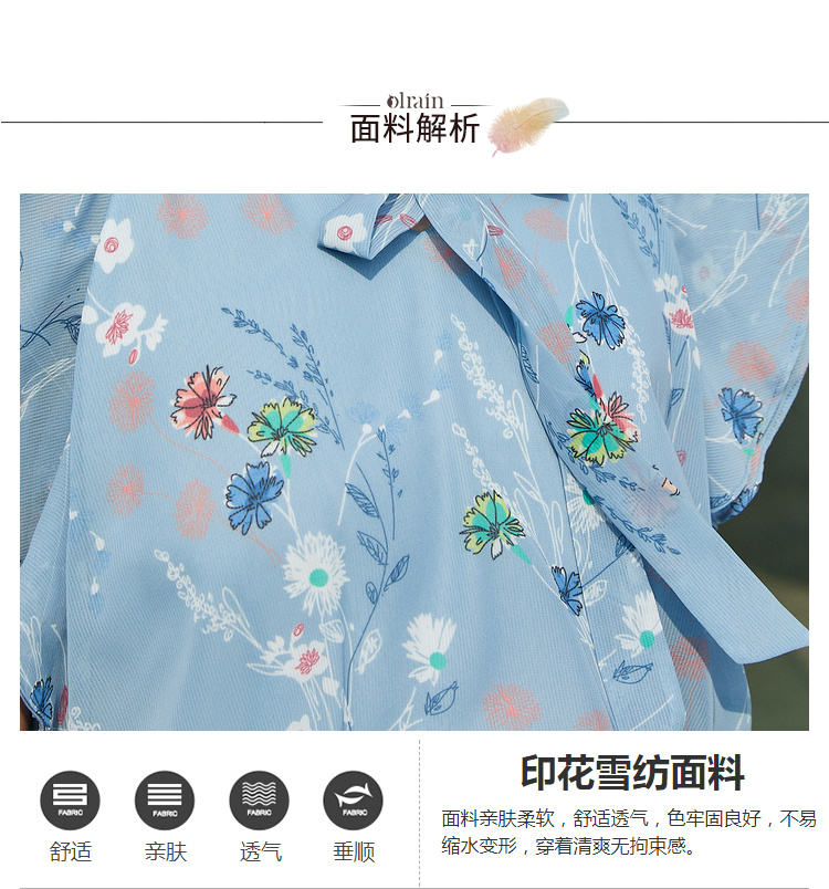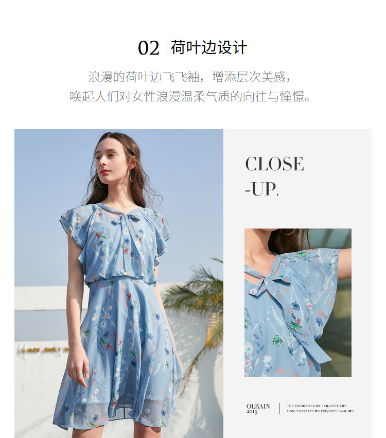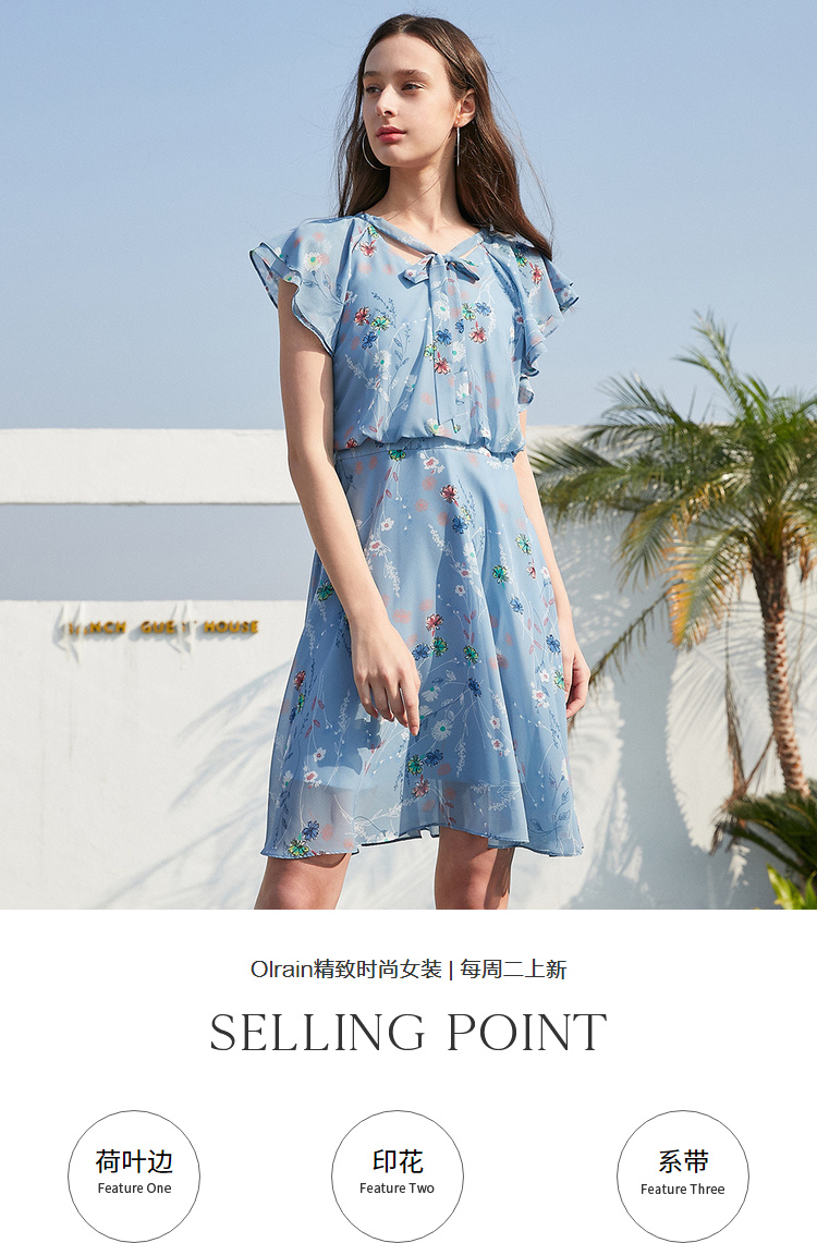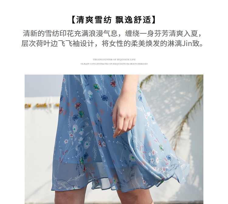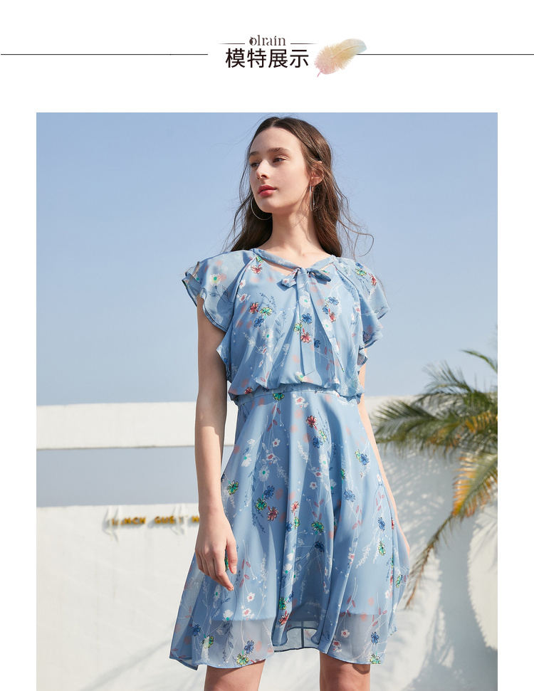 欧芮儿短袖碎花雪纺连衣裙女欧芮儿2021夏装新款系带显瘦中长款A字裙