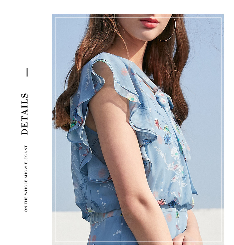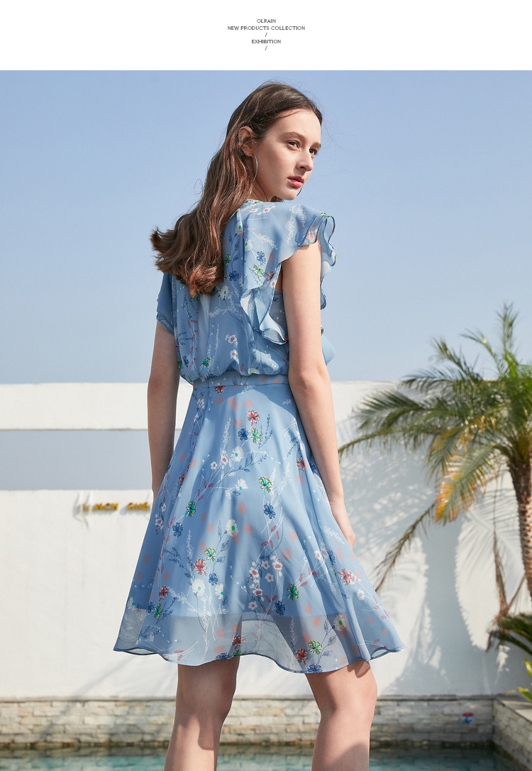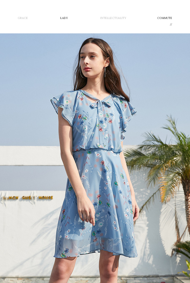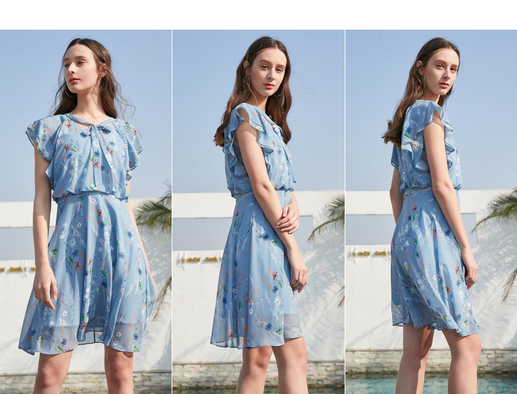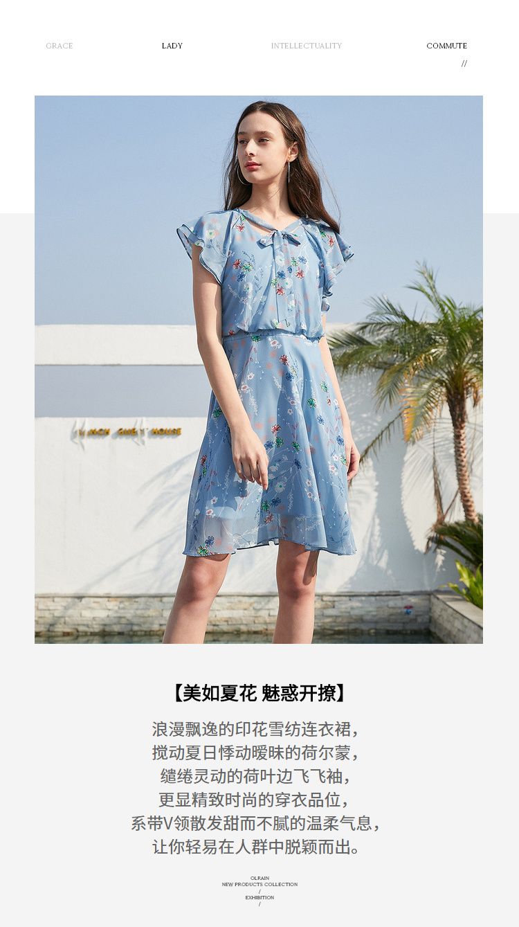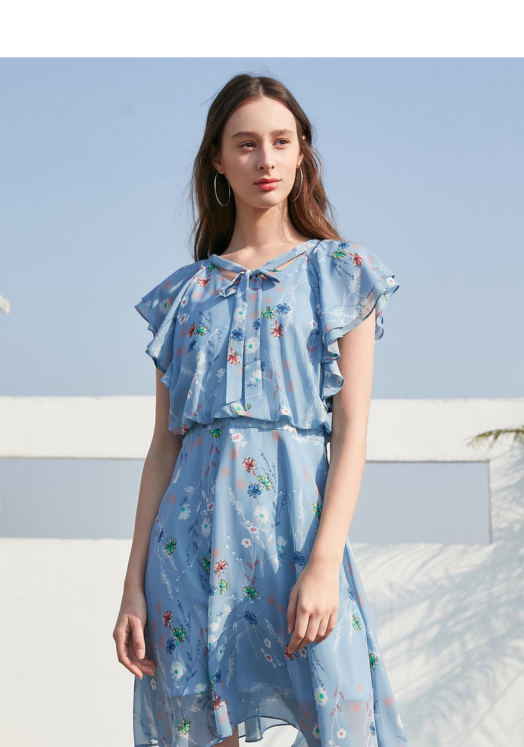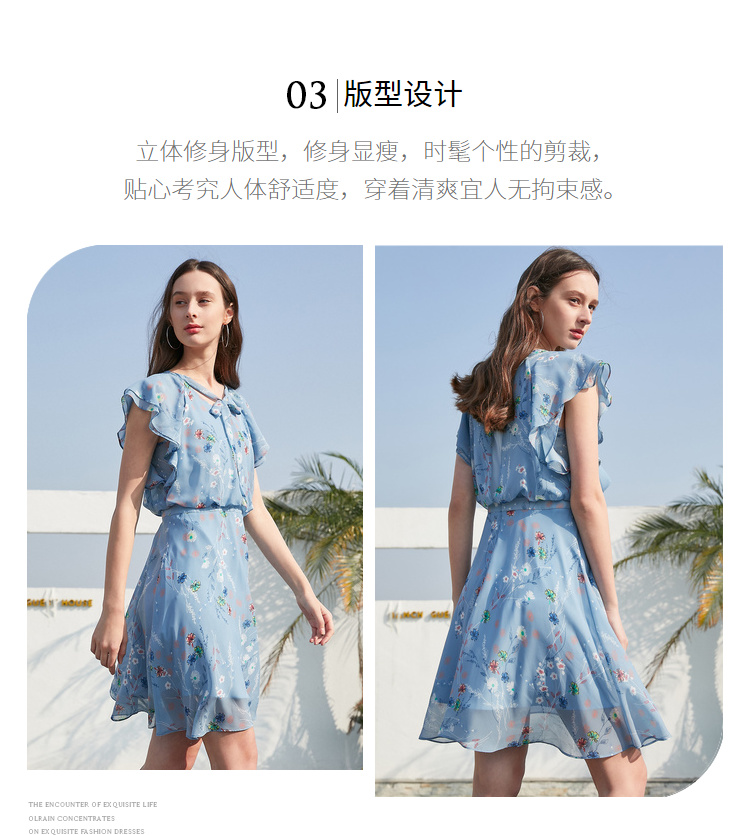 欧芮儿短袖碎花雪纺连衣裙女欧芮儿2021夏装新款系带显瘦中长款A字裙