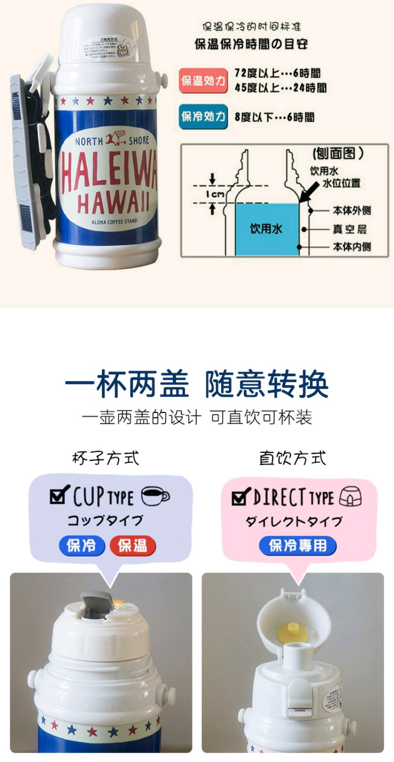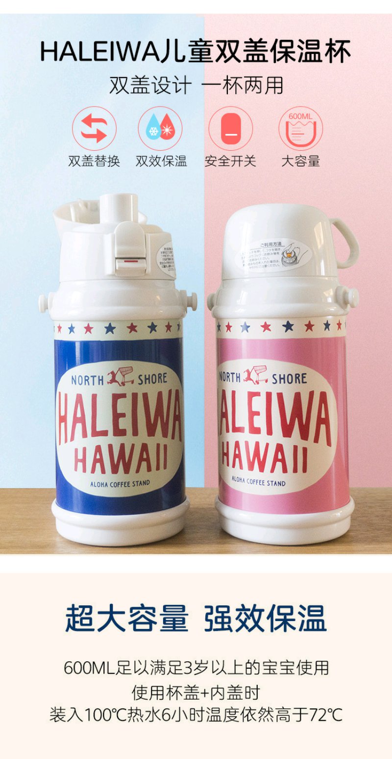 (超值)日本haleiwa 儿童保温杯 哈雷蛙 大容直饮 600ml