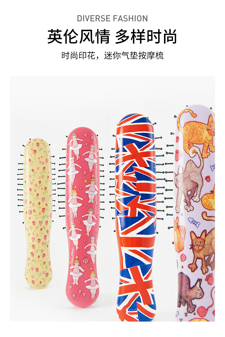 Kent肯特英国进口便携梳子女气垫按摩梳随身顺发小巧梳迷你彩色梳
