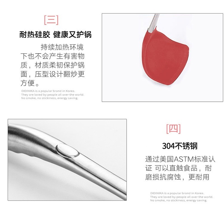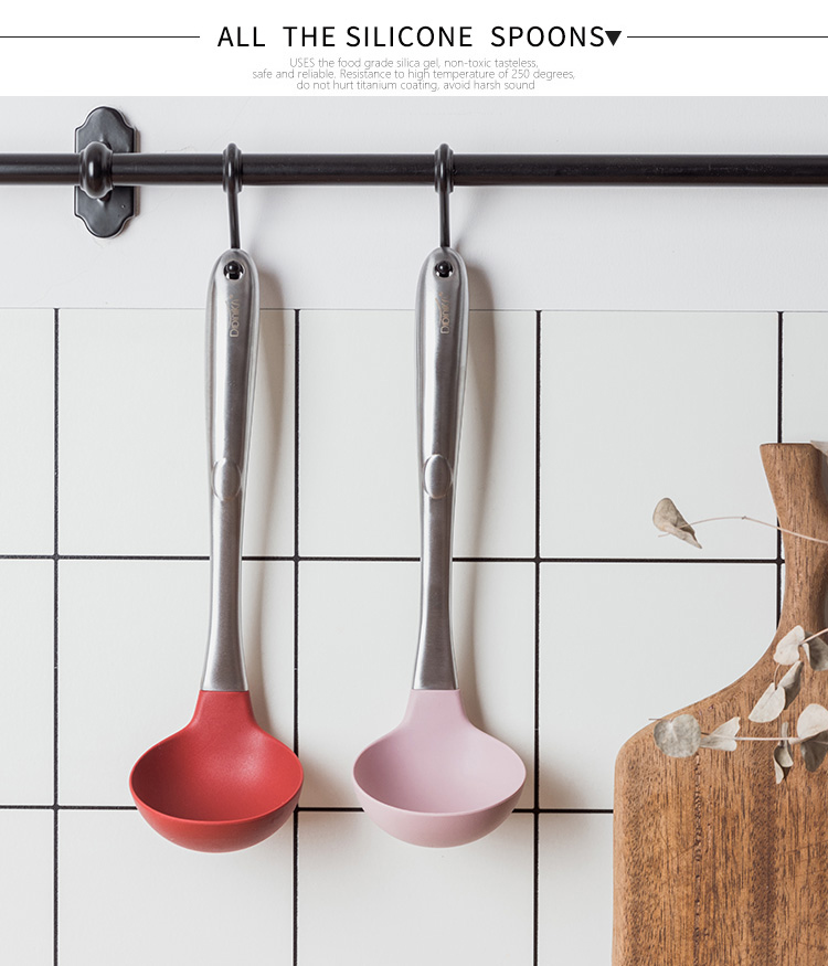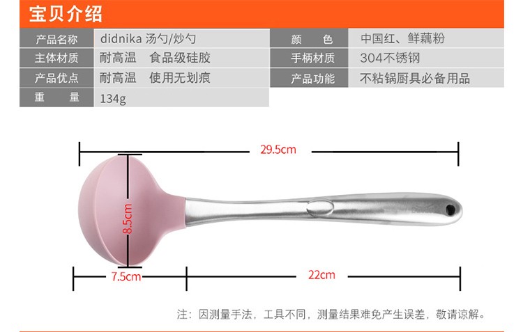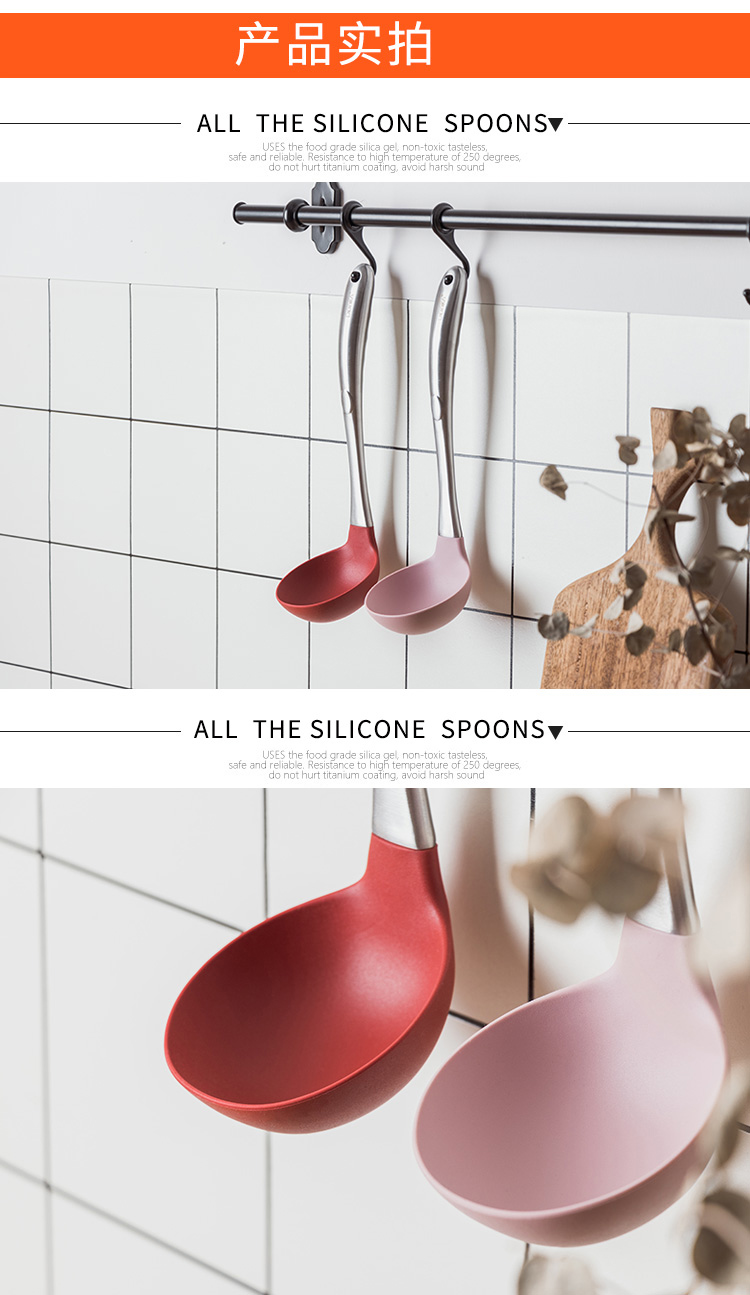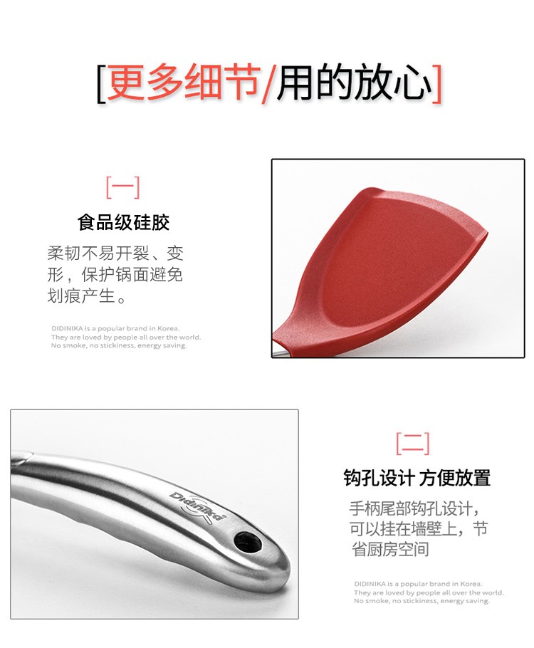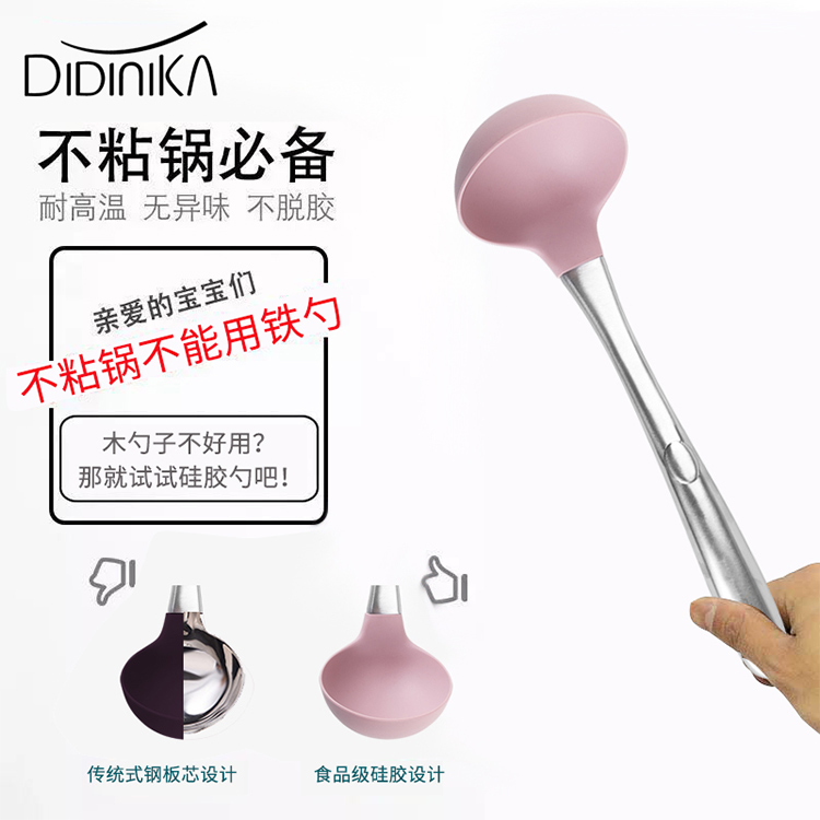 Didinika 迪迪尼卡硅胶汤勺硅胶锅铲 不粘锅304不锈钢把手 耐高温食品级硅胶勺 硅胶铲