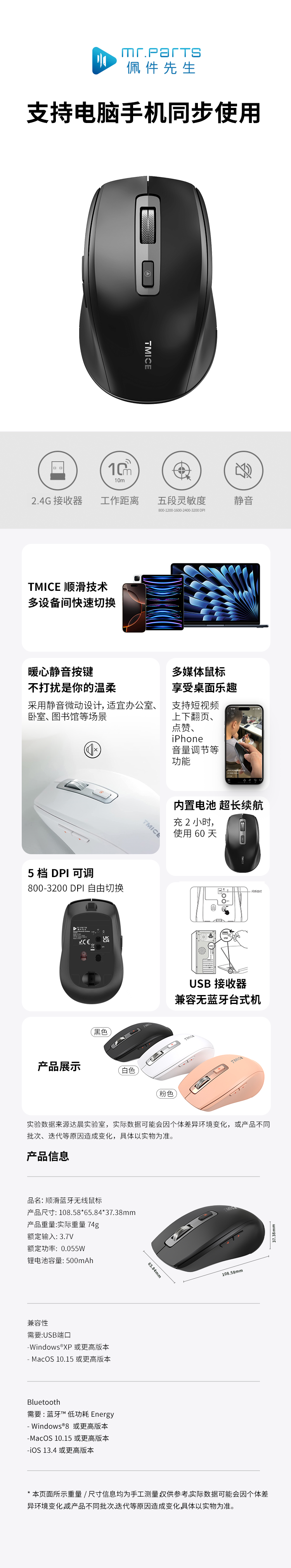 佩件先生 顺滑蓝牙无线鼠标 A718D - 黑色