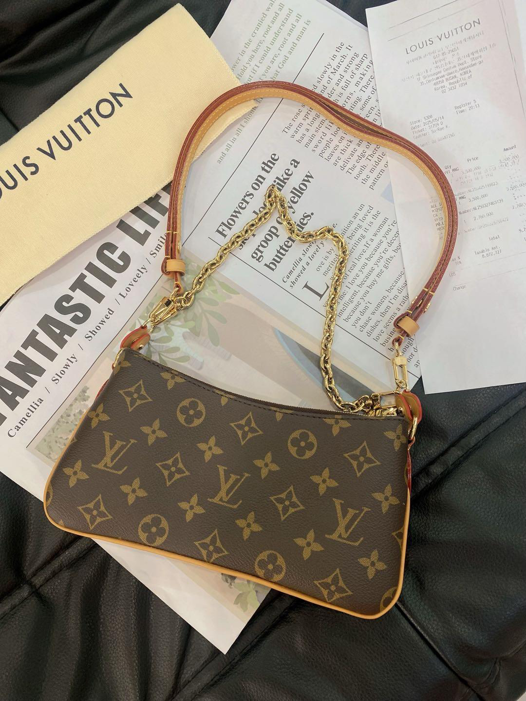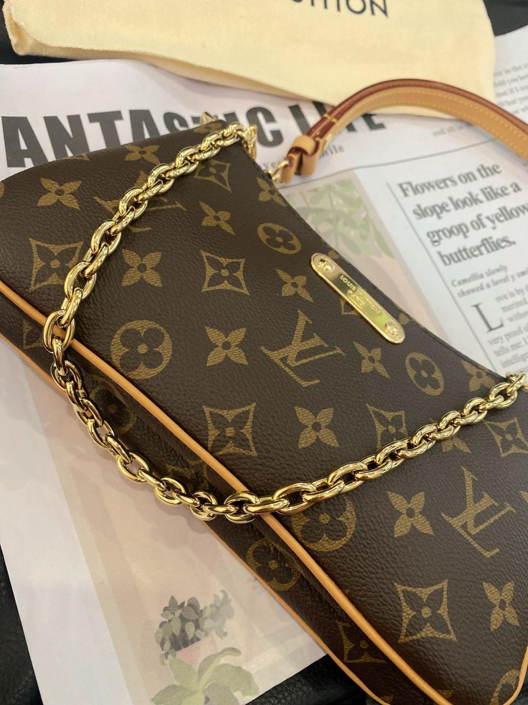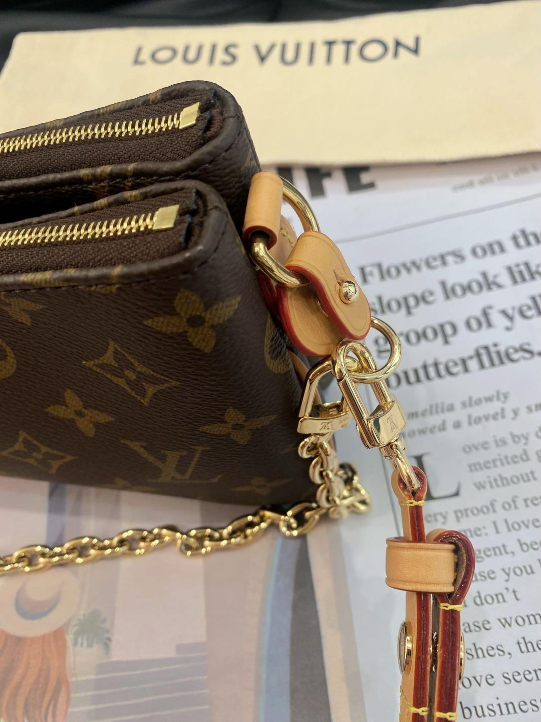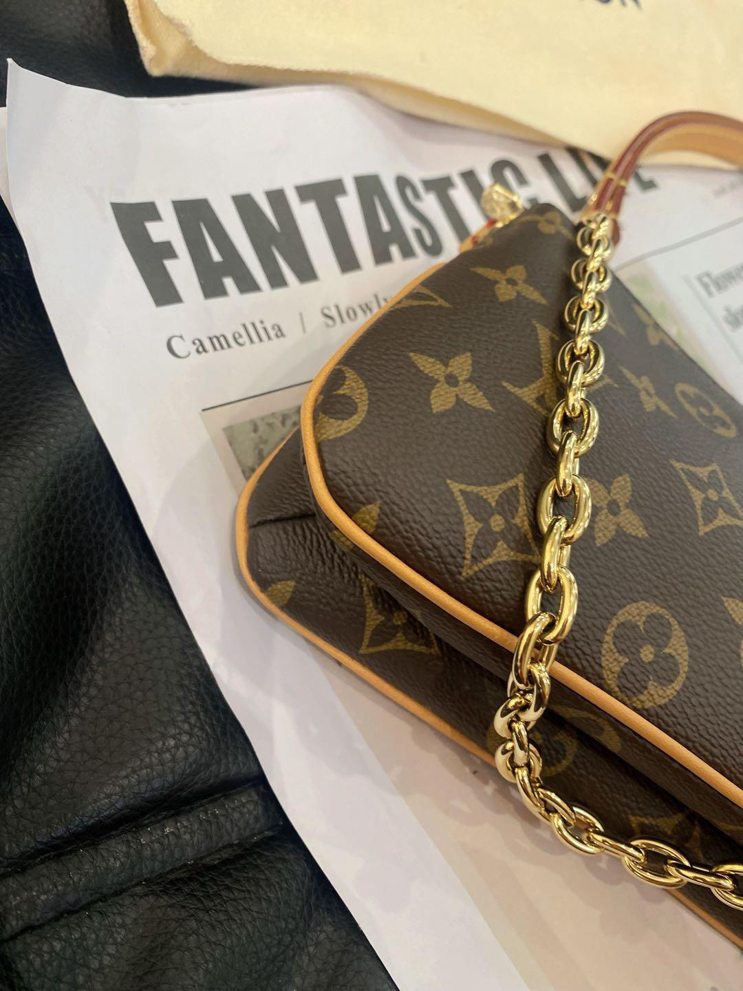【商品詳情】正品二手 Lv liv pochette 老花 单肩包😻 99新 24×12 配件:防尘袋 肩带*2。24年新款腋下包 金属全部有膜