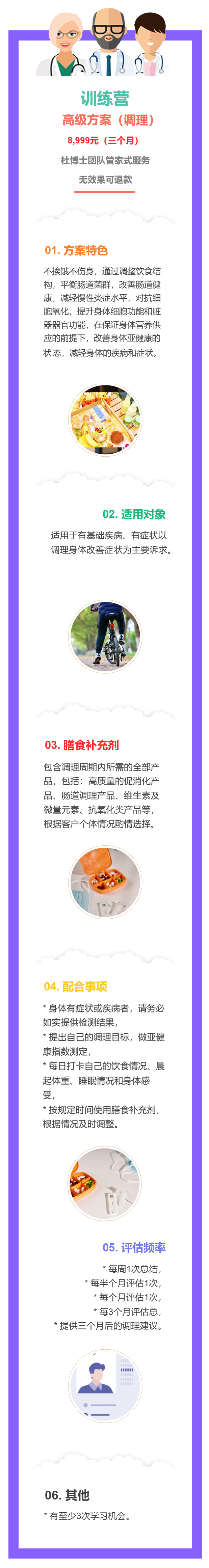 高级方案,调整饮食结构平衡肠道菌群,改善肠道健康减轻慢性炎症水平,对抗细胞氧化提升身体细胞功能和脏器器官功能,改善亚健康状态