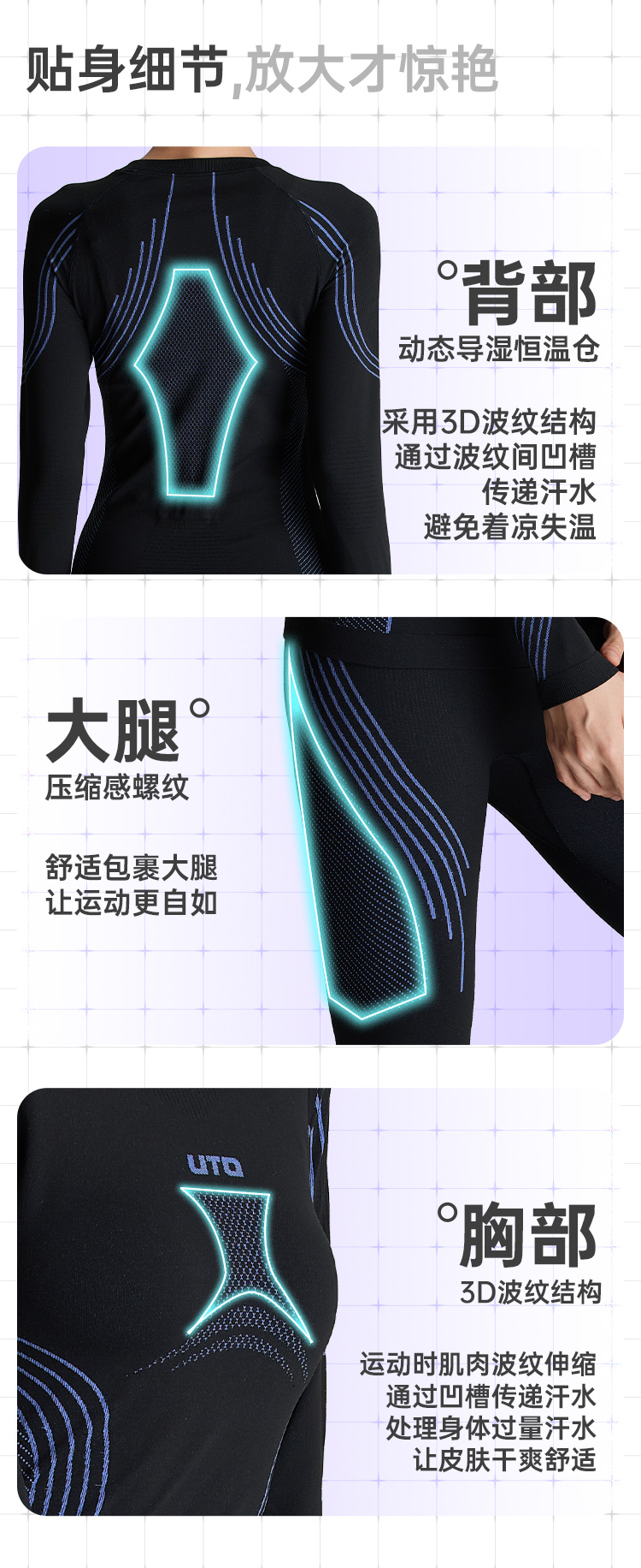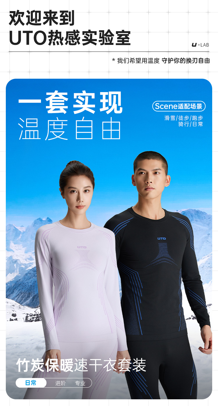UTO/悠途户外运动保暖套装秋冬男女吸湿速干修身弹力长袖功能内衣
