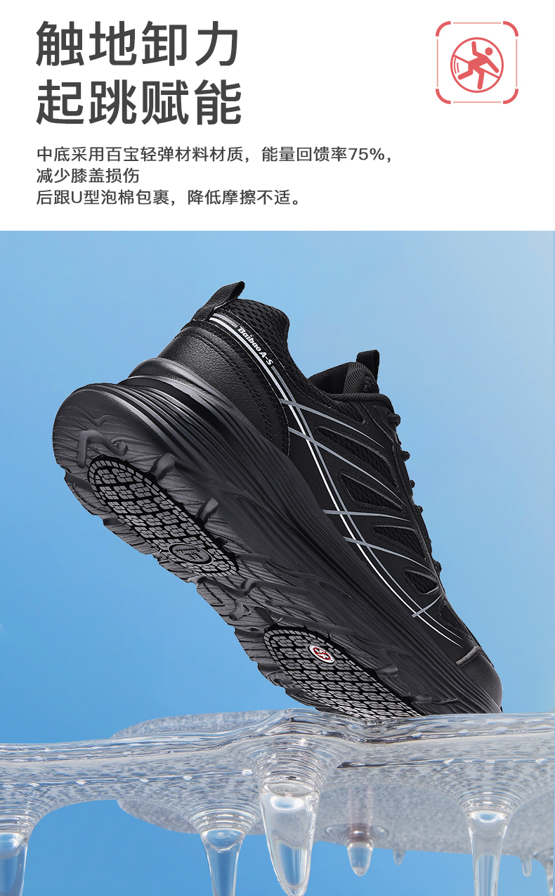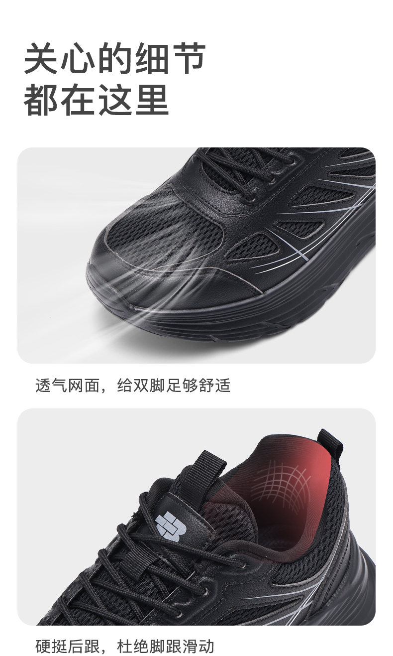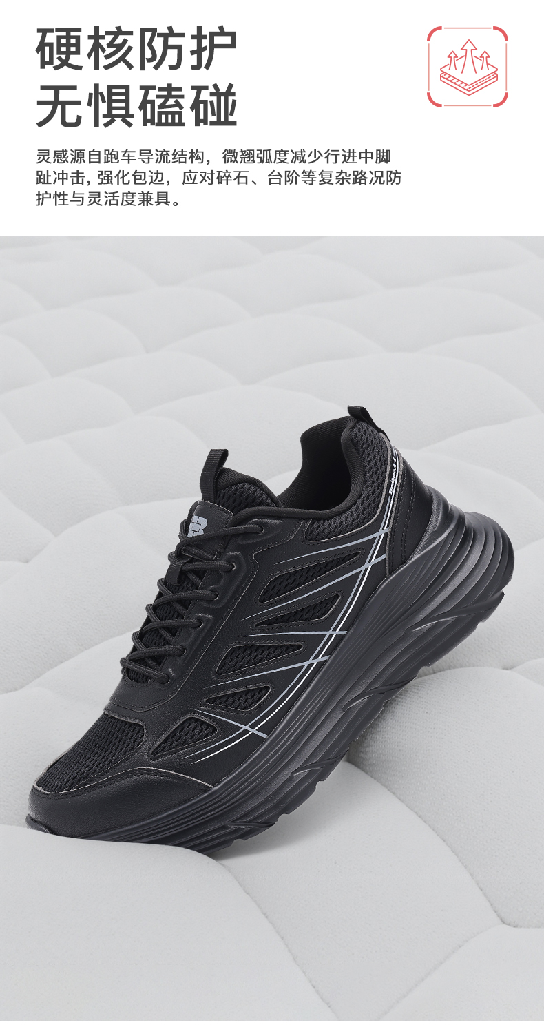 百宝男士休闲鞋户外登山透气运动爸爸散步鞋专业止滑黑色轻便软底