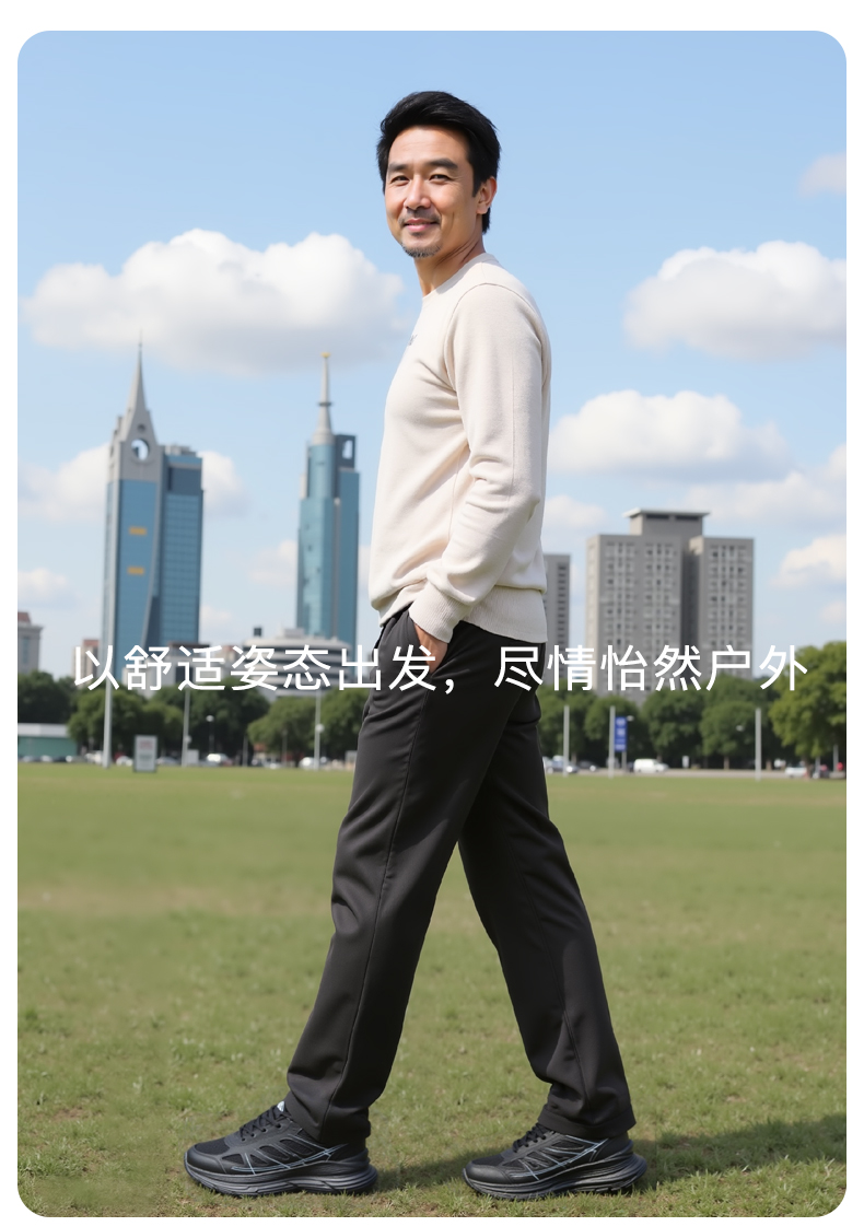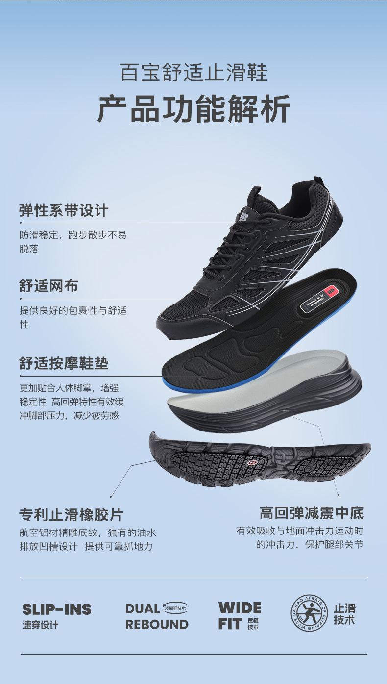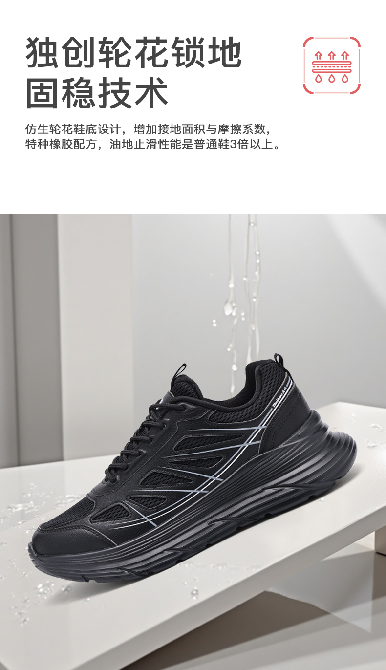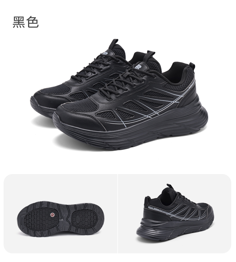 百宝男士休闲鞋户外登山透气运动爸爸散步鞋专业止滑黑色轻便软底