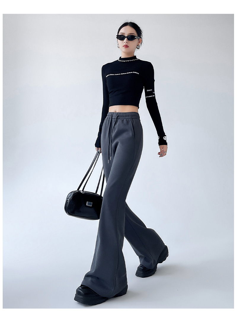 「美式复古风!四色可选」华棉喇叭裤子女春夏修身显瘦运动卫裤休闲垂感拖地马蹄裤下装