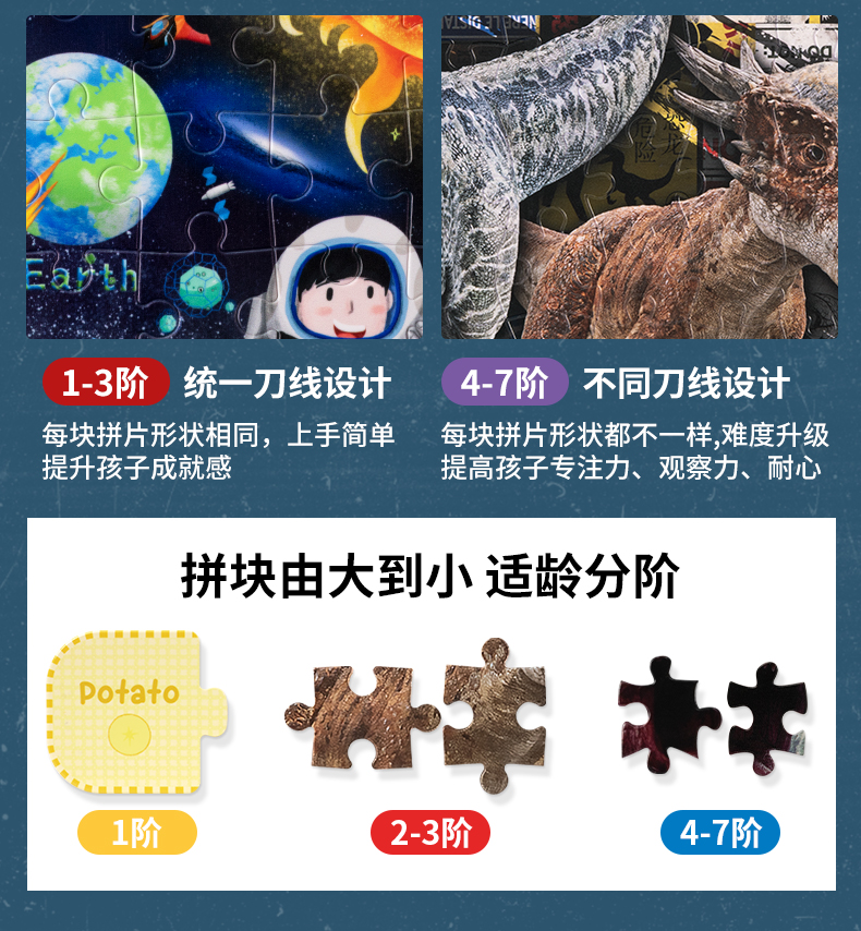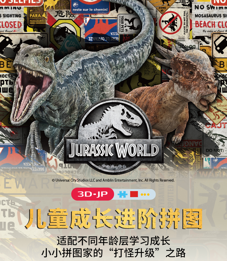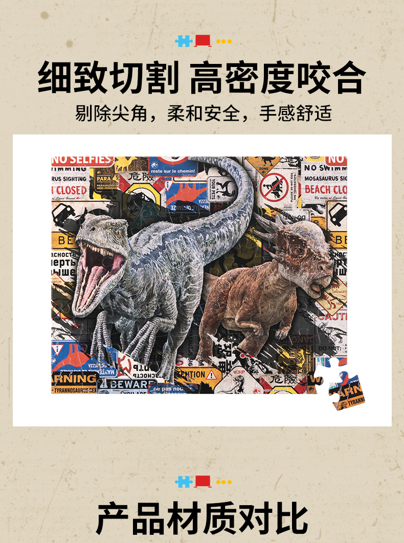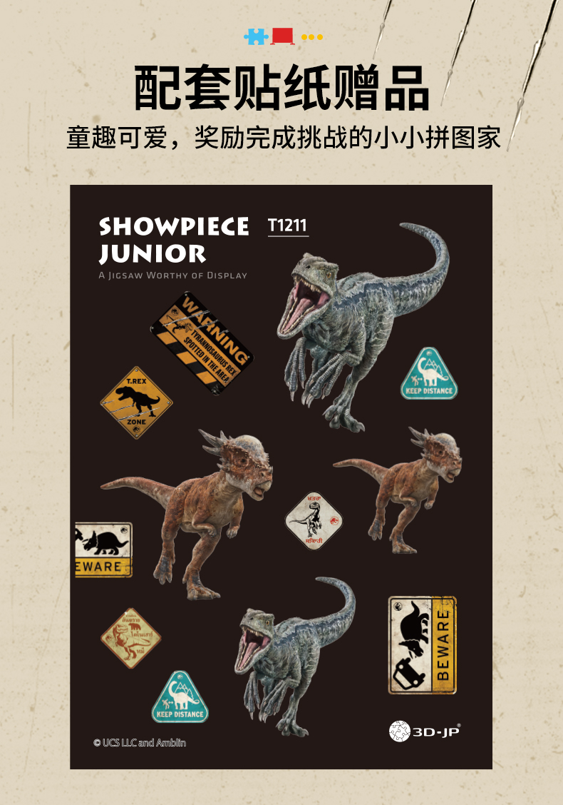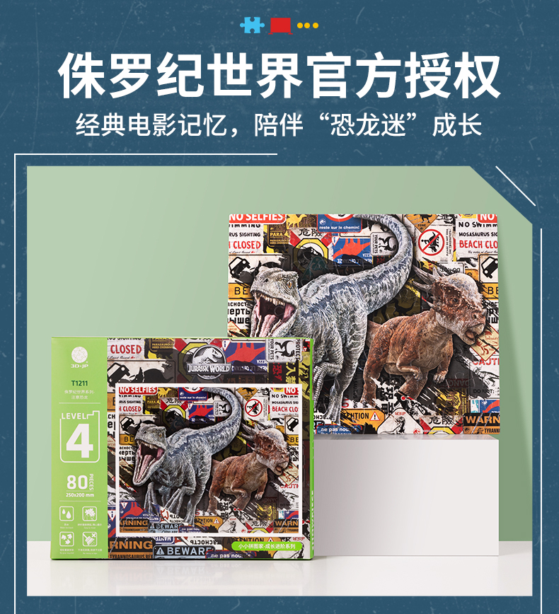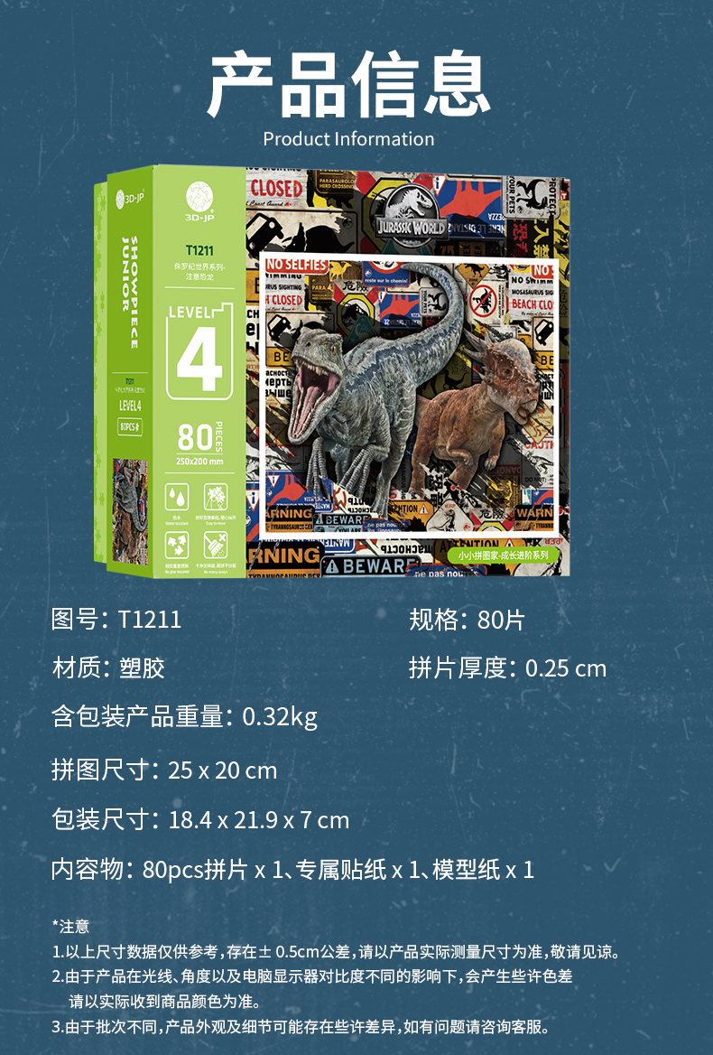 80片4阶 儿童拼图 T1211 侏罗纪世界系列-注意恐龙 4岁到6岁塑料大块益智玩具