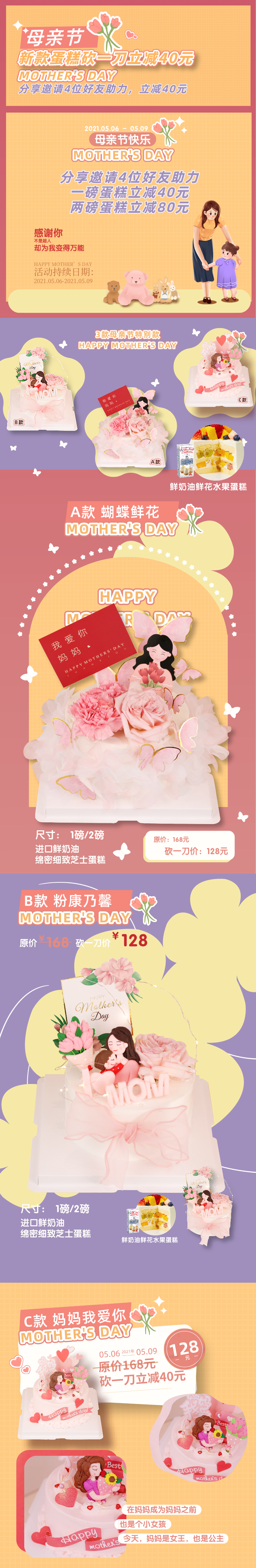 【下架勿动】【2磅链接】砍一刀立减40元!3款新款母亲节鲜花鲜奶油水果蛋糕 送妈妈送女神