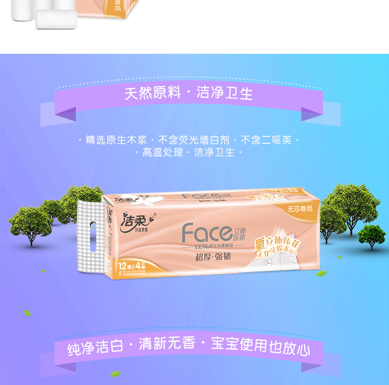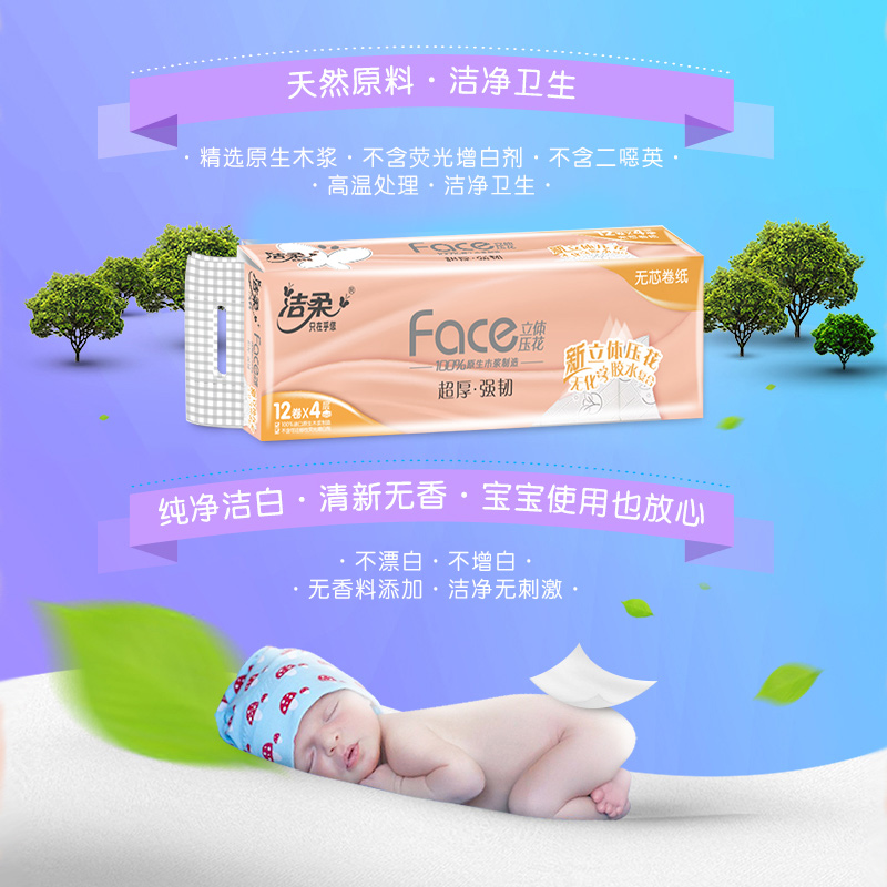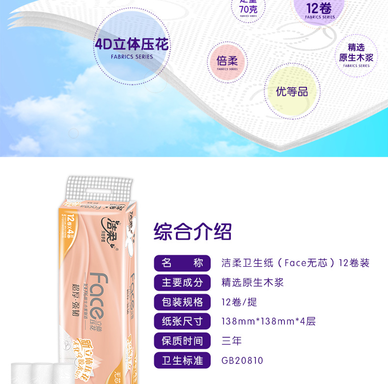 洁柔布艺圆点无芯卷纸12卷 (新老包装)