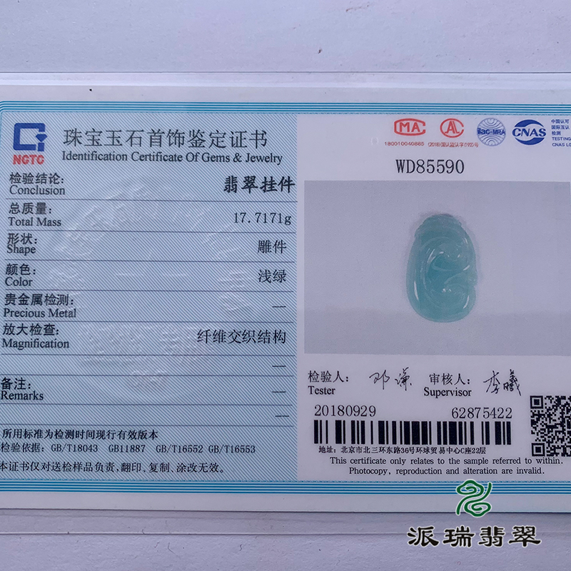 派瑞翡翠 翡翠挂件 糯冰 浅绿