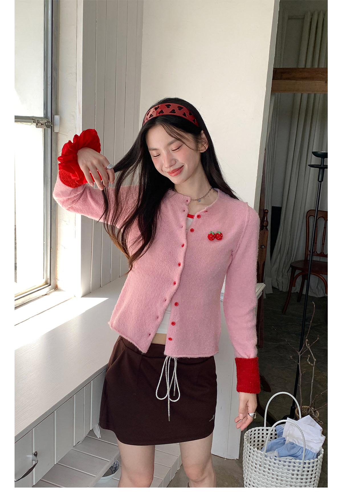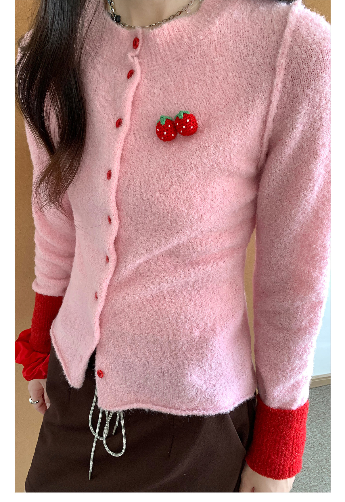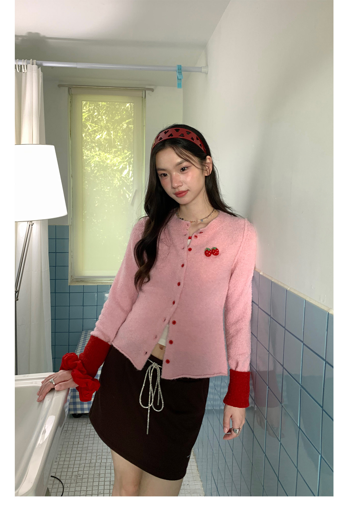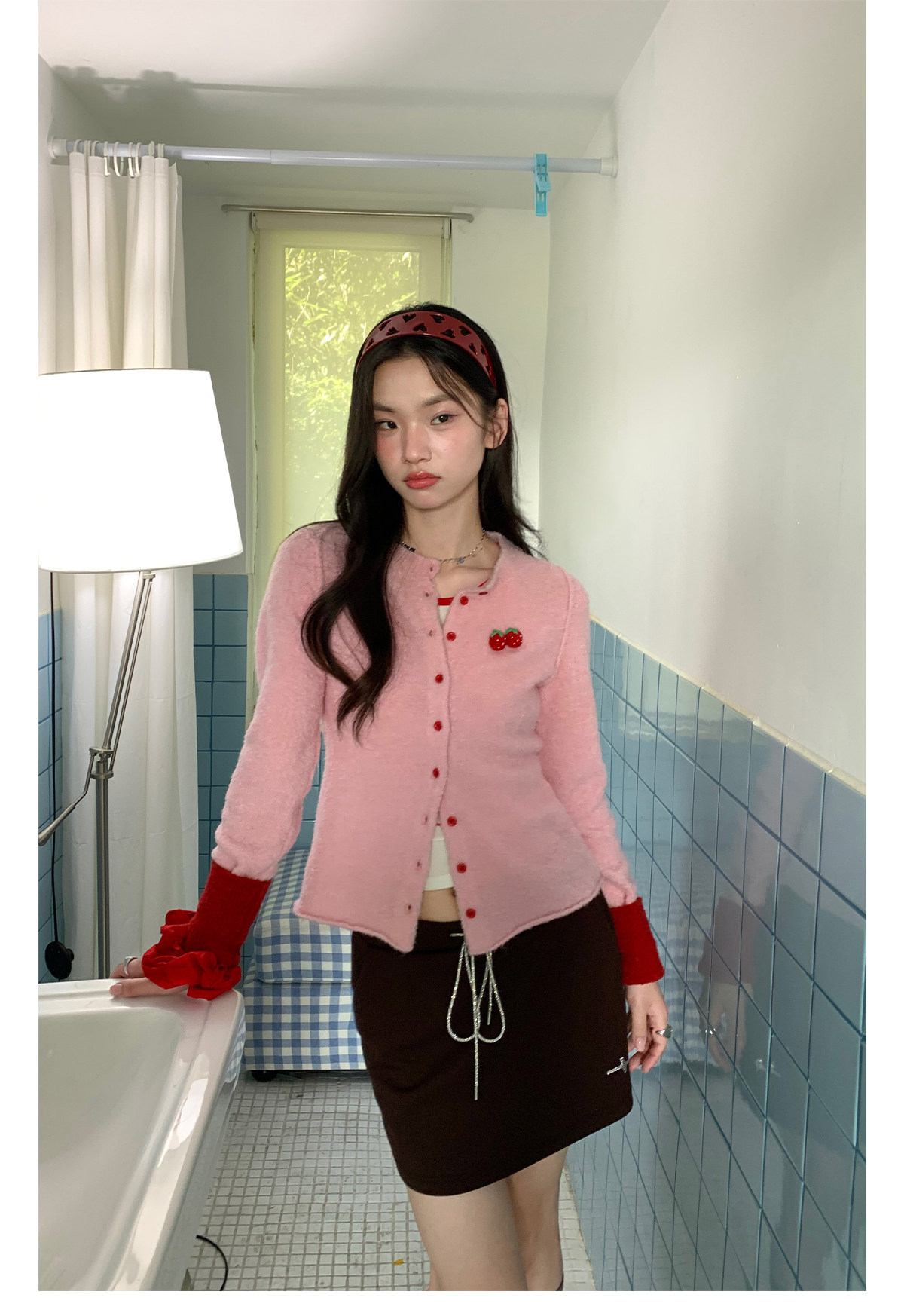 FTT FlyTheTruth『草莓布丁』 毛衣开衫外套秋冬粉色上衣针织衫女