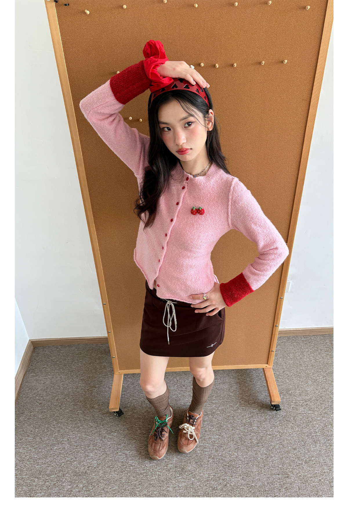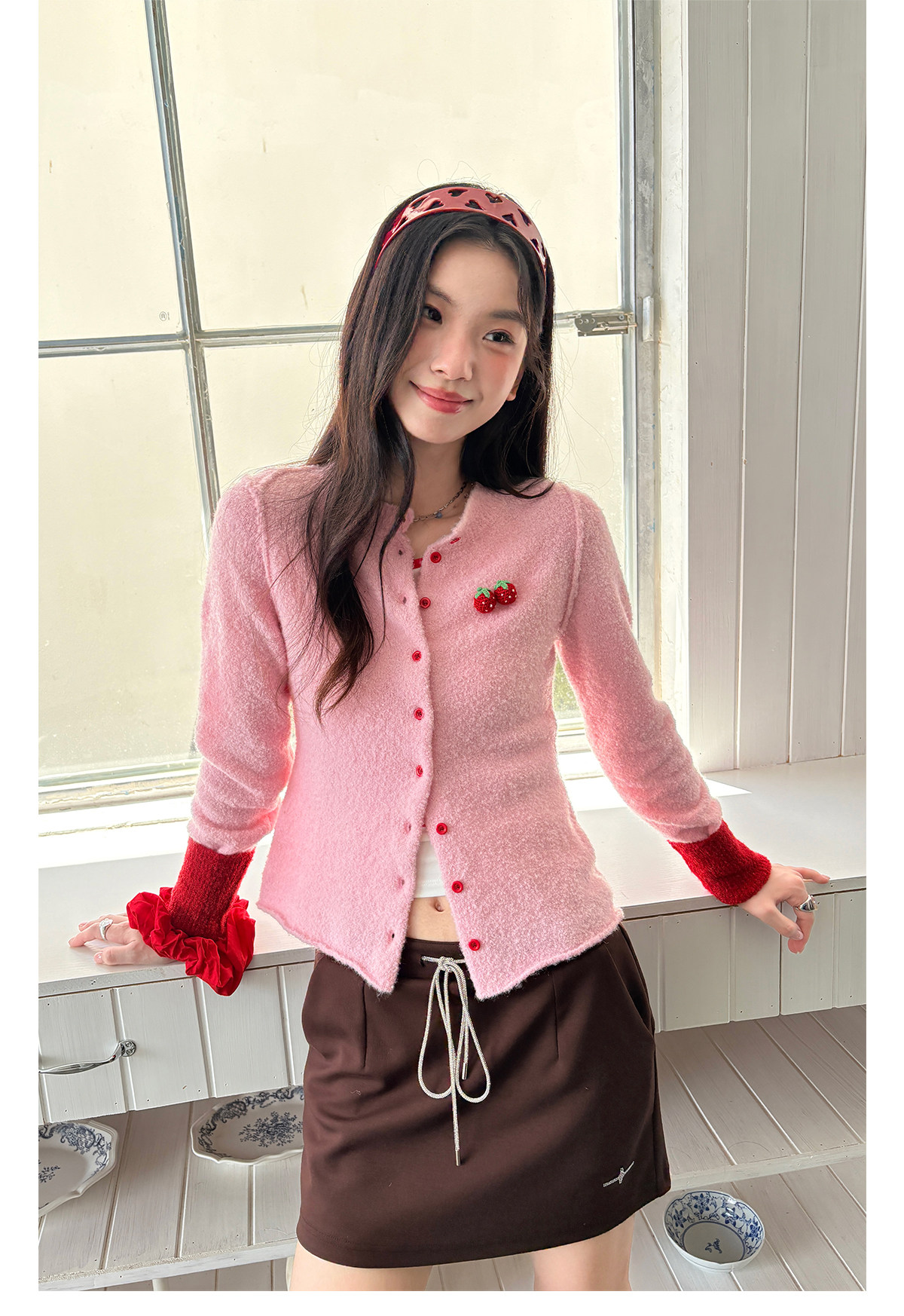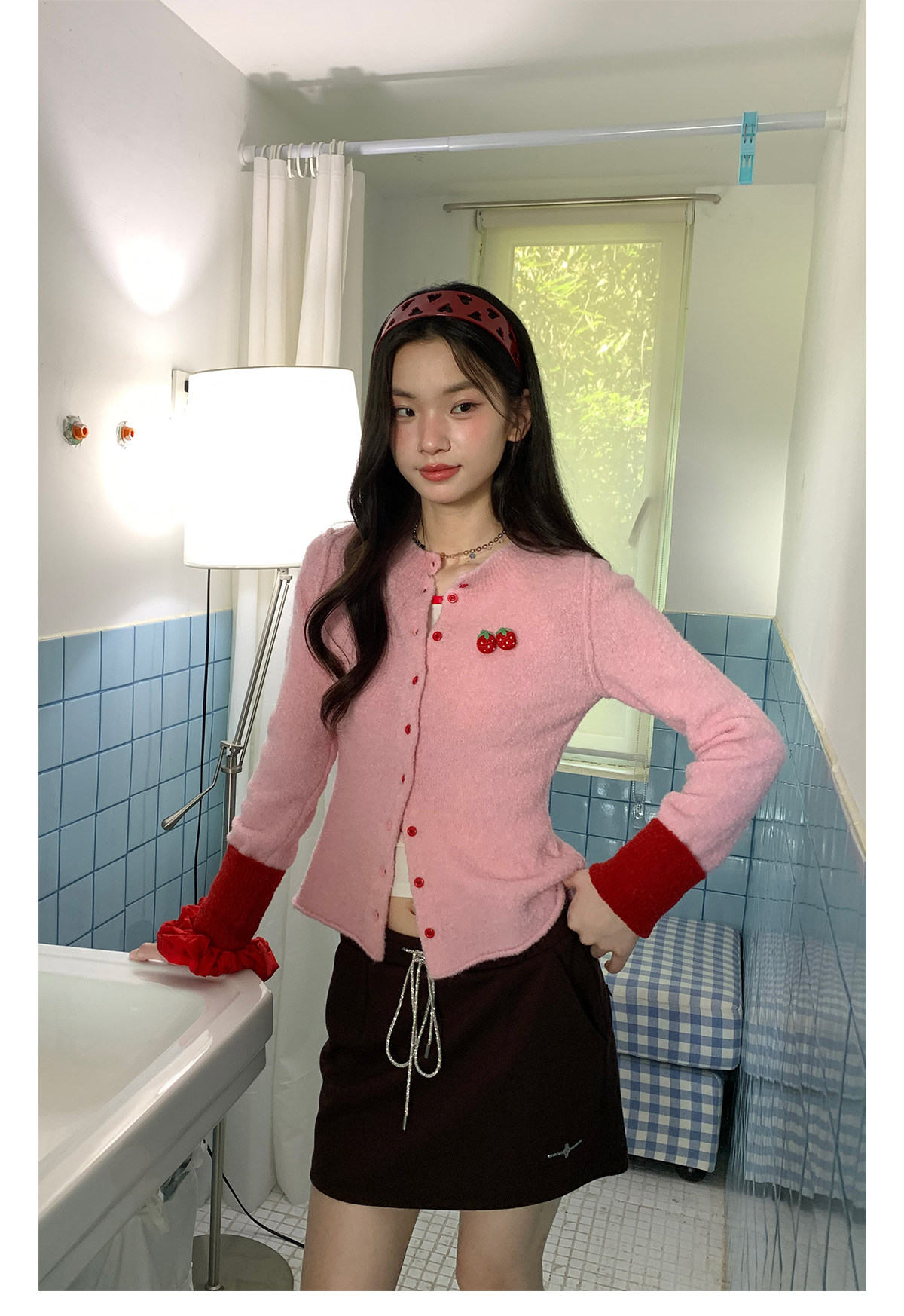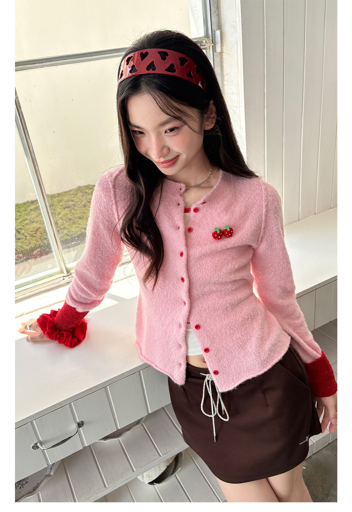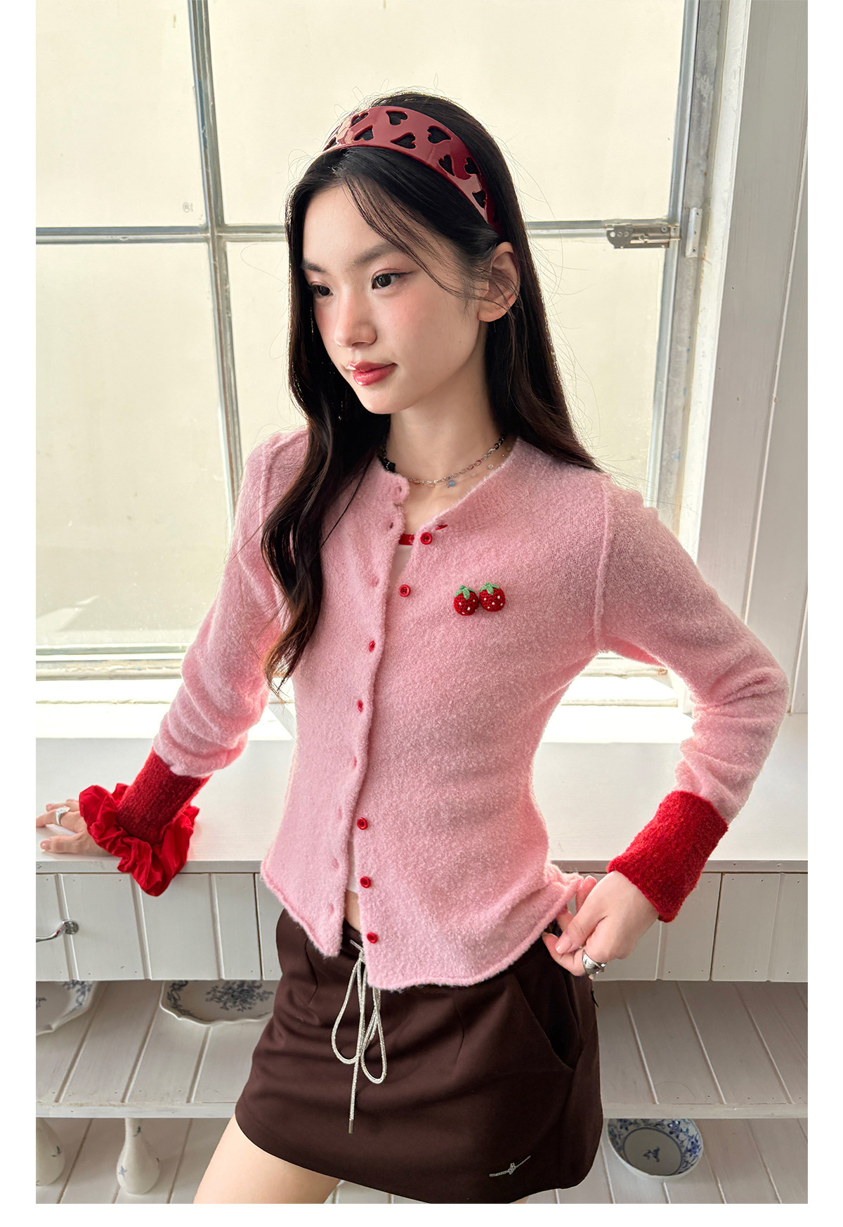 FTT FlyTheTruth『草莓布丁』 毛衣开衫外套秋冬粉色上衣针织衫女