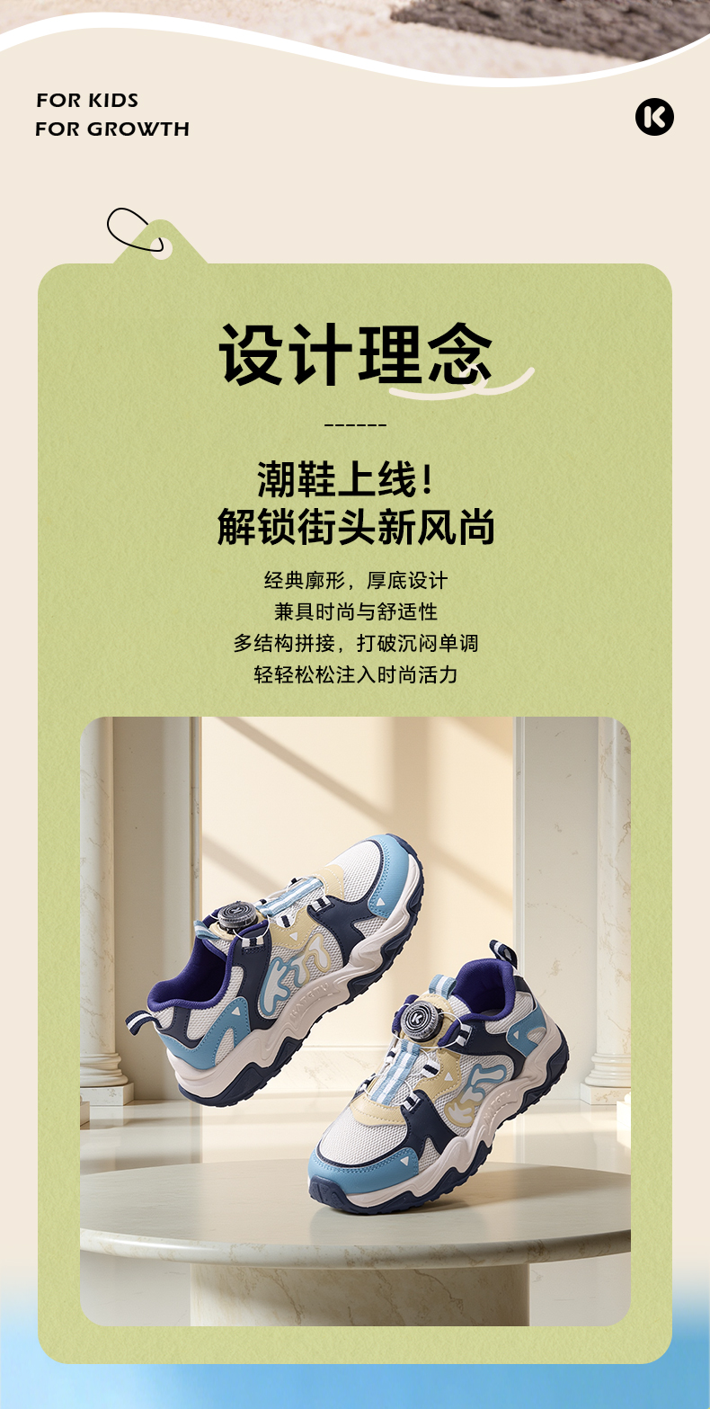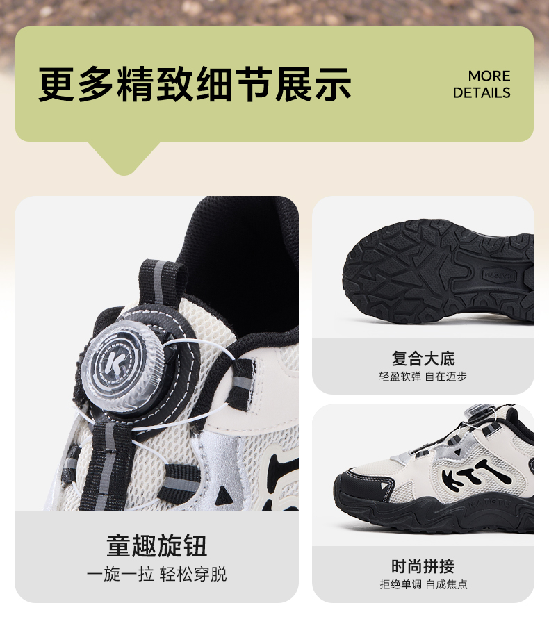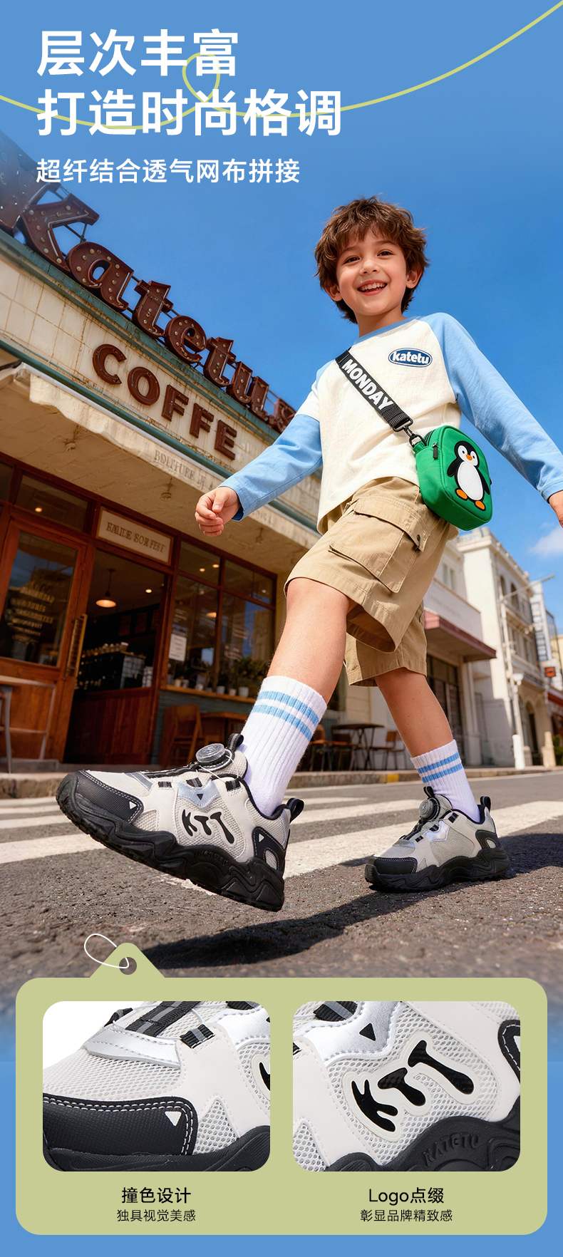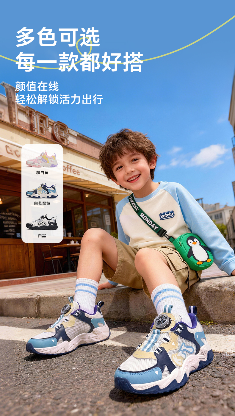 卡特兔童鞋儿童运动鞋2026年春季新品旋钮扣防滑耐磨透气跑步鞋