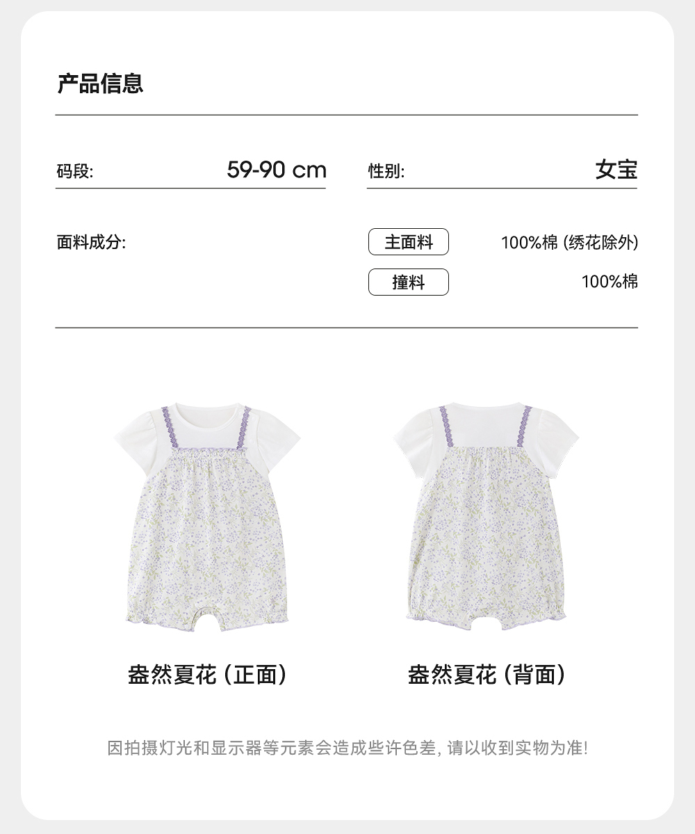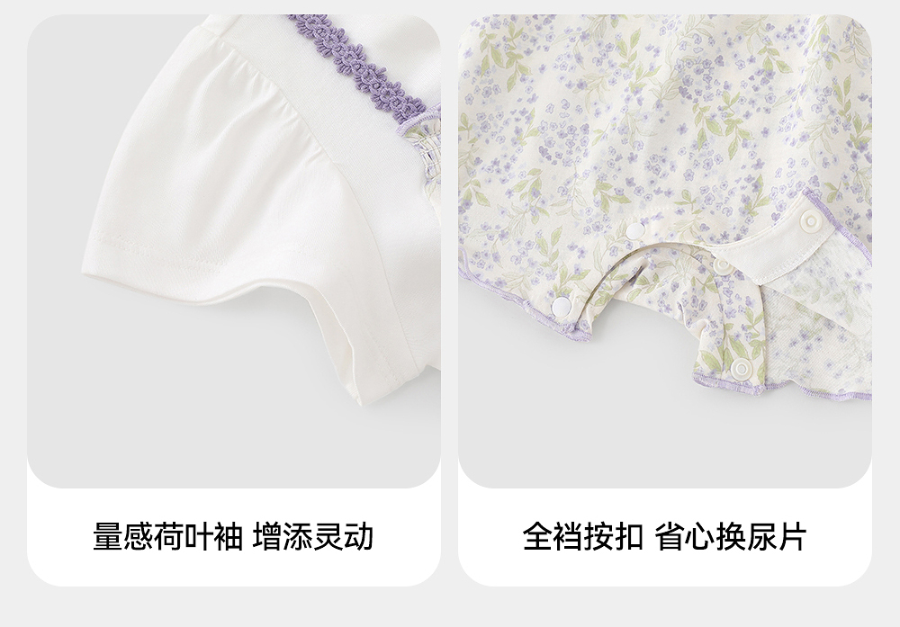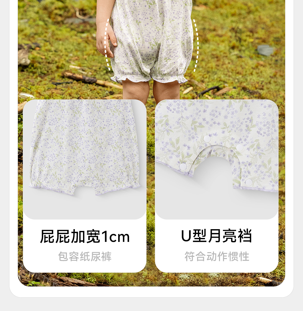 英氏婴儿衣服夏季纯棉女童碎花连体衣2025新款哈衣YRHBJ2R023A