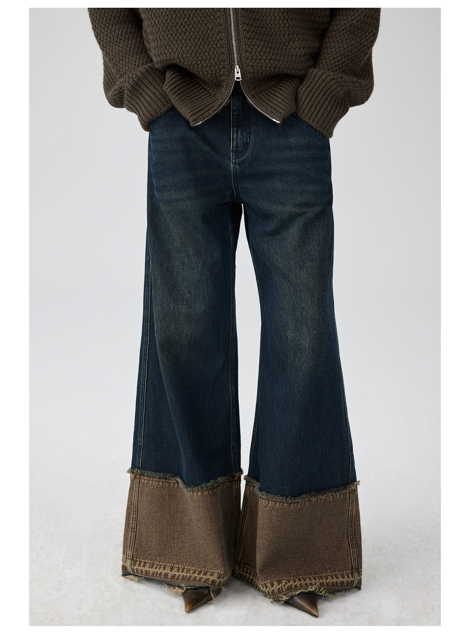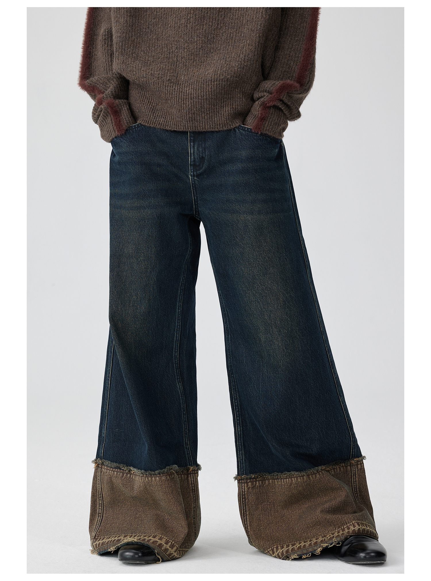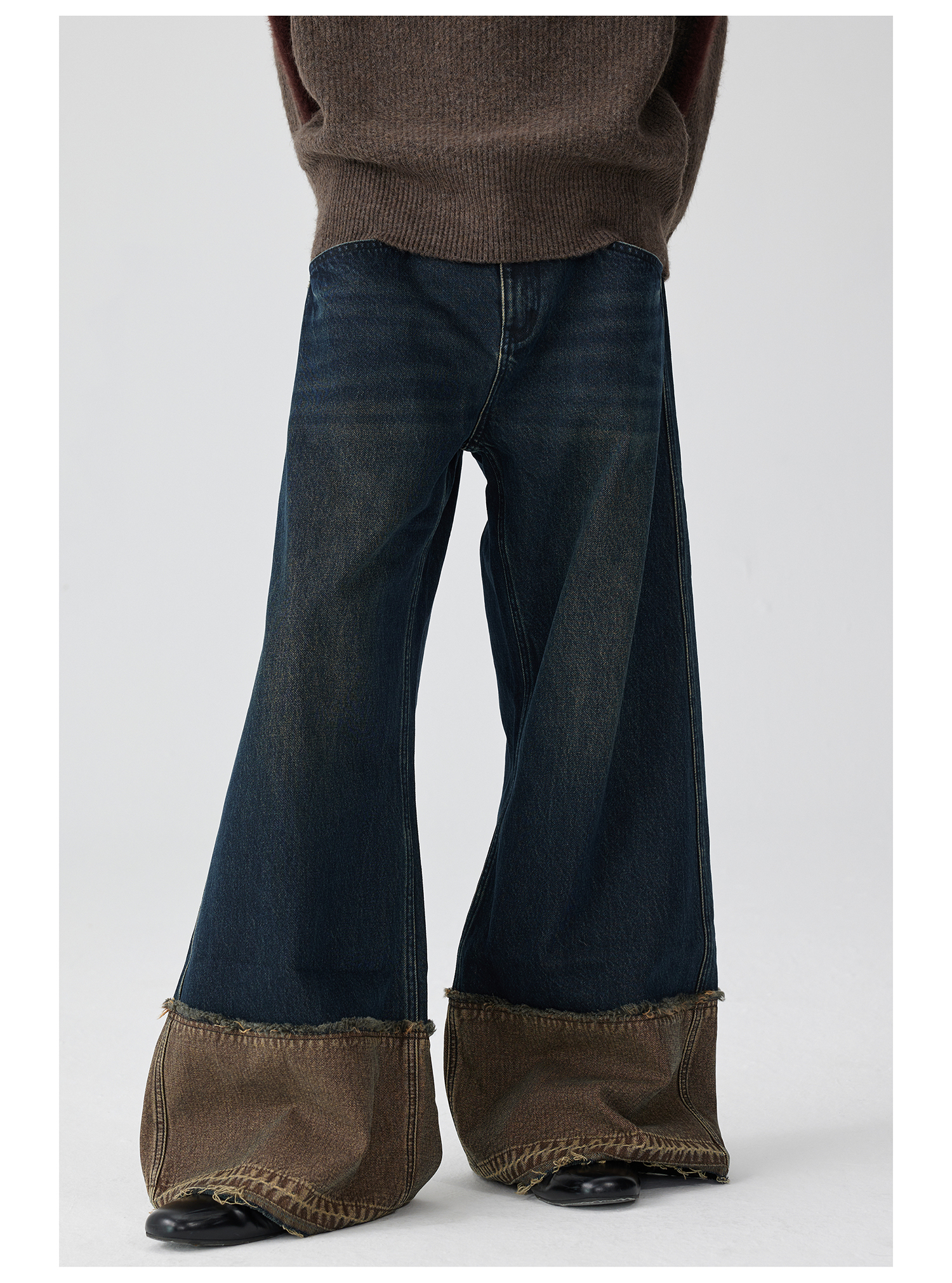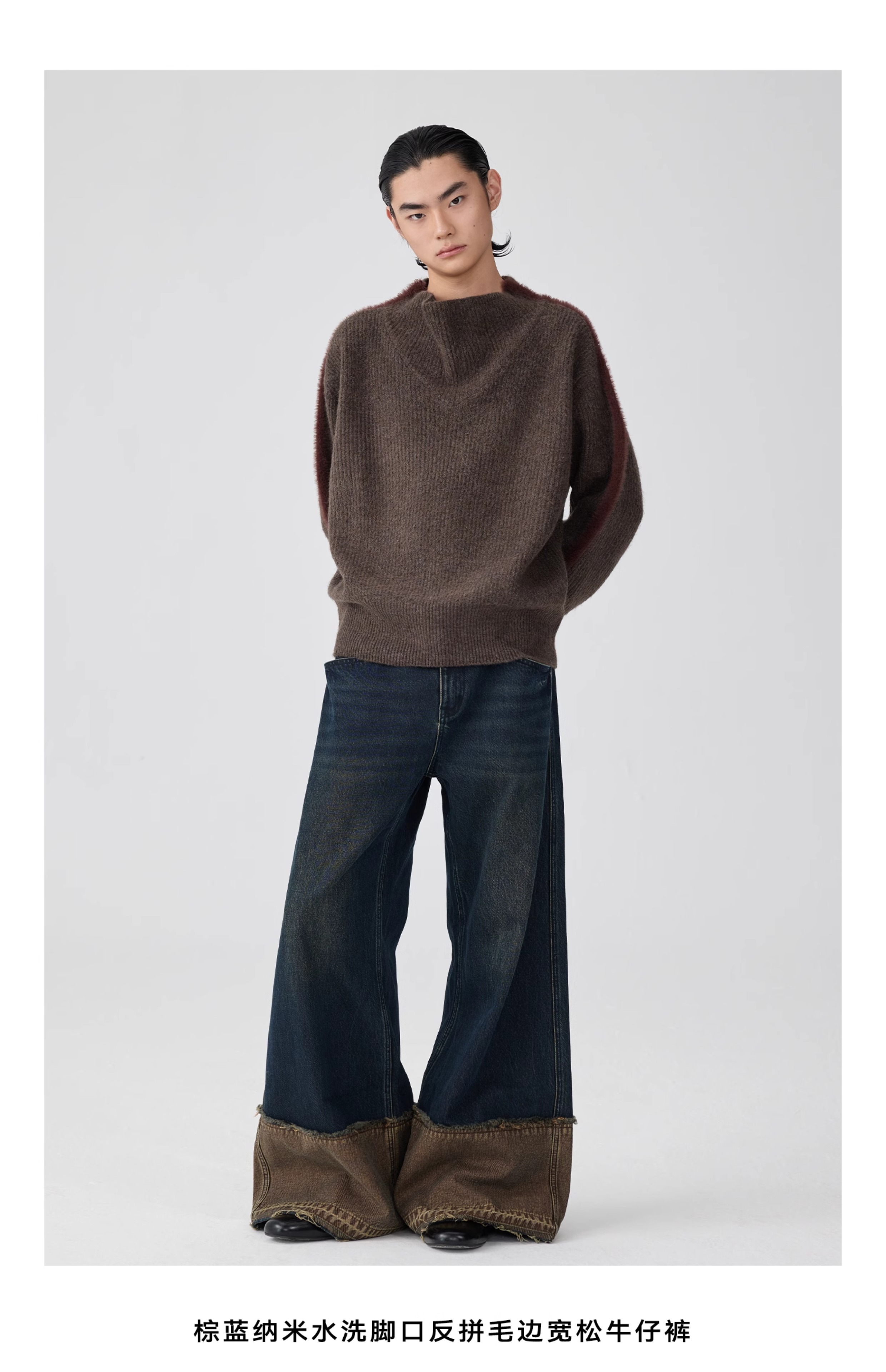 Simple Project/K243000/棕蓝纳米水洗脚口反拼毛边牛仔裤