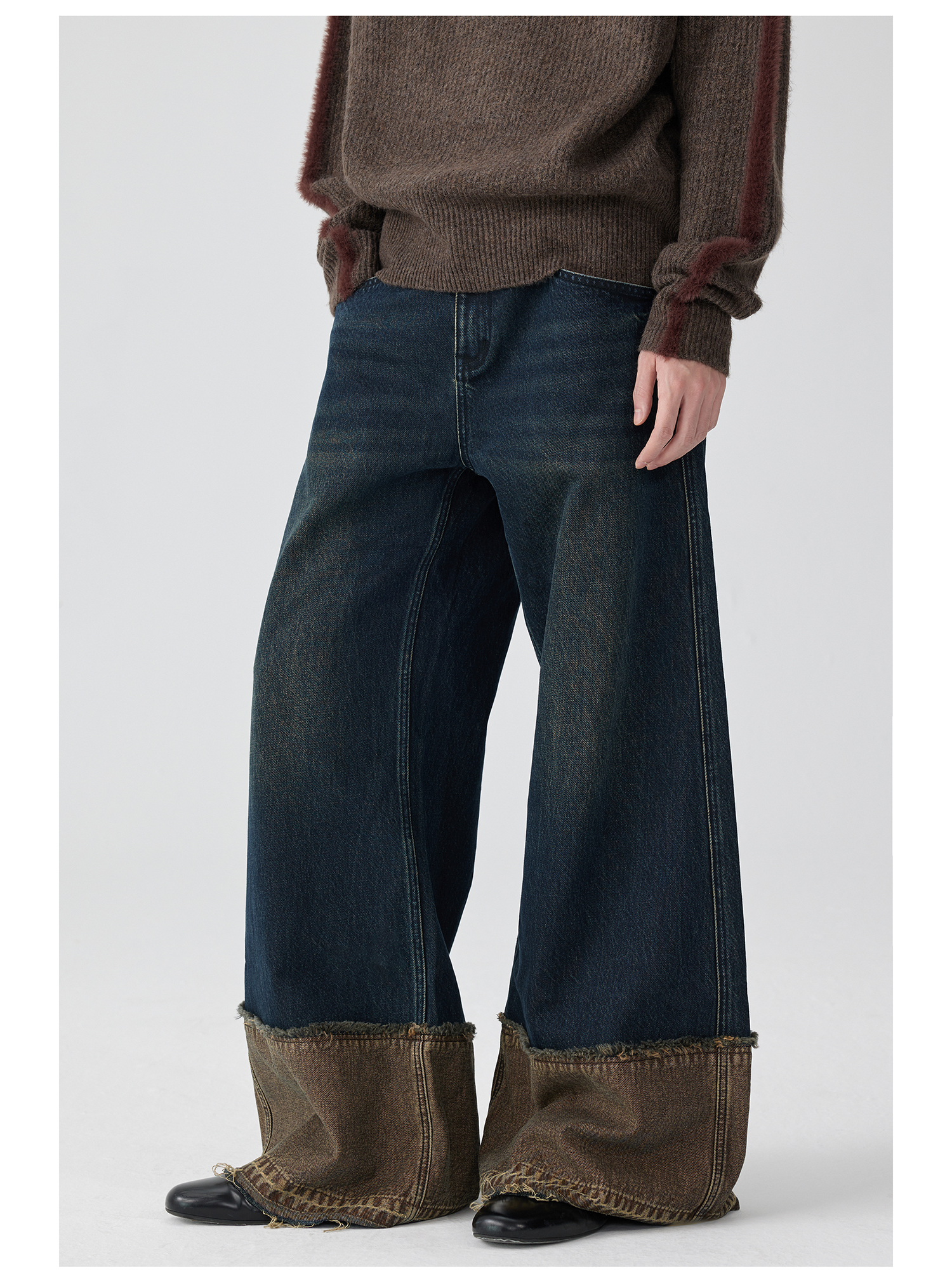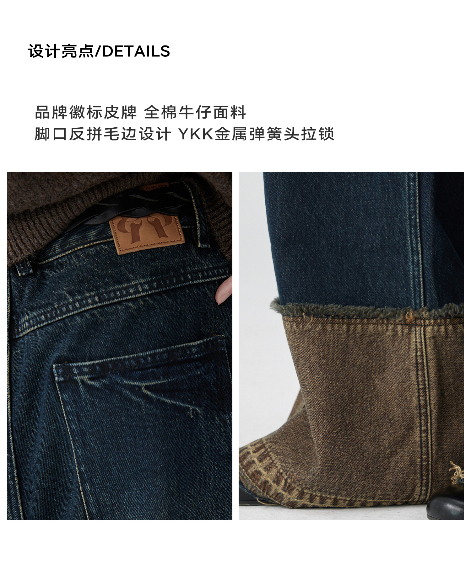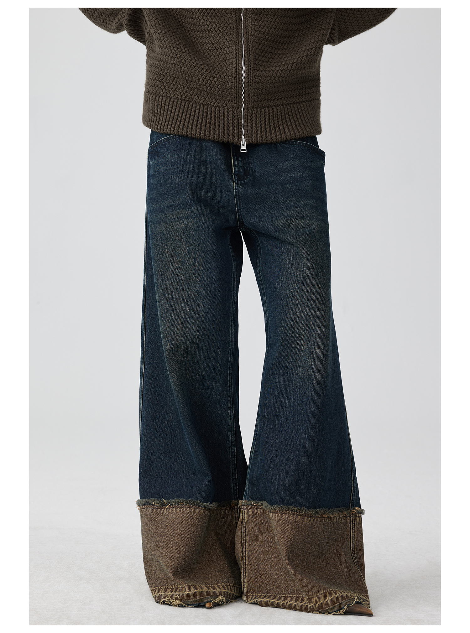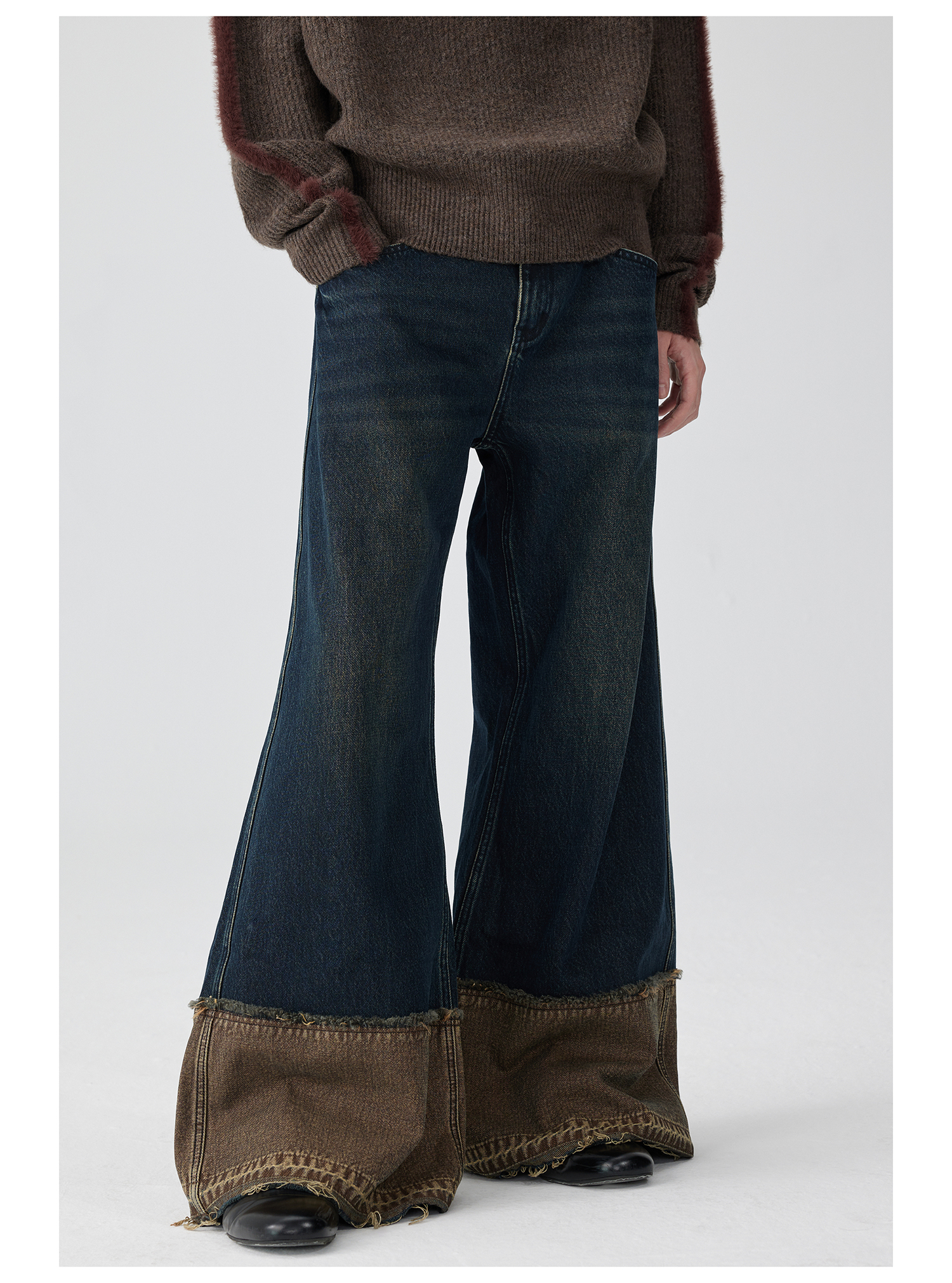 Simple Project/K243000/棕蓝纳米水洗脚口反拼毛边牛仔裤