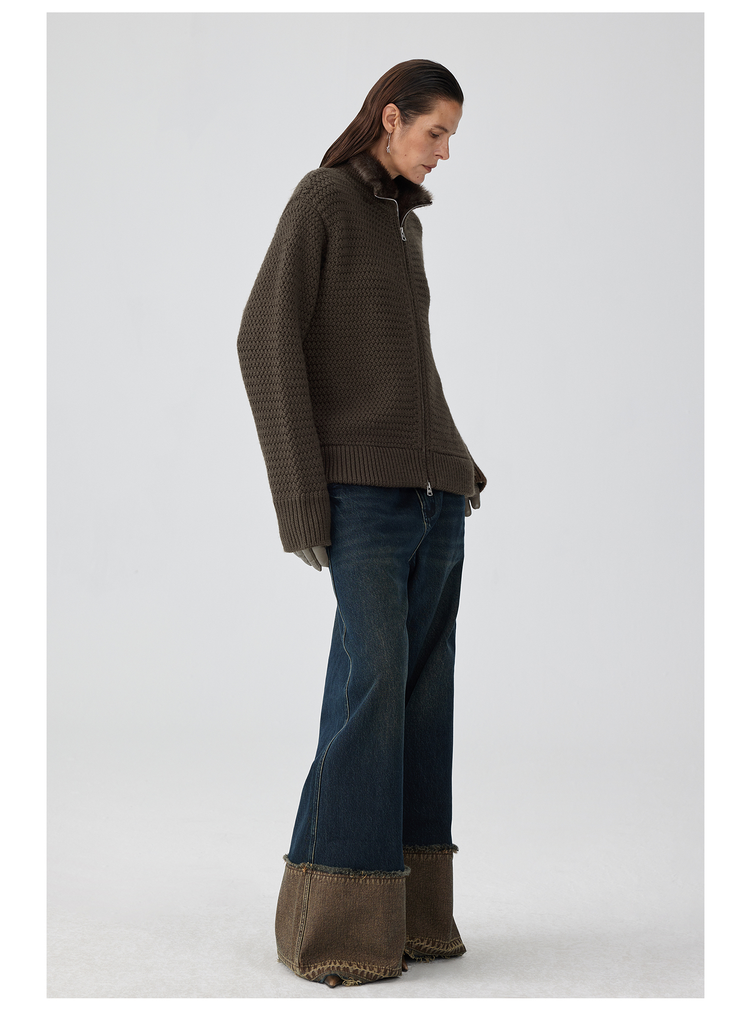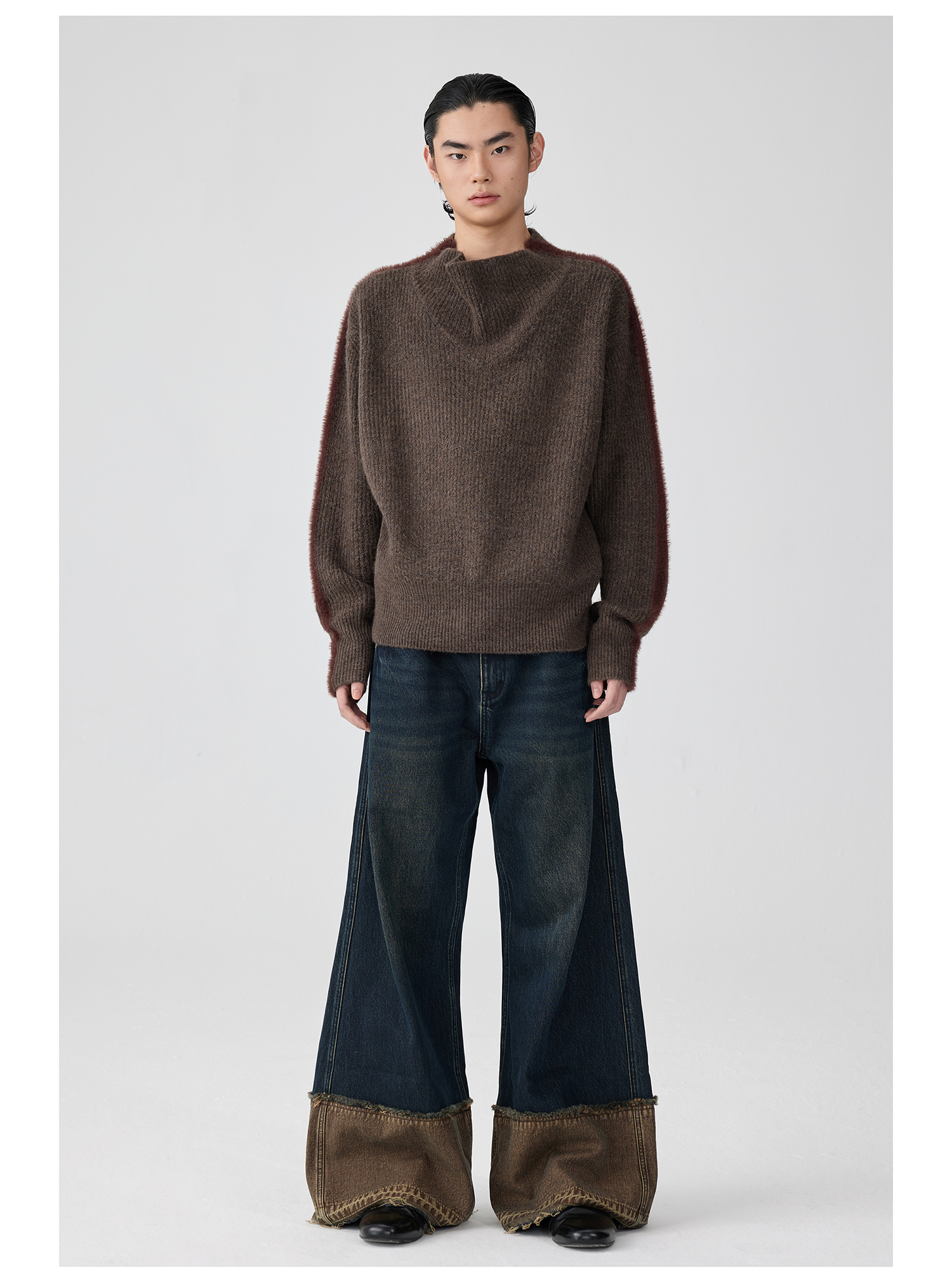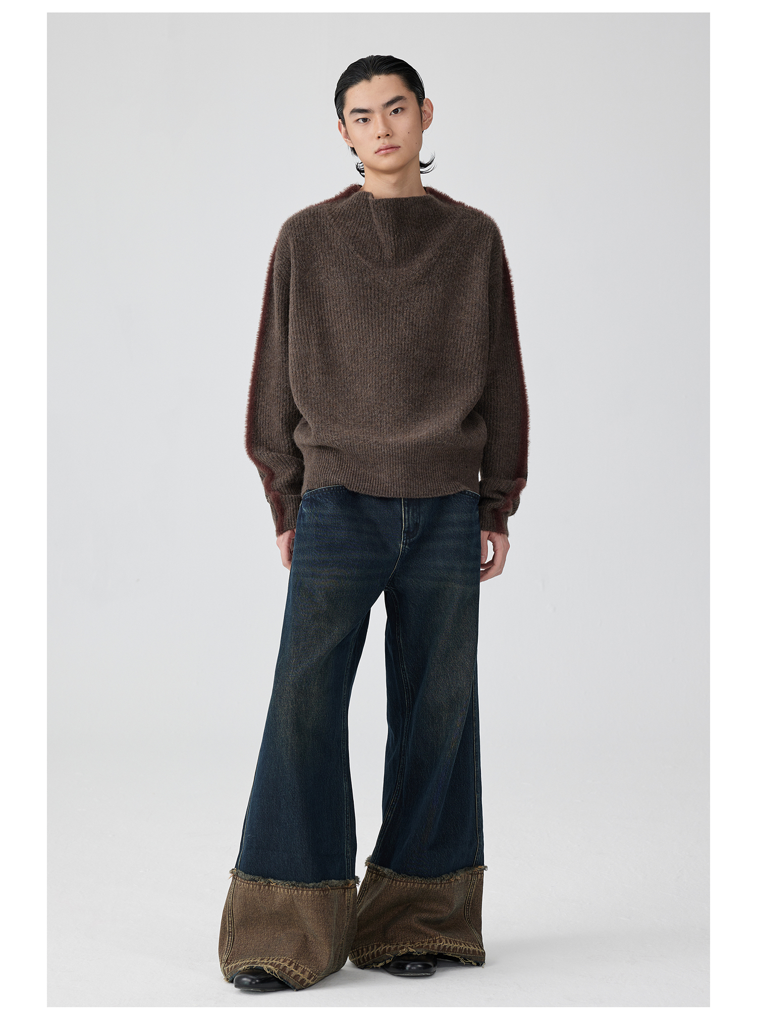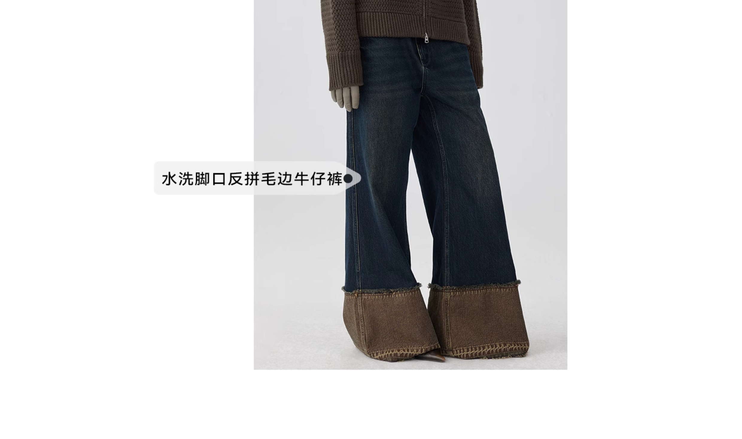 Simple Project/K243000/棕蓝纳米水洗脚口反拼毛边牛仔裤