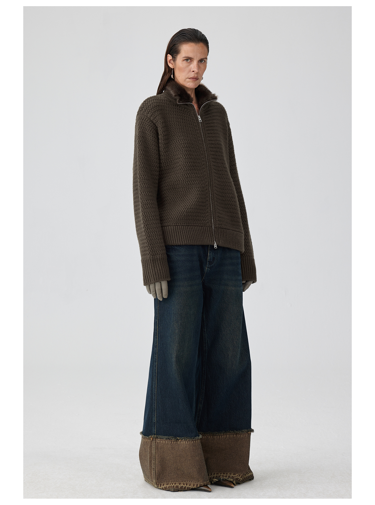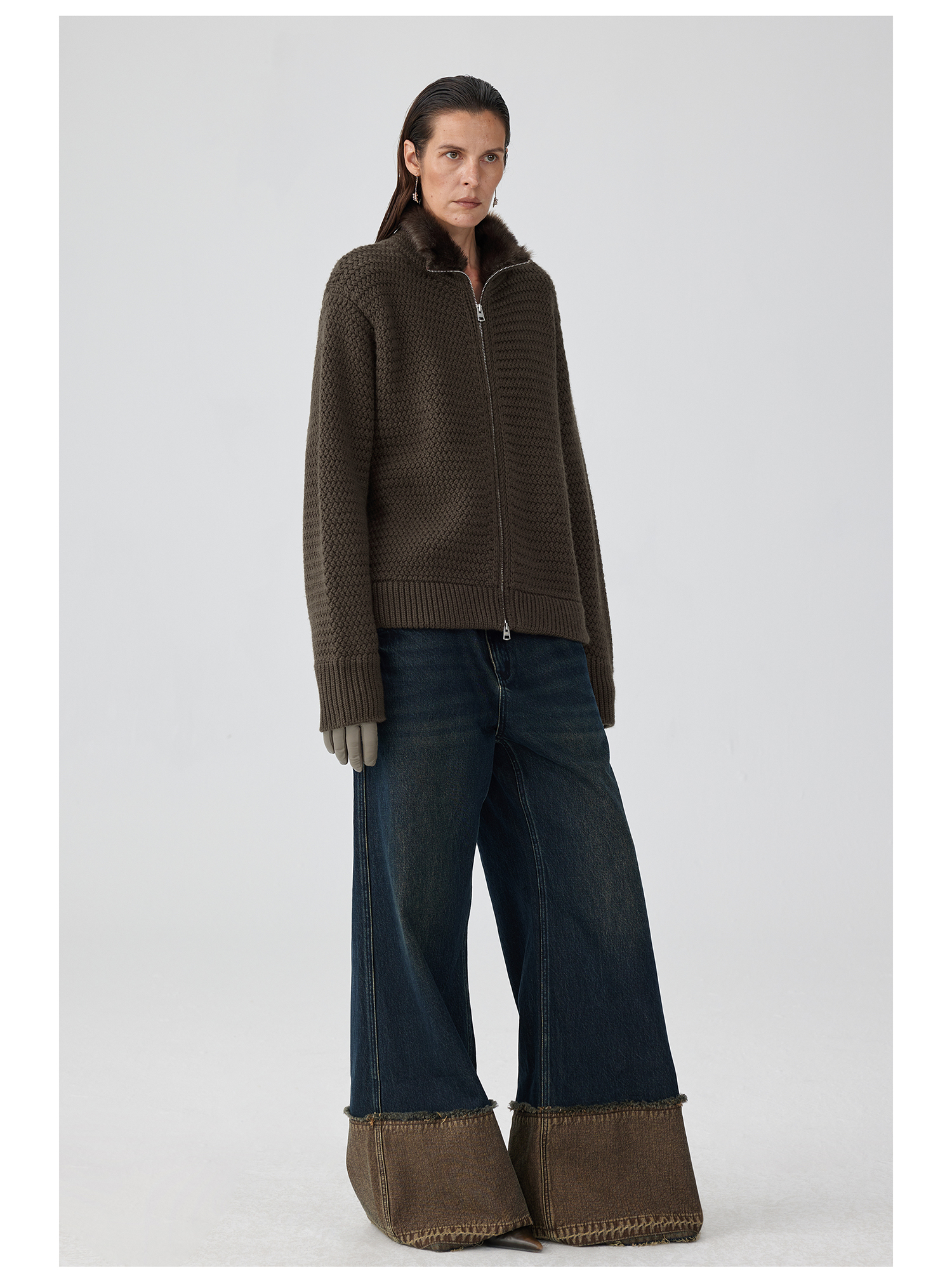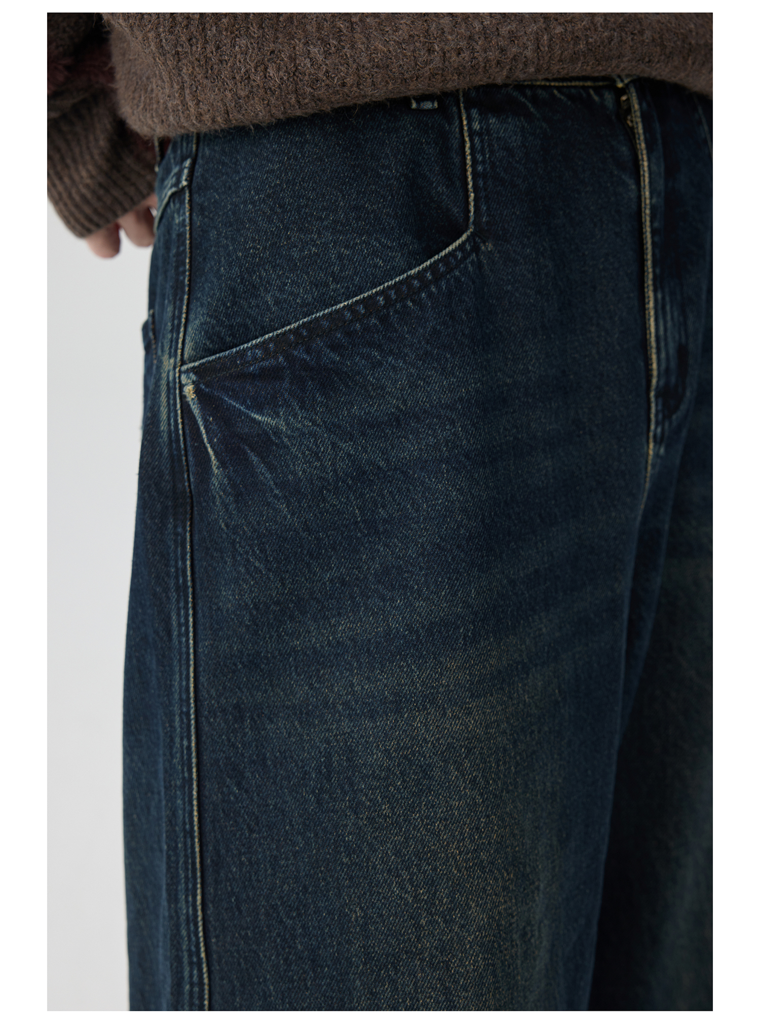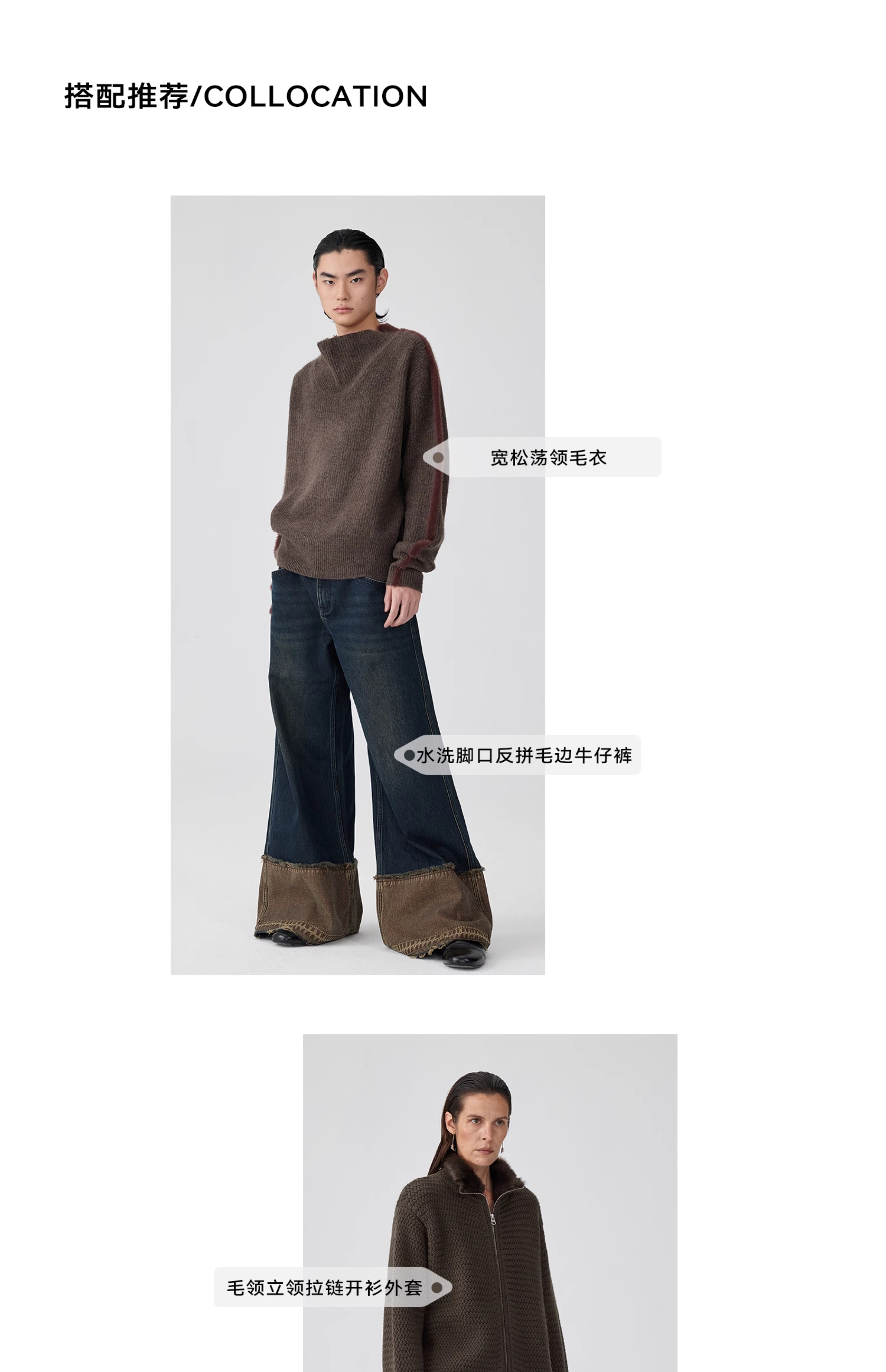 Simple Project/K243000/棕蓝纳米水洗脚口反拼毛边牛仔裤