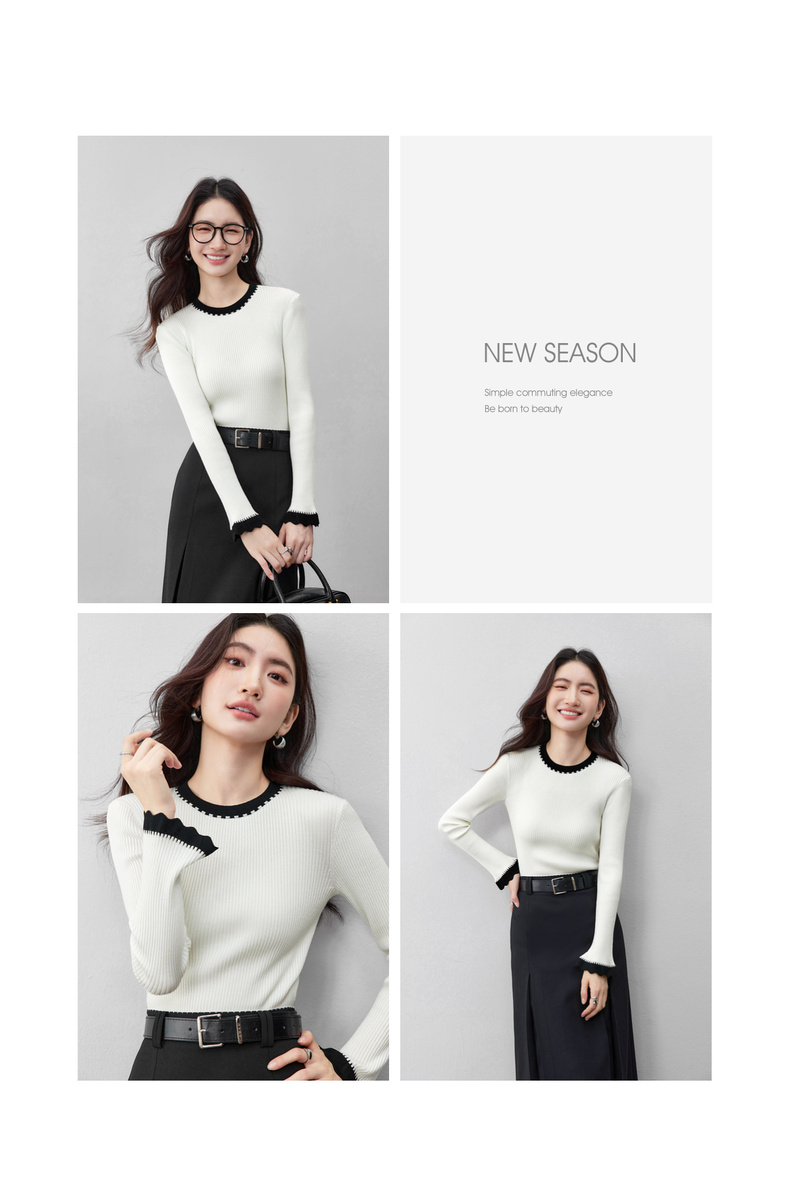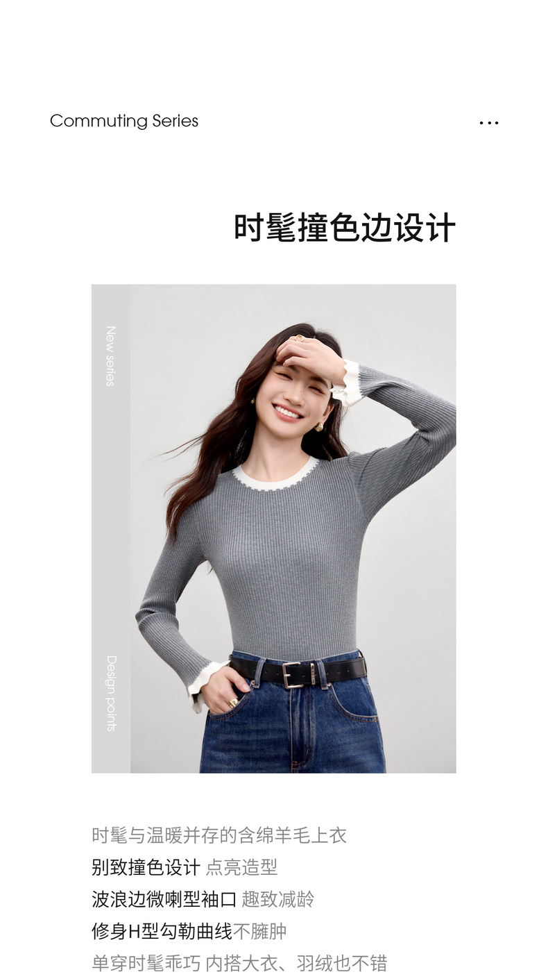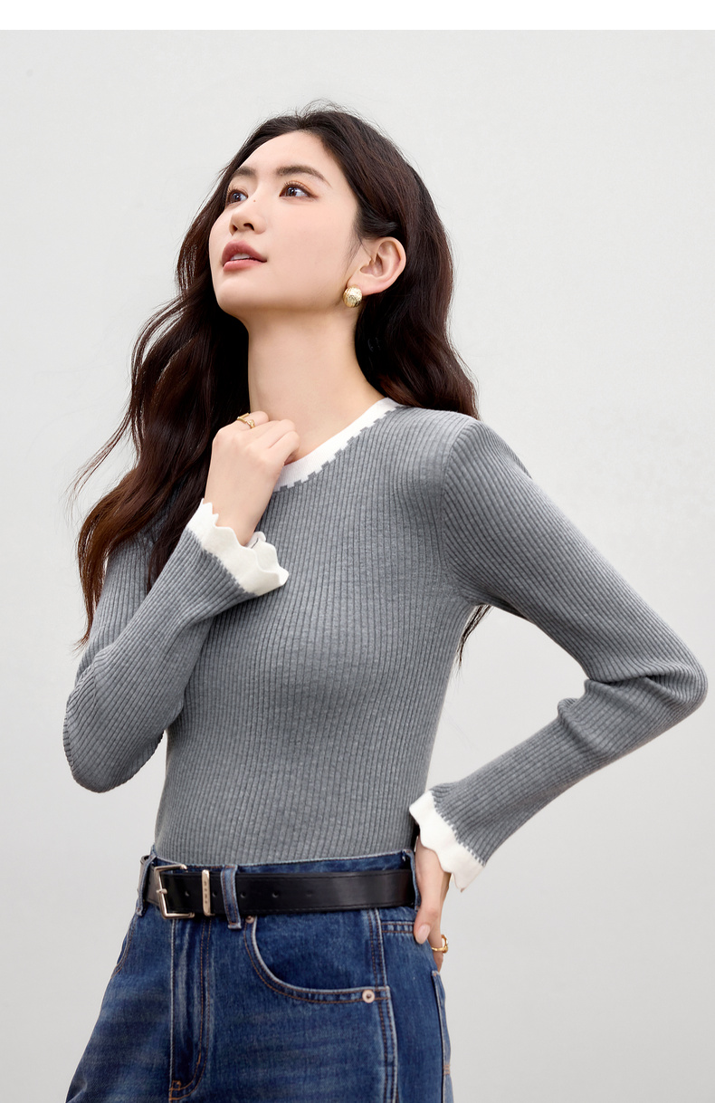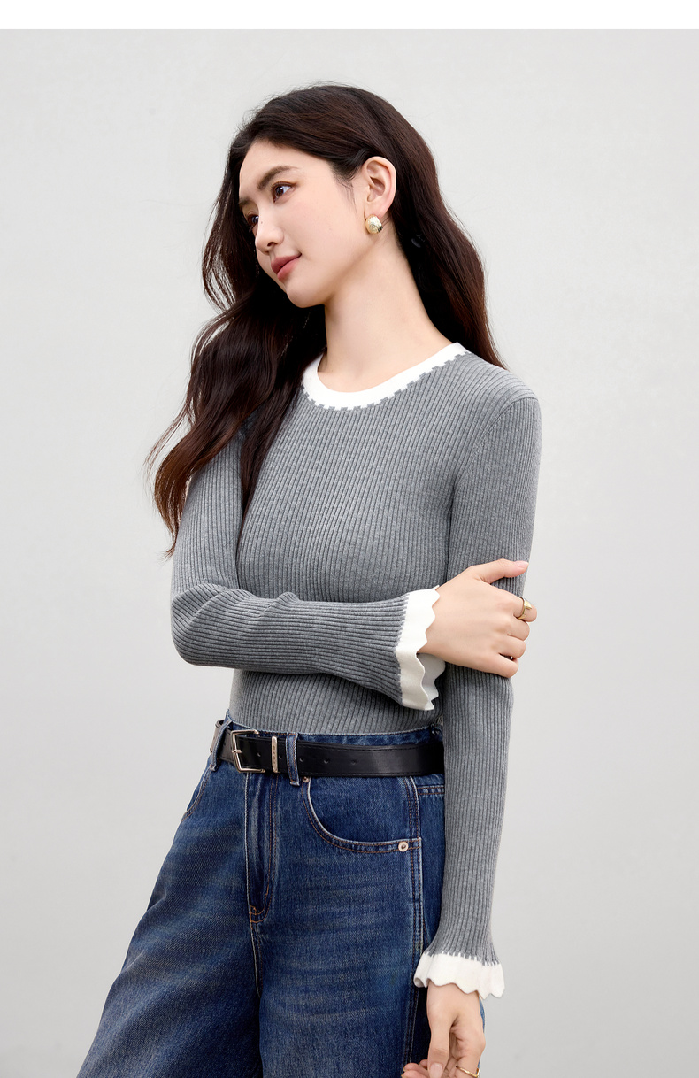【内购】【撞色边设计】都市休闲撞色边设计袖口微喇型含绵羊毛毛衣-W53EE3131