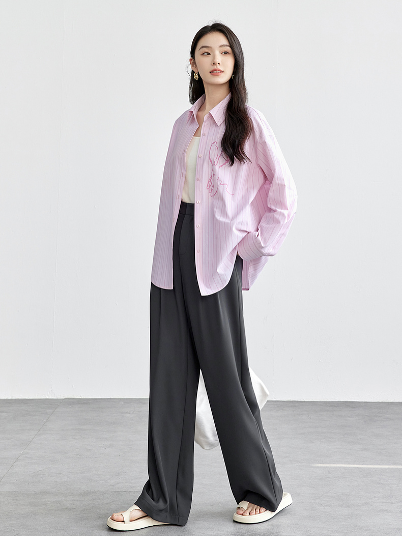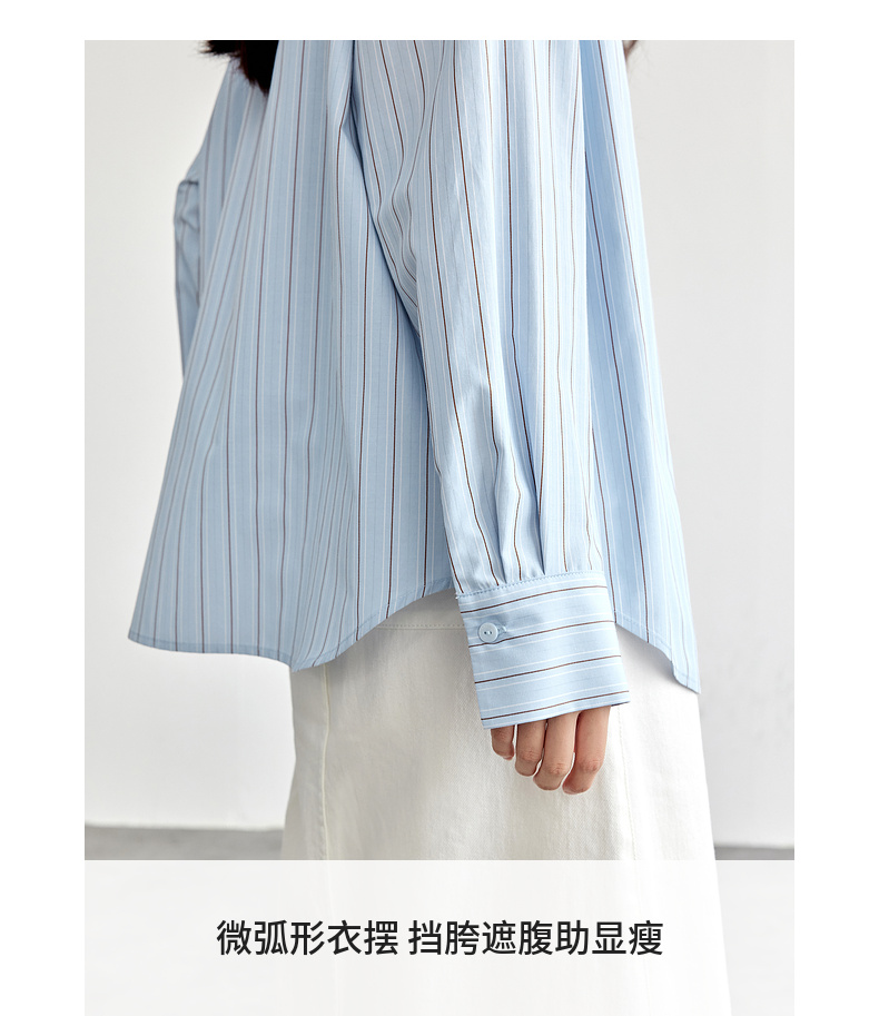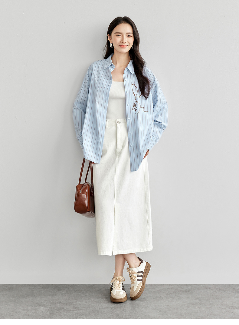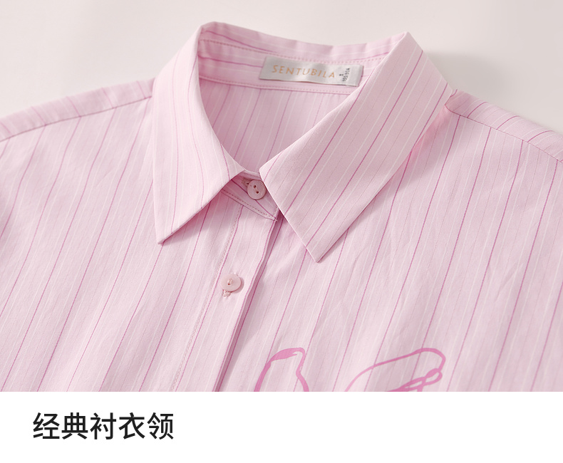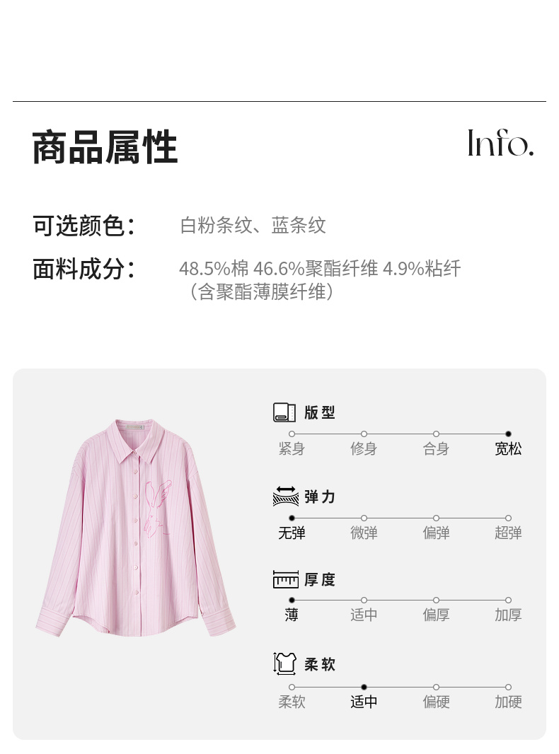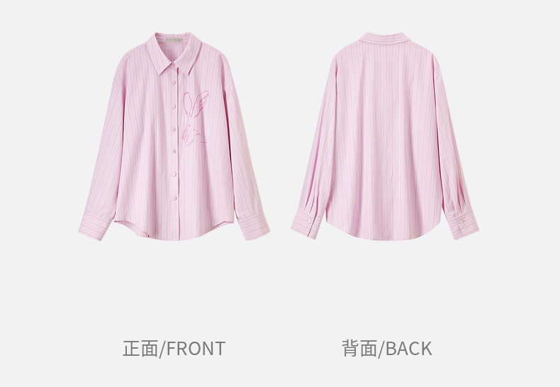 【内购】舒适通勤棉质条纹衬衫女落肩袖抽象兔子印花宽松显瘦上衣-57965