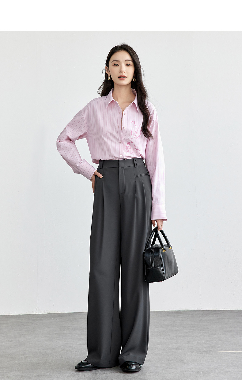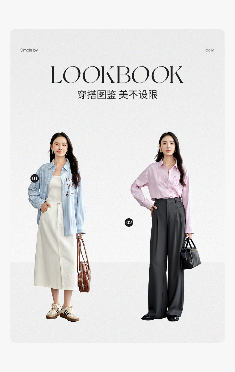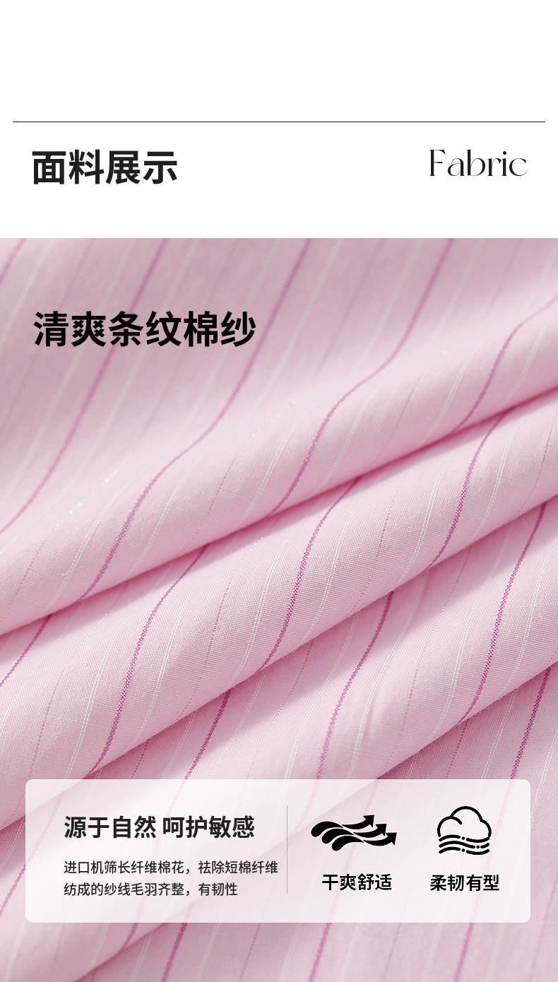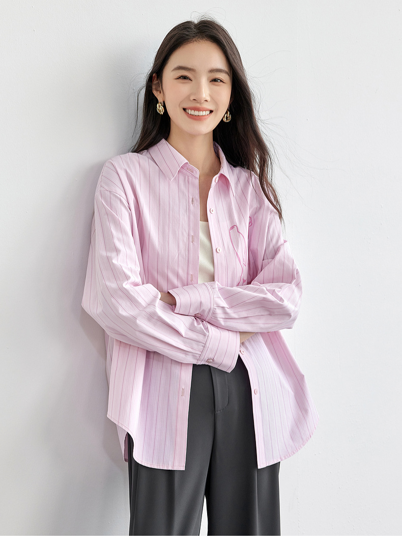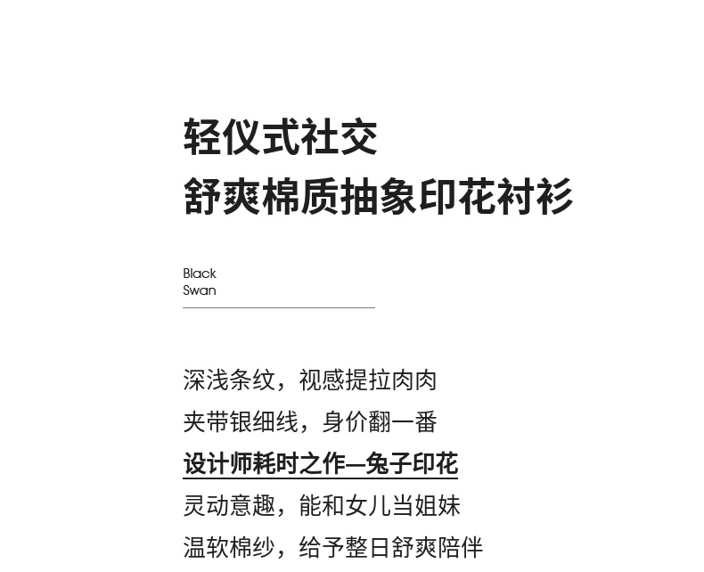 【内购】舒适通勤棉质条纹衬衫女落肩袖抽象兔子印花宽松显瘦上衣-57965