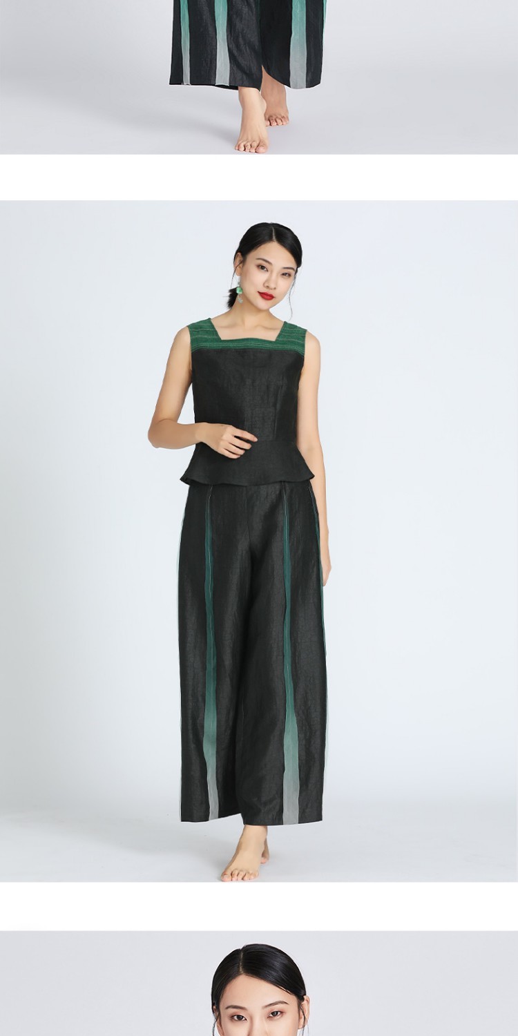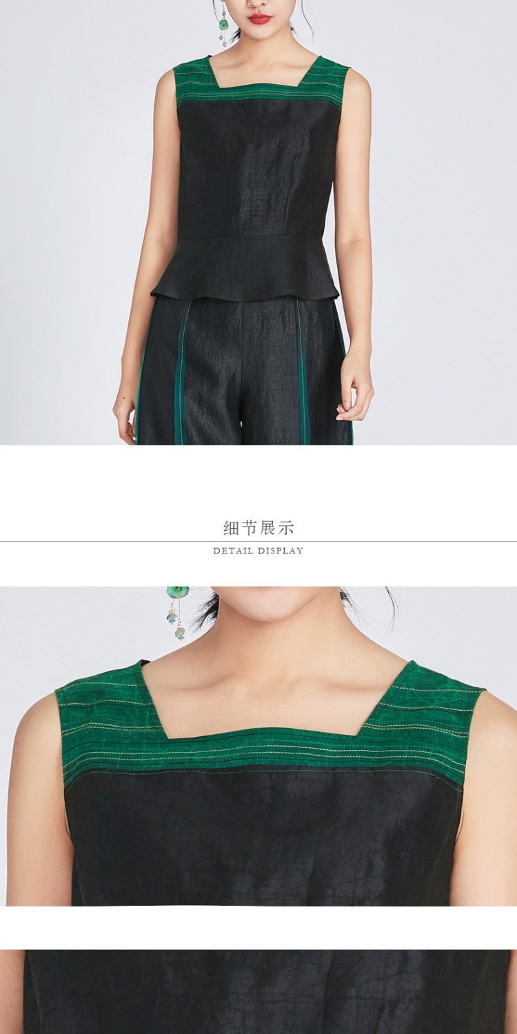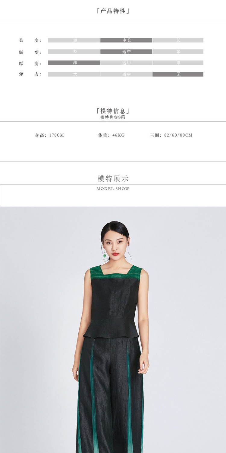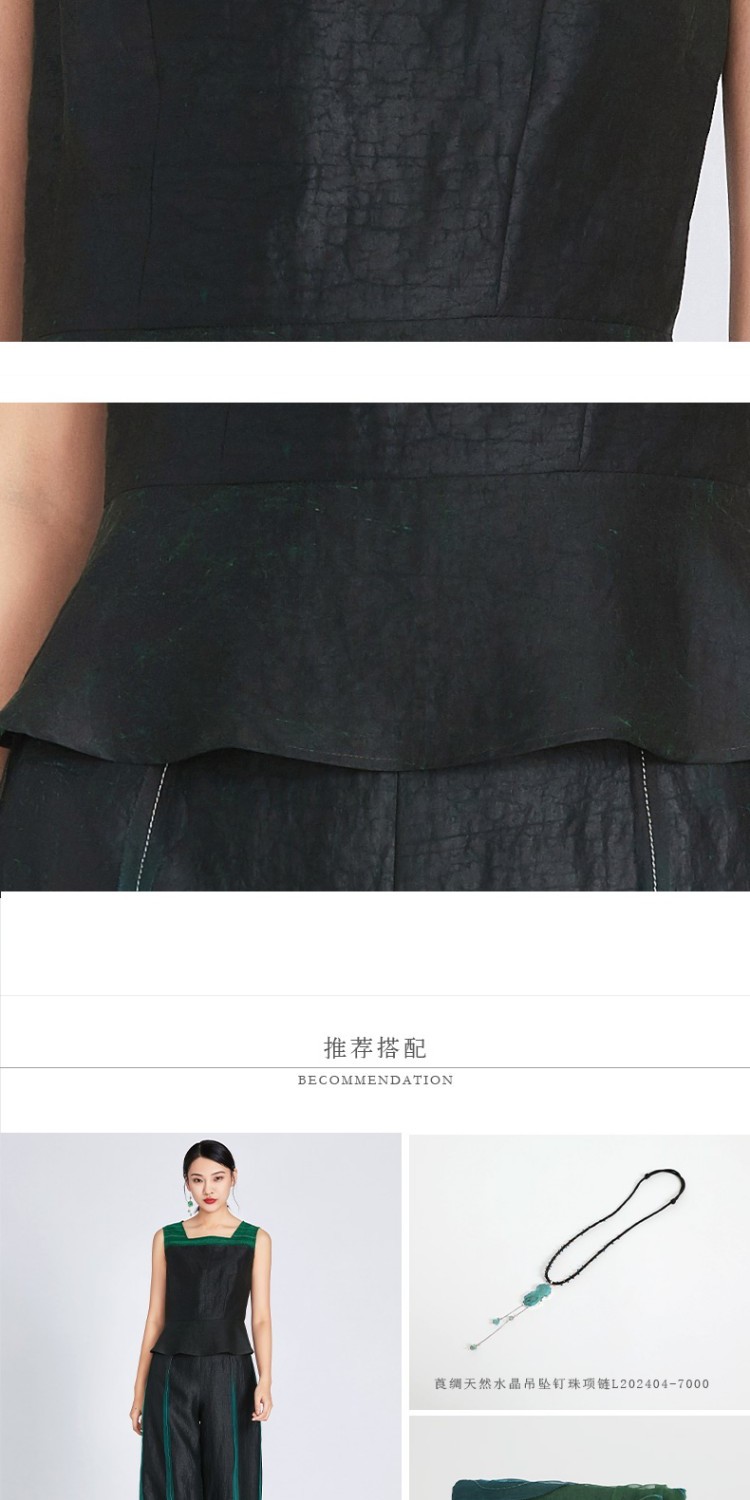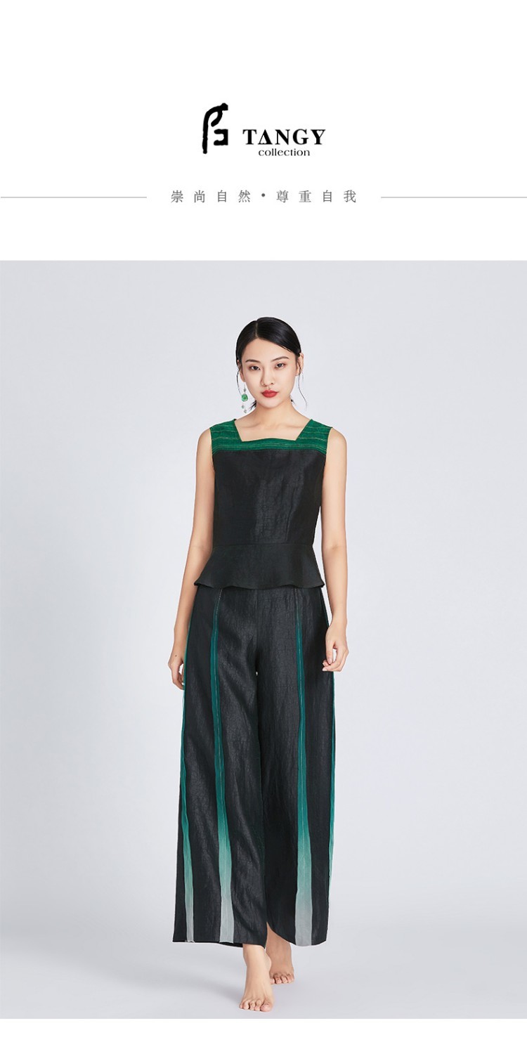TANGY Collection/天意精品春夏新品莨愈系列线迹拼色莨绸吊带上衣